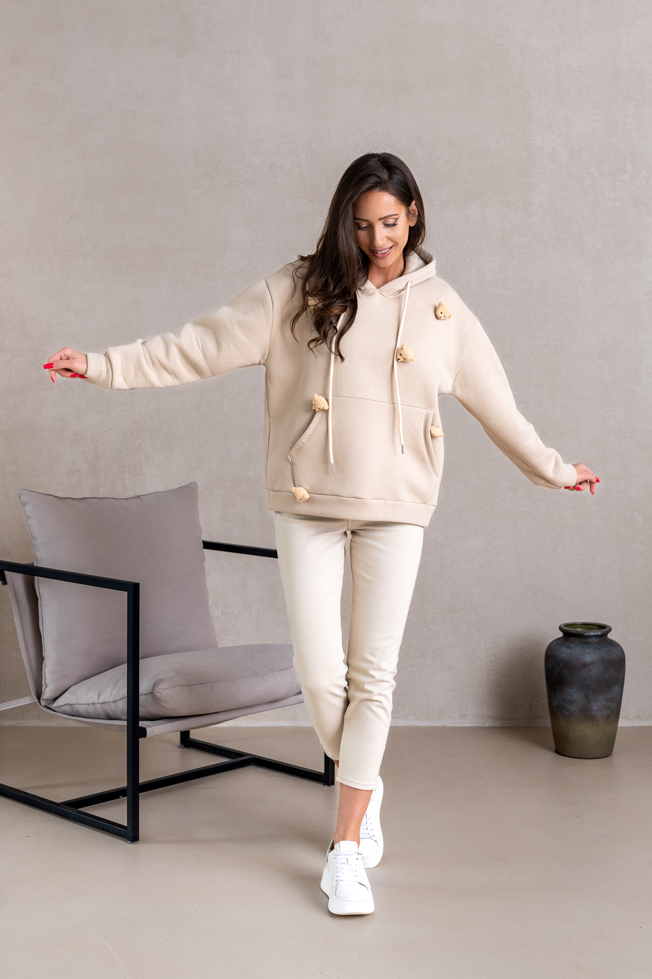 Odkryj urok naszej wyjątkowej bluzy, która zachwyca swoim niepowtarzalnym designem i niezwykłą jakością. Dzięki niej poczujesz się swobodnie i stylowo w każdej sytuacji. Jej urocze miśki, dodaje figlarności, sprawiając, że idealnie wpisuje się w nowoczesne trendy. To idealny wybór na każdą porę roku, zarówno na swobodne wyjścia, jak i spotkania towarzyskie. Misie na bluzie to broszki z możliwością odpięcia. Misie na bluzie to broszki z możliwością odpięcia.