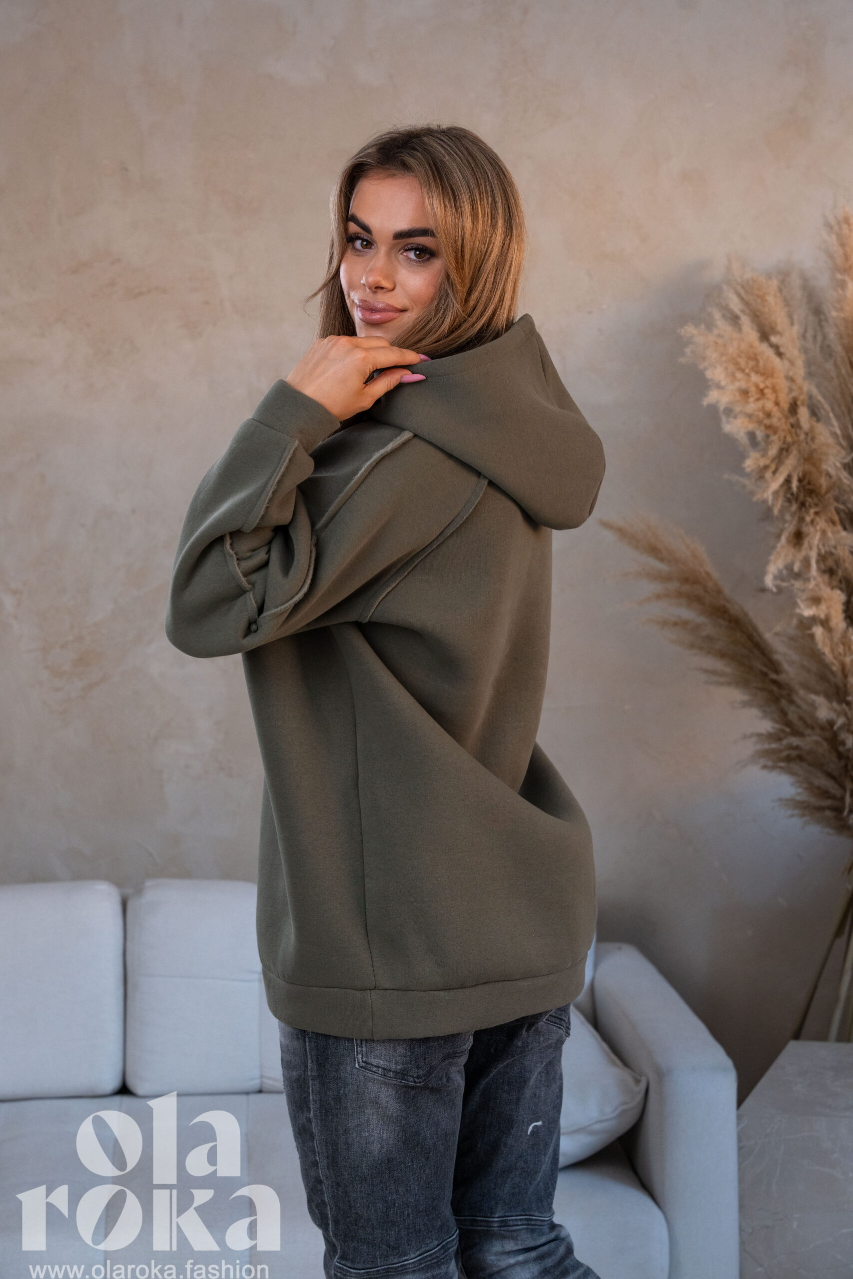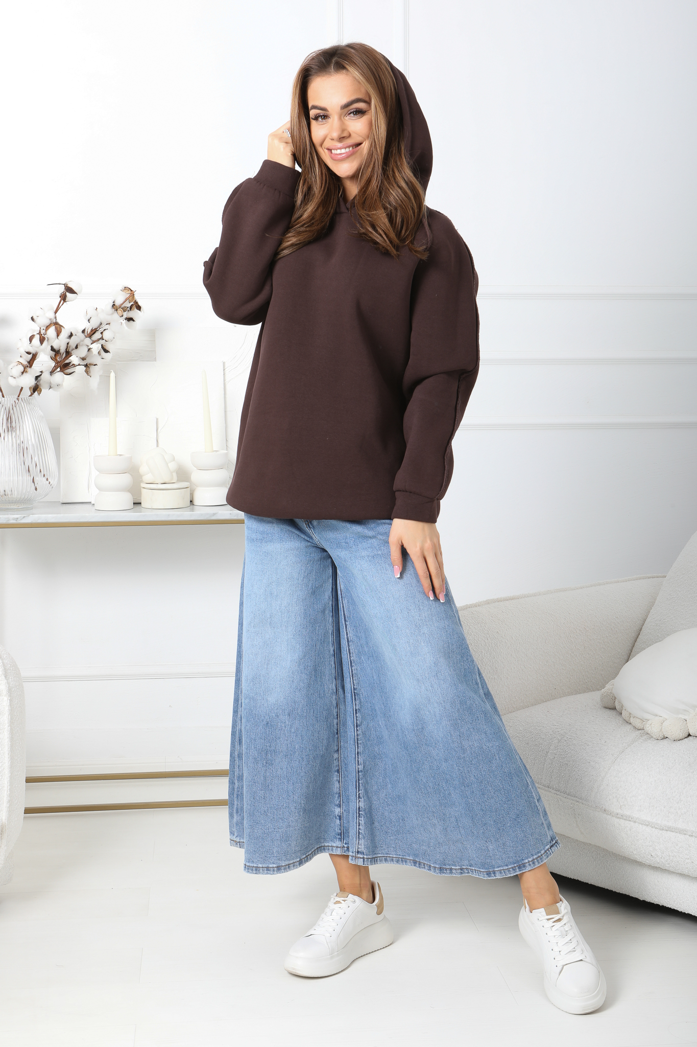 Wyjątkowa bluza, która łączy w sobie styl i funkcjonalność. Wykonana z wysokiej jakości, miękkiej dzianiny, zapewnia maksymalny komfort i ciepło, idealna na każdą porę roku. Oversize’owy krój oraz praktyczny kaptur sprawiają, że bluza ta doskonale sprawdzi się zarówno w codziennych, jak i sportowych stylizacjach. Rękawy zakończone są ściągaczami, co dodaje jej nowoczesności i pozwala na idealne dopasowanie. To must-have w szafie każdej miłośniczki mody, która ceni sobie wygodę i niepowtarzalny styl. Pasuje na różne sylwetki i zapewnia swobodę ruchów.
