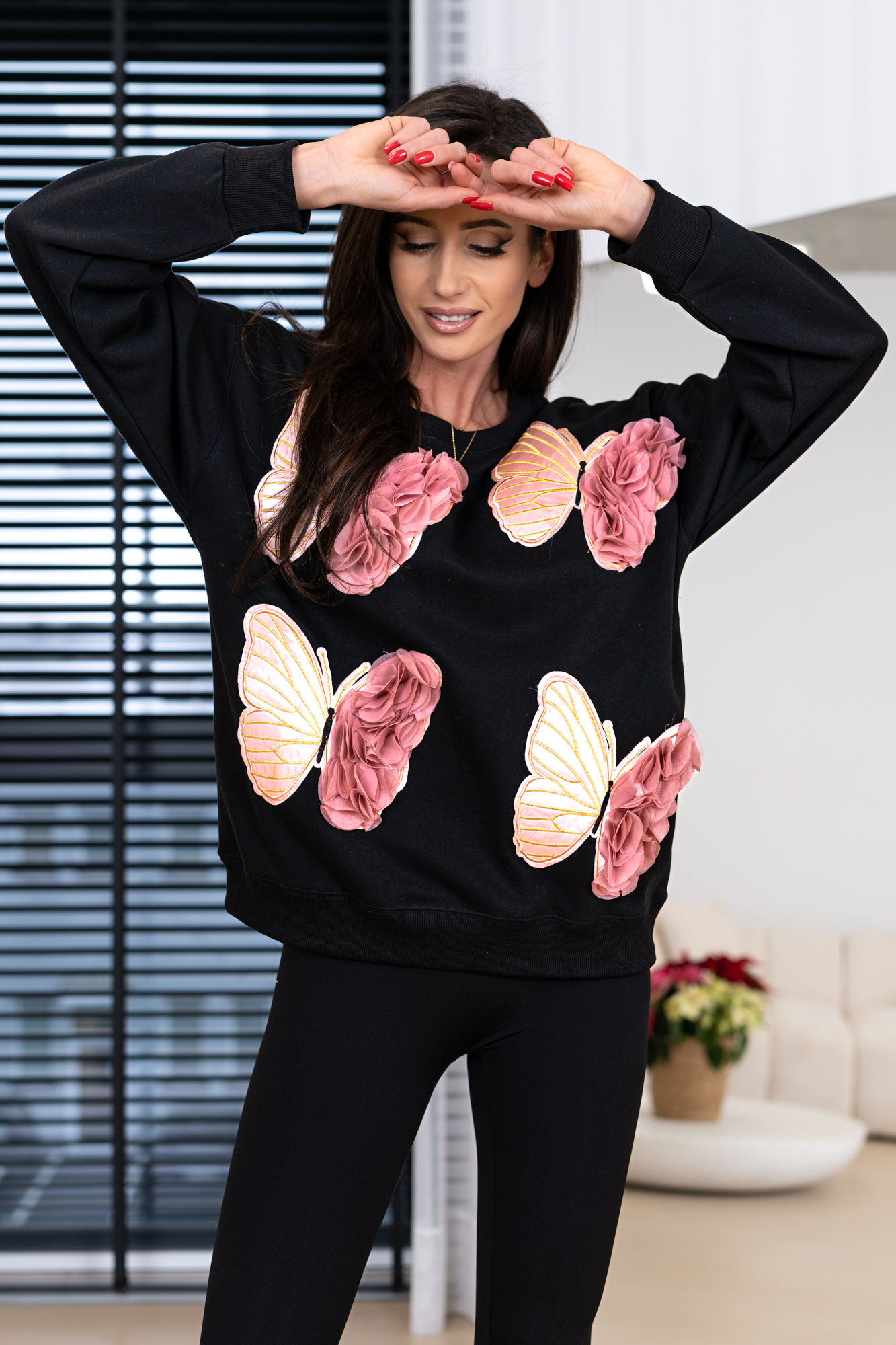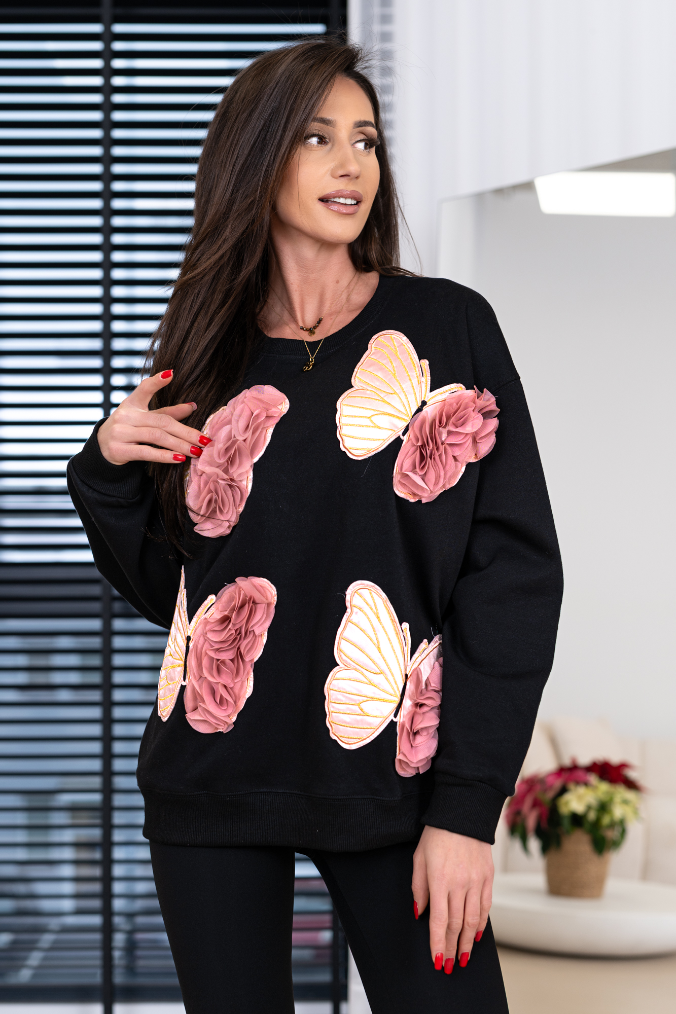 Wyjątkowa bluza z aplikacjami 3D w formie kwiatowych motyli, które dodają stylizacji kobiecego uroku. Miękka, ciepła i komfortowa — idealna do niebanalnych zestawów. Model, który wyróżni Cię w każdej stylizacji.