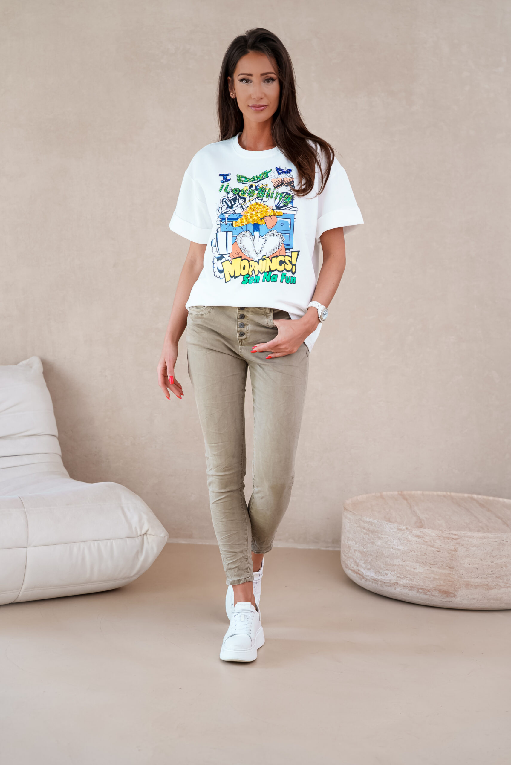 T-shirt z uroczym nadrukiem  – oryginalna seria Disneya. Bluzka najbardziej przypadnie do gustu fankom luźnych, wygodnych stylizacji. Została wykonana z wysokogatunkowego, miłego w dotyku materiału, który szybko się nie zniszczy. T-shirt damski będzie się znakomicie prezentować razem z jeansami i kataną ale także z klasyczną spódnicą. Dodaj pazura do swojej stylizacji! Takiej bluzki nie będzie miał nikt!
