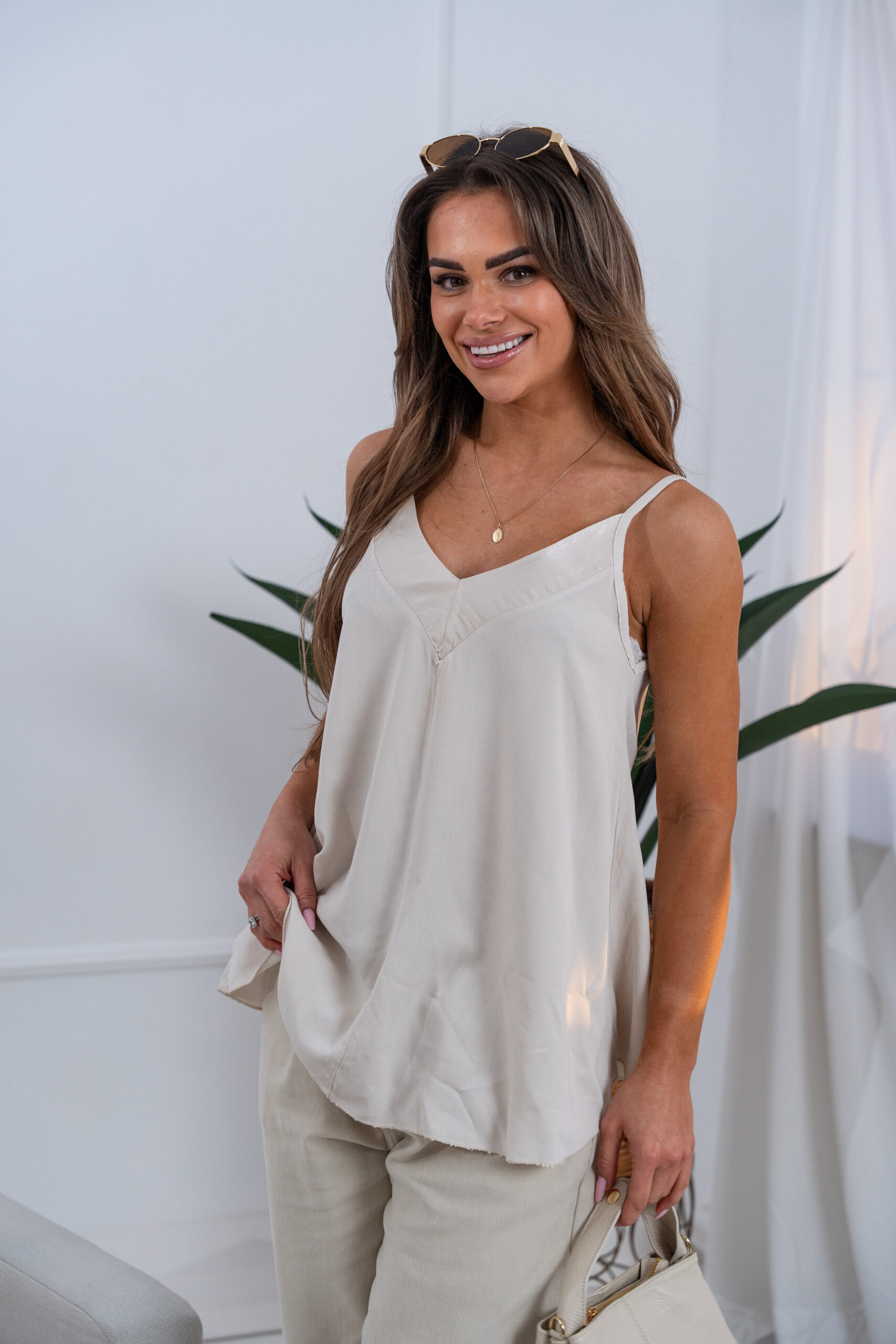 Bluzeczka bez rękawków, prosty krój. Wykonana z miłego w dotyku, wysokiej jakości materiału. Uniwersalny model i fason sprawdzi się na wiele okazji. Idealnie komponuje się z jeansami jak i ze spódnicą czy klasycznymi spodniami.