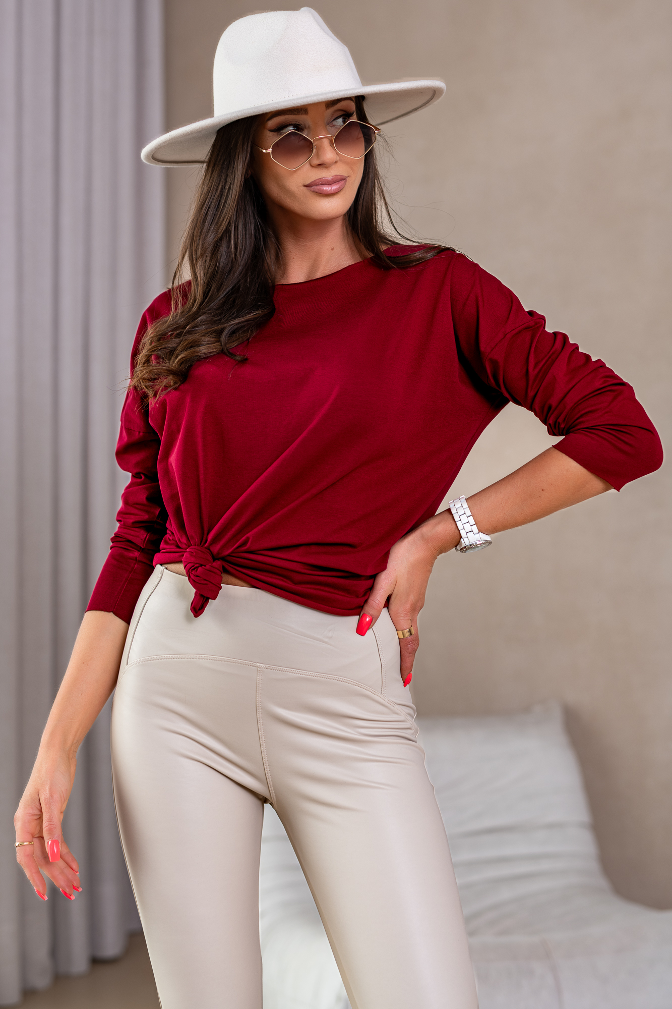 Klasyczny basic. Tak wielu kolorów jeszcze nie było! To lekko dopasowana koszulka z dzianiny bawełnianej – JAKOŚĆ PREMIUM – o surowych brzegach. W spoczynku ok.104/105cm w biuście. To idealny model pod kardigany i żakiety.