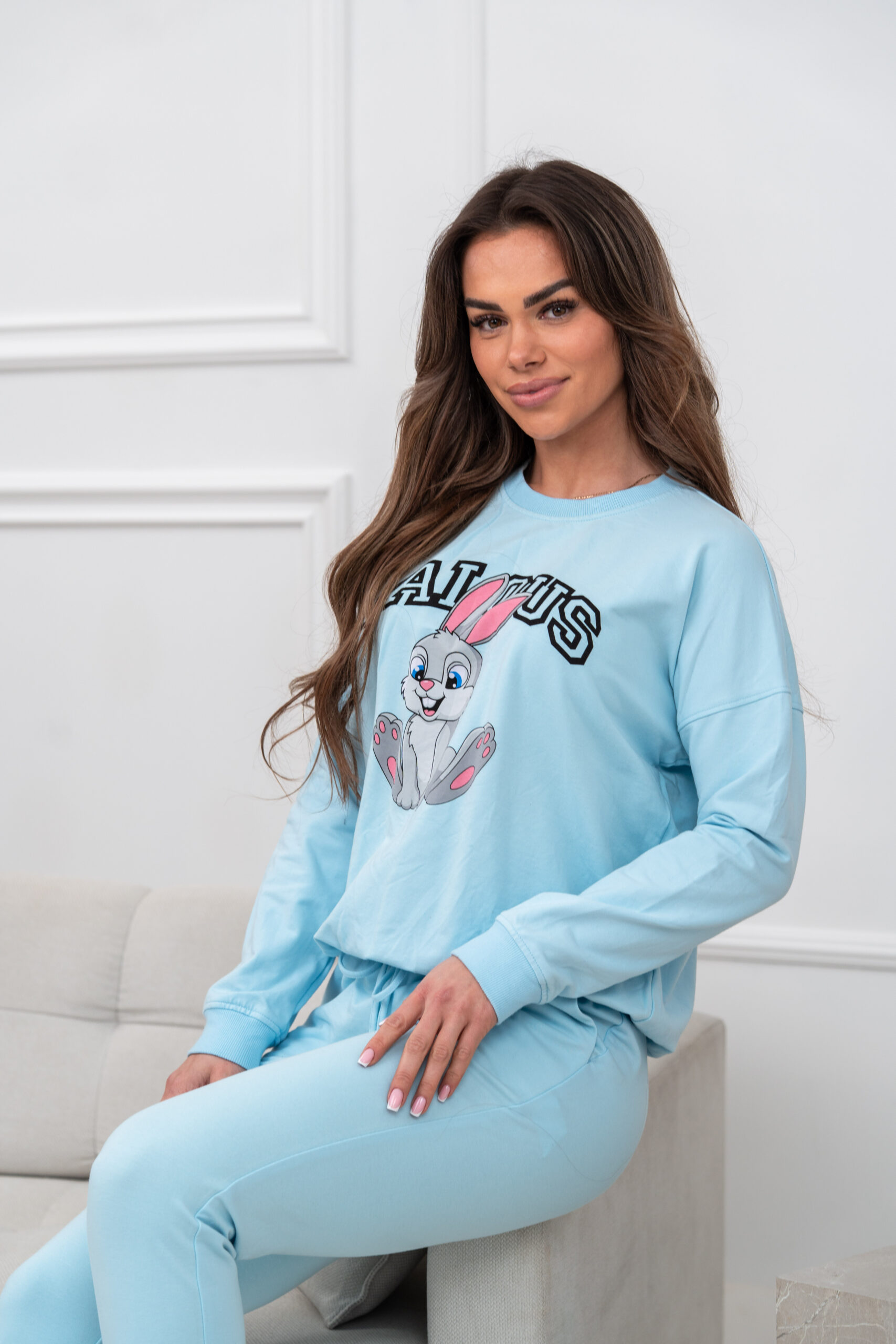 Najnowszy komplet, który Cię otuli da poczucie komfortu, luzu a jednocześnie będzie kobiecy, zabawny i komfortowy. Komplet składa się z bluzy dresowej o luźnym kroju oraz spodni dresowych. Bluza jest bardzo przyjemna dla ciała i poczujesz się w niej niezwykle komfortowo. Rękawy oraz dół bluzy zostały wykończone ściągaczem, na przodzie bluzy aplikacja. Spodnie dresowe lekko dopasowane do sylwetki znakomicie wyszczuplają nogi. Uszyty  z mięciutkiej bawełny. Spodnie posiadają praktyczne kieszenie, w pasie jest szeroka guma i sznurek. Całość, bluza ze spodniami tworzą  sportowy look. PRODUKT PREMIUM – POLSKA PRODUKCJA!!!