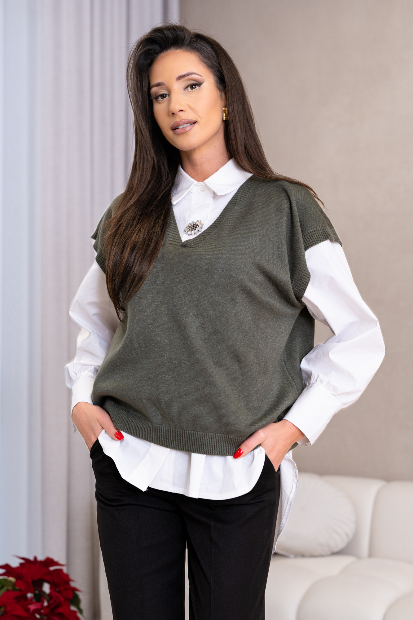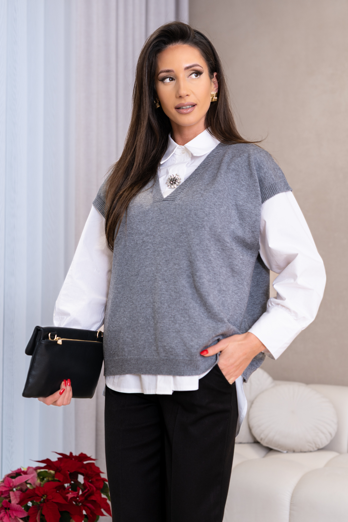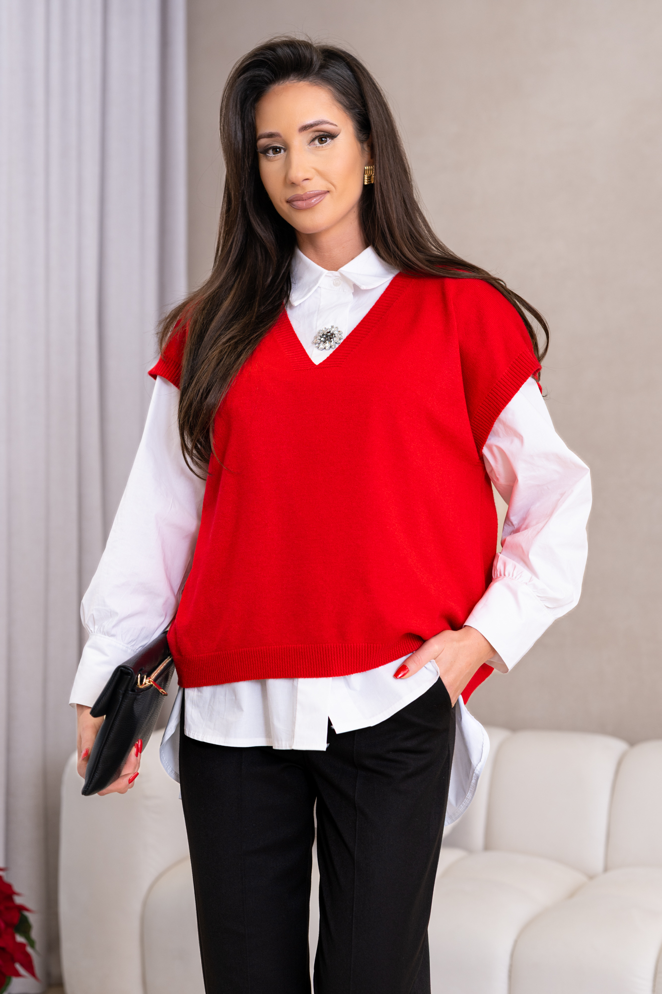 Wskazane jest, aby połączyć tę kamizelkę z prostą koszulą, jak pokazano na zdjęciu modelki, a dzięki temu będziesz wyglądać delikatnie, wyrafinowanie, energicznie, stylowo – przyciągniesz uwagę.