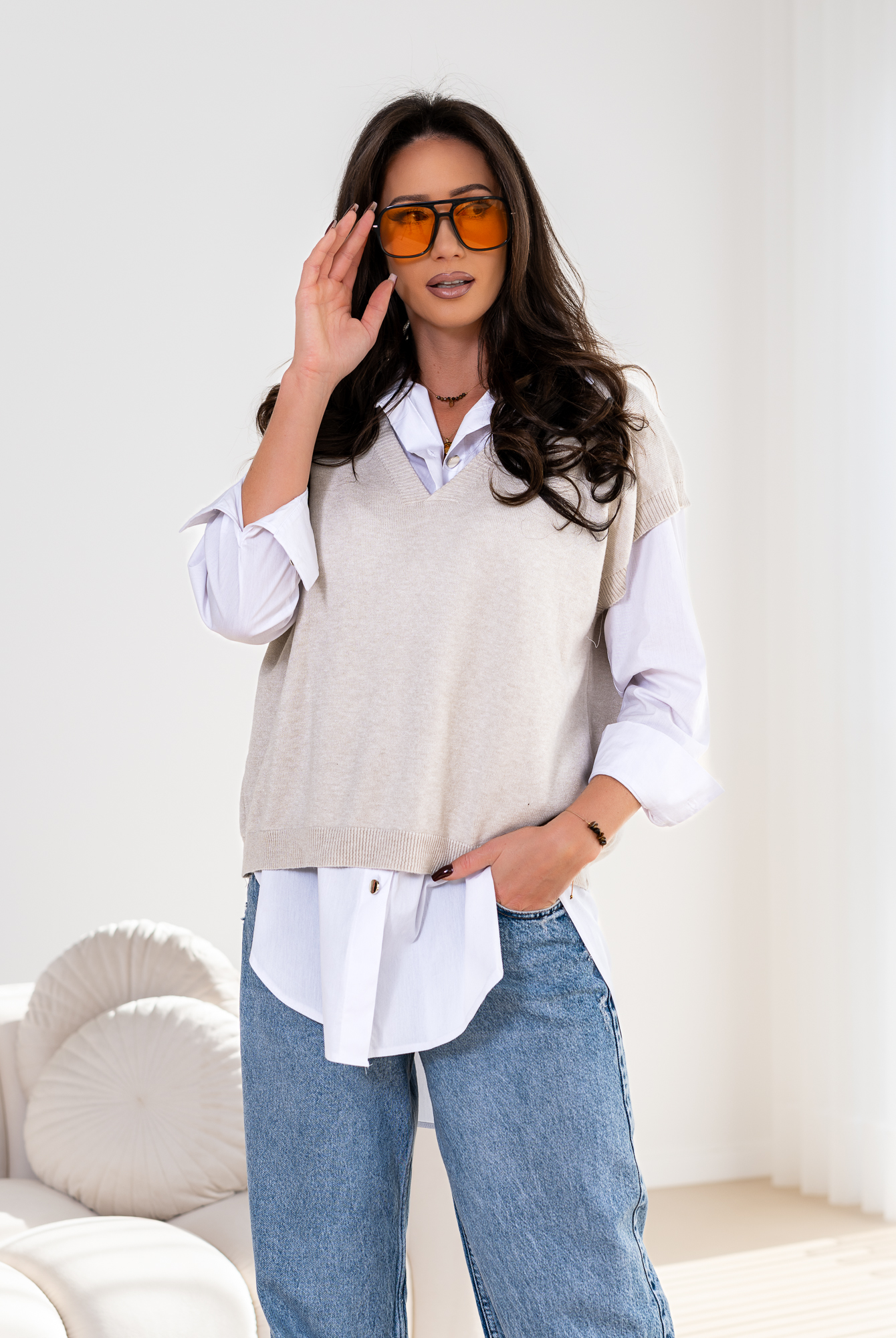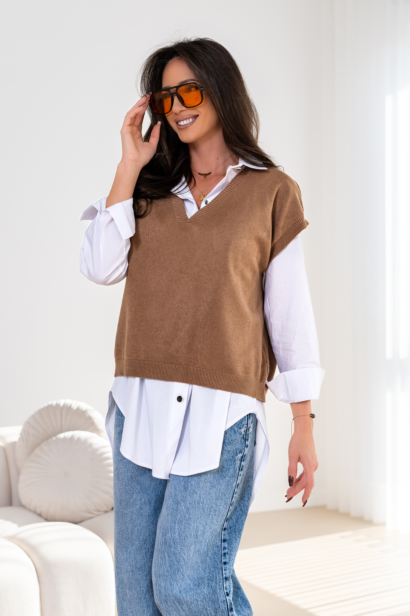 Idealna do noszenia na co dzień, na wyjścia, na spotkania ze znajomymi i z rodziną. A ponieważ kamizelka jest luźna i miękka, czujesz się w niej bardzo komfortowo.