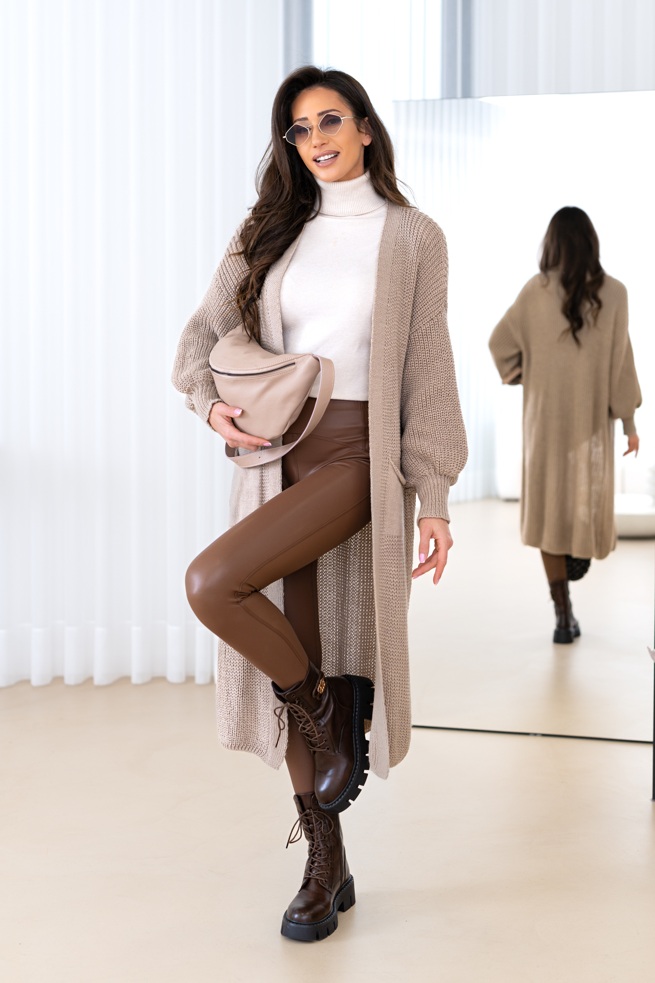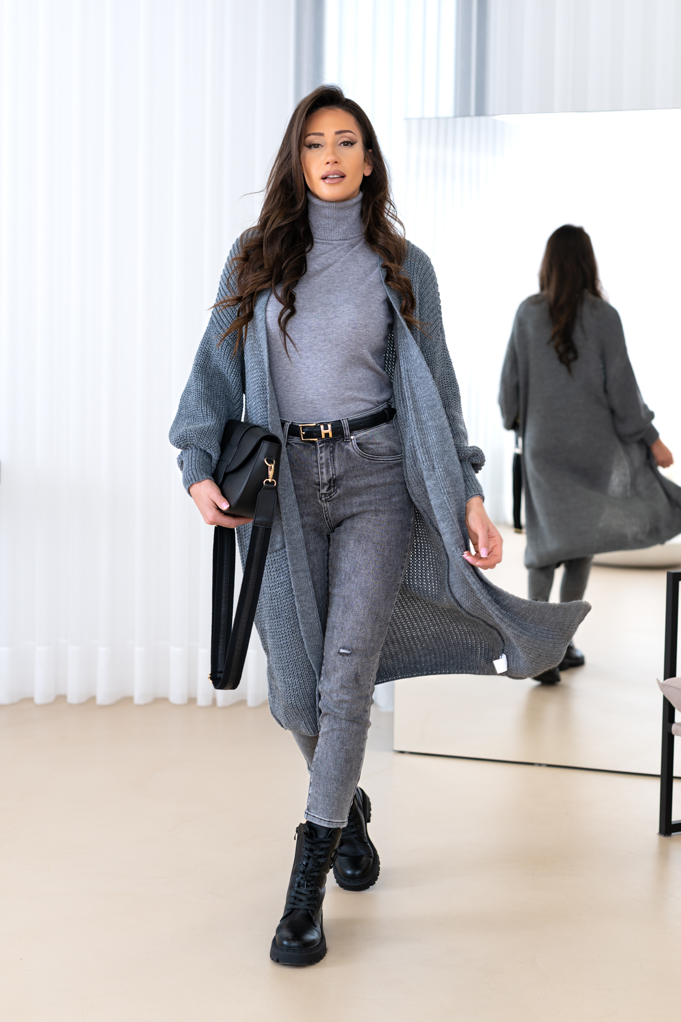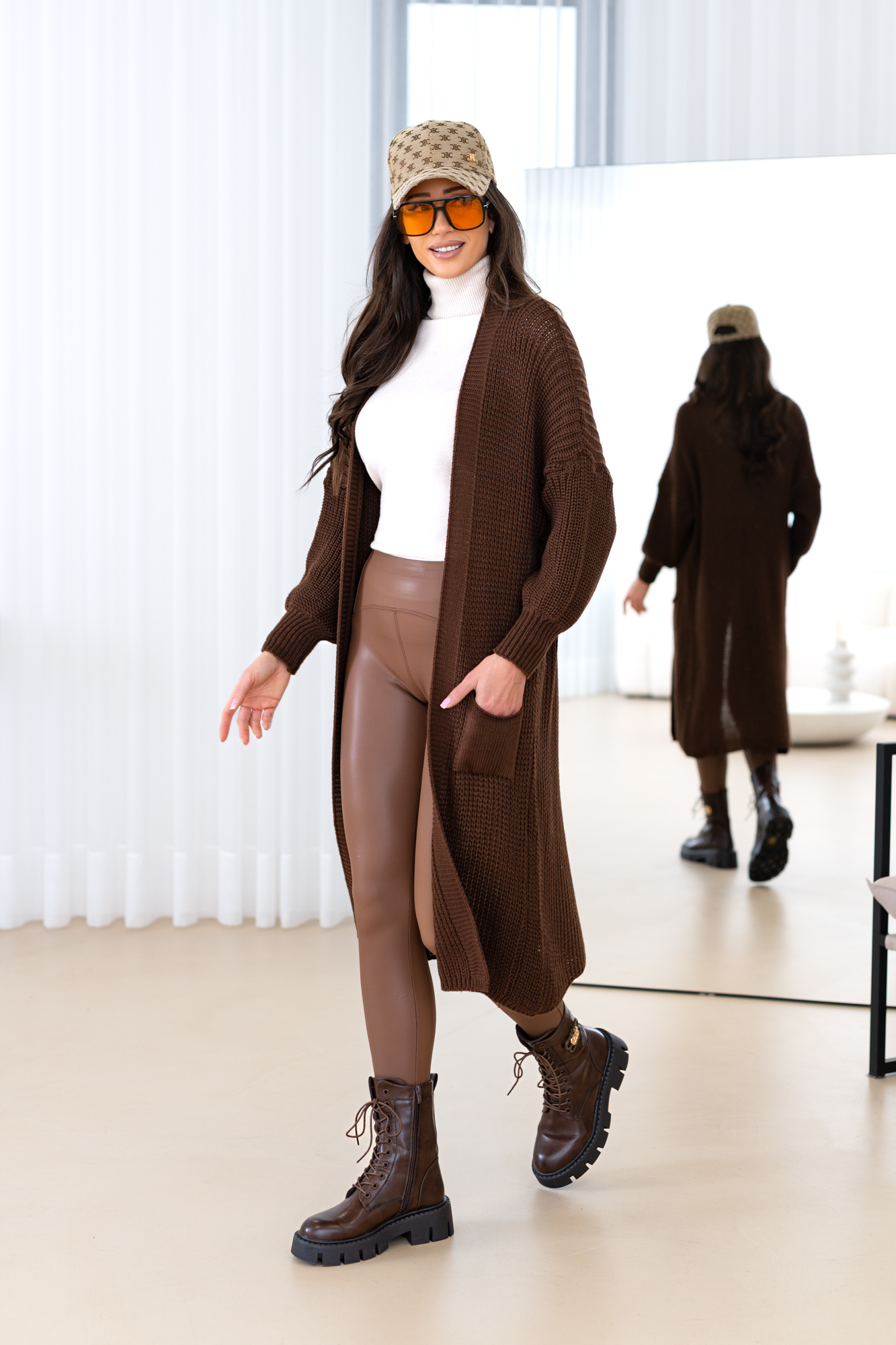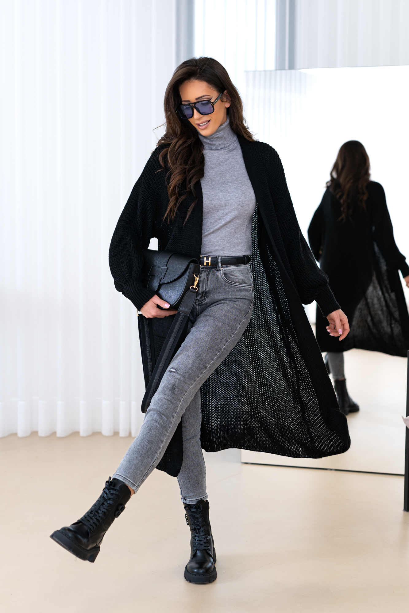 Model z obszernymi luźnymi rękawami, długi, prosty krój, który świetnie wydłuża sylwetkę oraz tuszuje ewentualne niedoskonałości 🙂 Kardigan doskonale będzie prezentował się zarówno w eleganckich, jak i codziennych stylizacjach.
