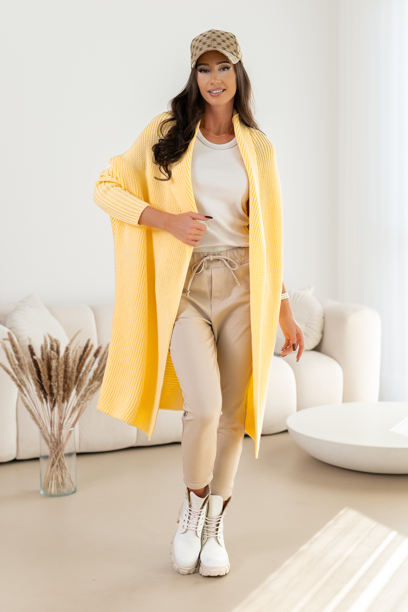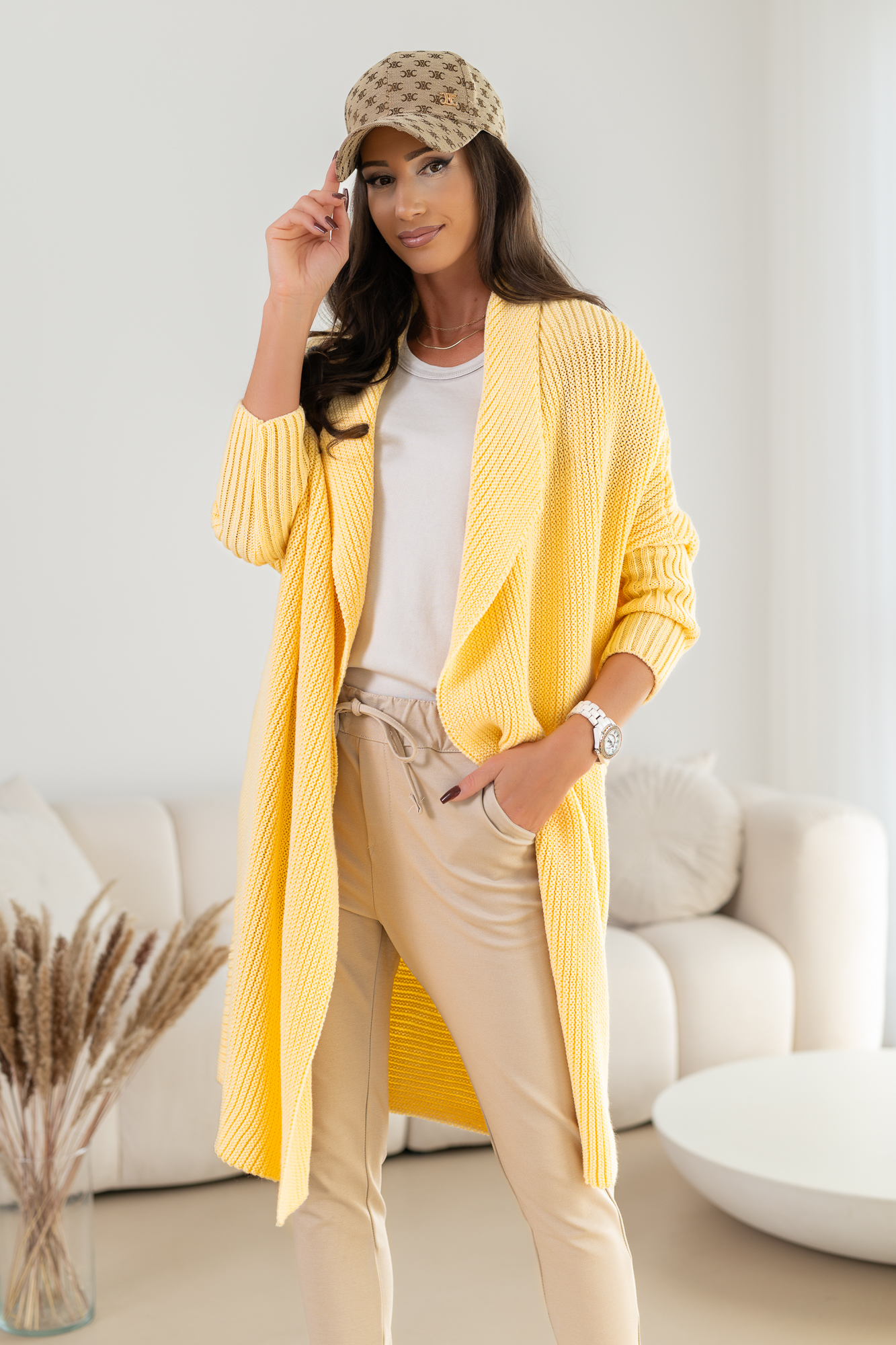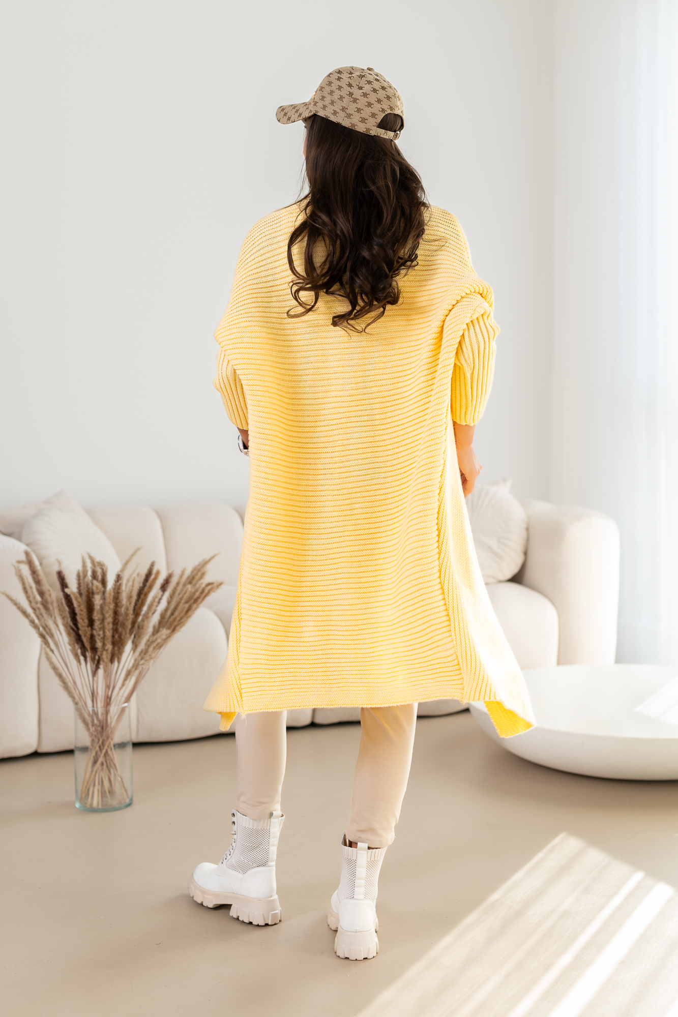 Klasyczny kardigan bez zapięcia.  Długi, prosty krój, który świetnie wydłuża sylwetkę oraz tuszuje ewentualne niedoskonałości:-)  Kardigan doskonale będzie prezentował się zarówno w eleganckich, jak i codziennych stylizacjach.  Niezapinany, wygodny o prostym kroju to must have w szafie każdej kobiety. Sweter doskonale będzie prezentował się w pracy, na spacerze czy zestawiony z elegancką koszulą.  Wygląda świetnie zarówno z jeansami jak i z dopasowanymi spódnicami. Jego materiał jest miękki, dobrze dopasowuje się do sylwetki i nie krępuje ruchów. W rześkie dni posłuży jako alternatywa dla lekkich kurtek i wygodnych bluz.