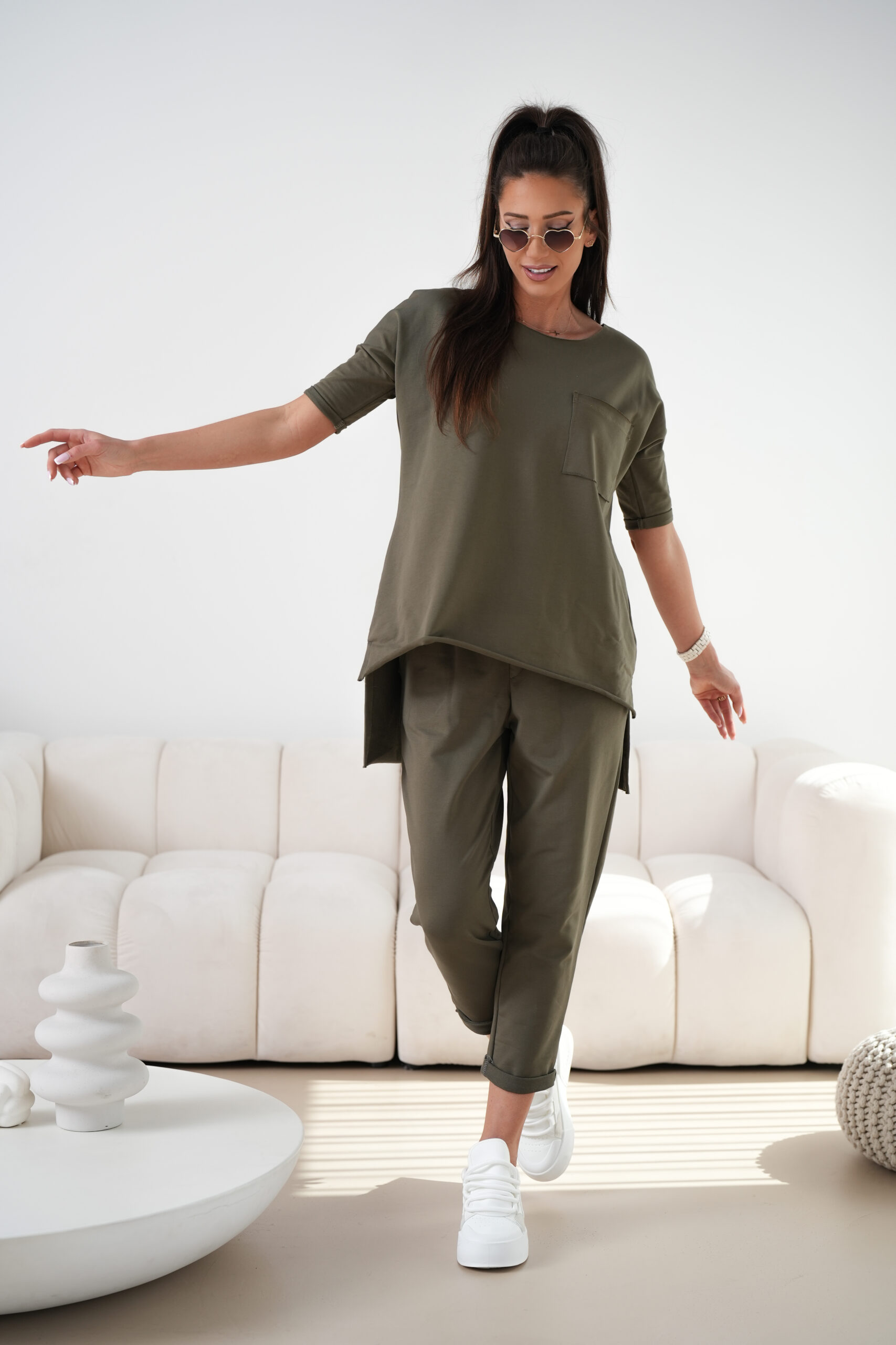 Bluzka i spodnie wykonane z wysokiej jakości bawełnianego materiału to propozycja, która doskonale sprawdzi się w każdej garderobie. To zestaw o modnym prostym fasonie. Prezentuje się naprawdę efektownie i pozwala na stworzenie wygodnej, a jednocześnie oryginalnej stylizacji! POLSKA PRODUKCJA!!!