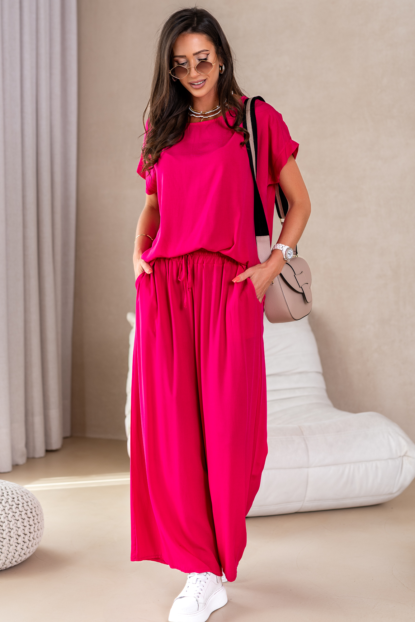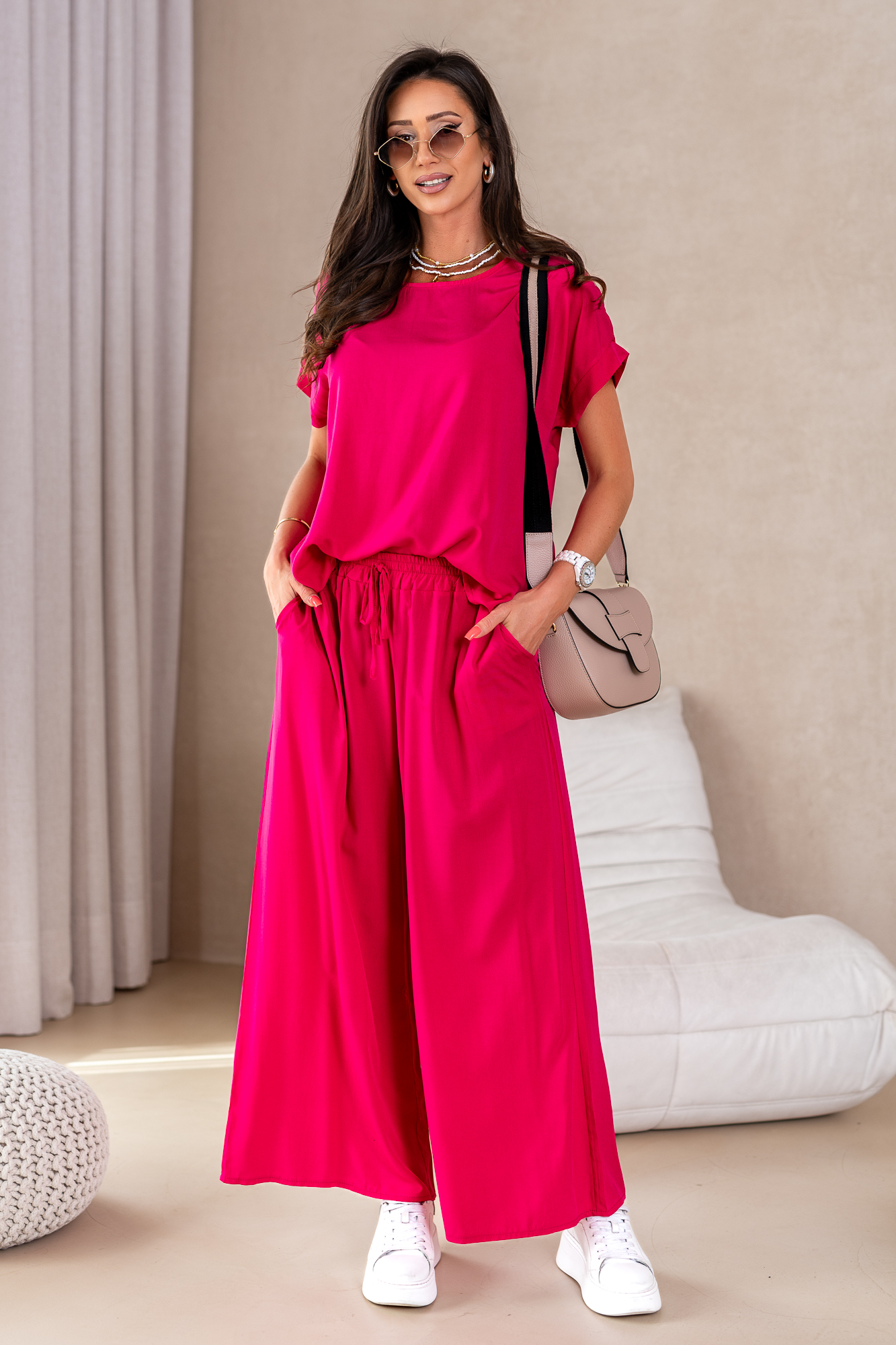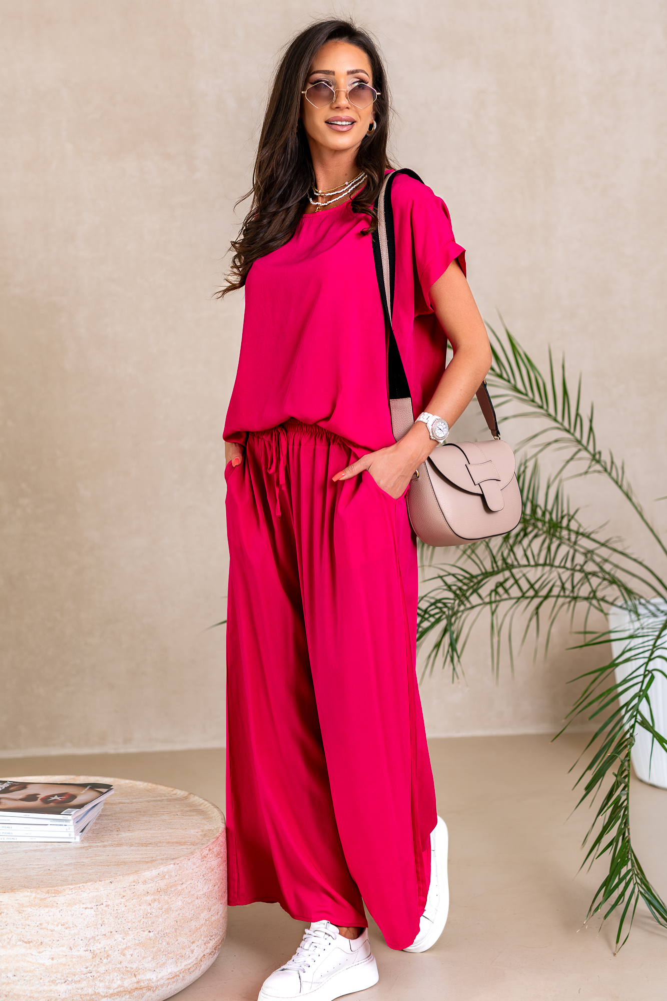 Nasz komplet w żadnym wypadku nie jest zwyczajny. Producenci piszą o nim tak „Przestudiowaliśmy DNA najbardziej uniwersalnej klasyki, a następnie nadaliśmy jej super aktualny charakter – i tak powstał ten super komplet”. Mega miły materiał, przewiewny i cudownie układający się na sylwetce.
