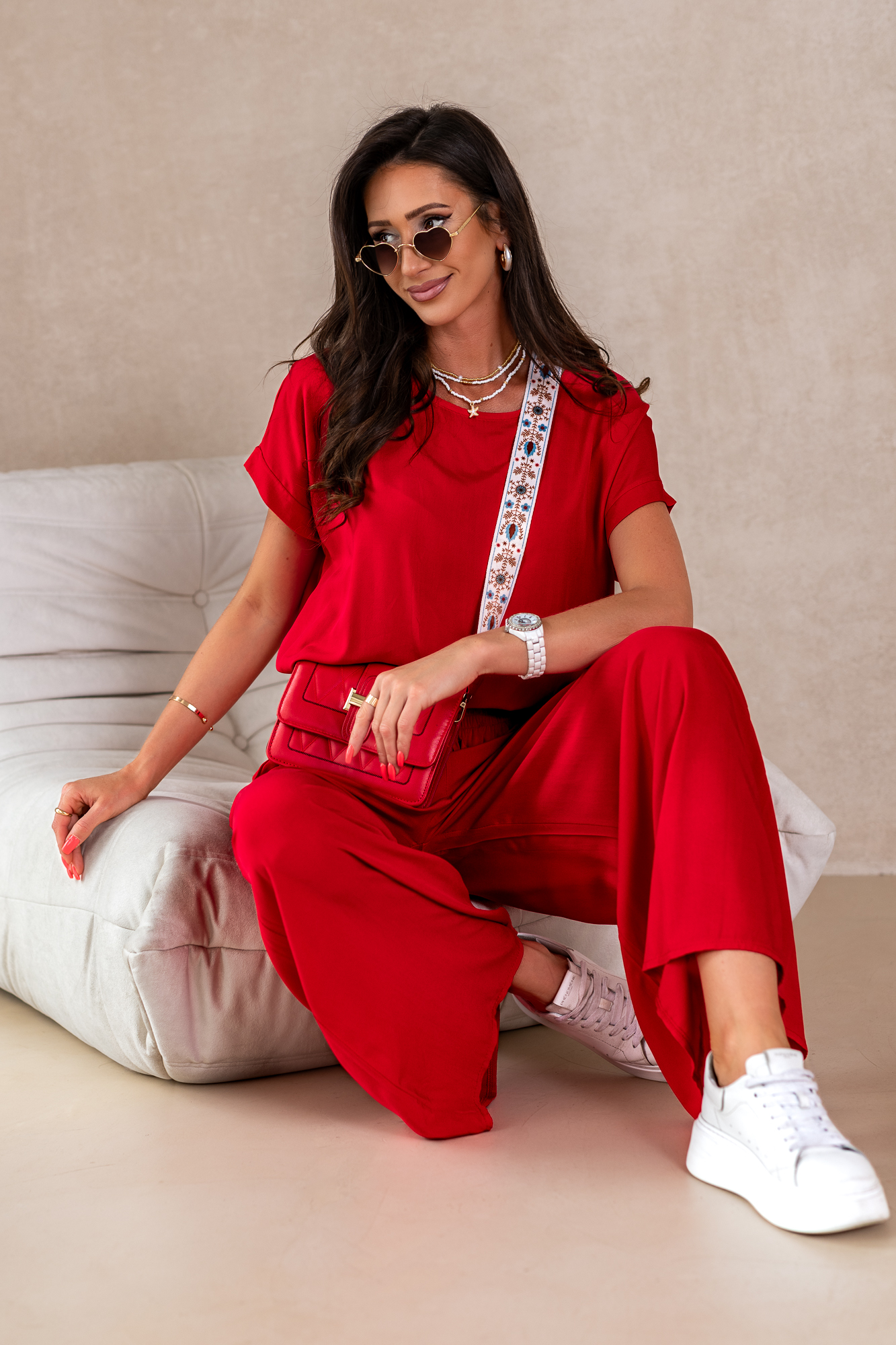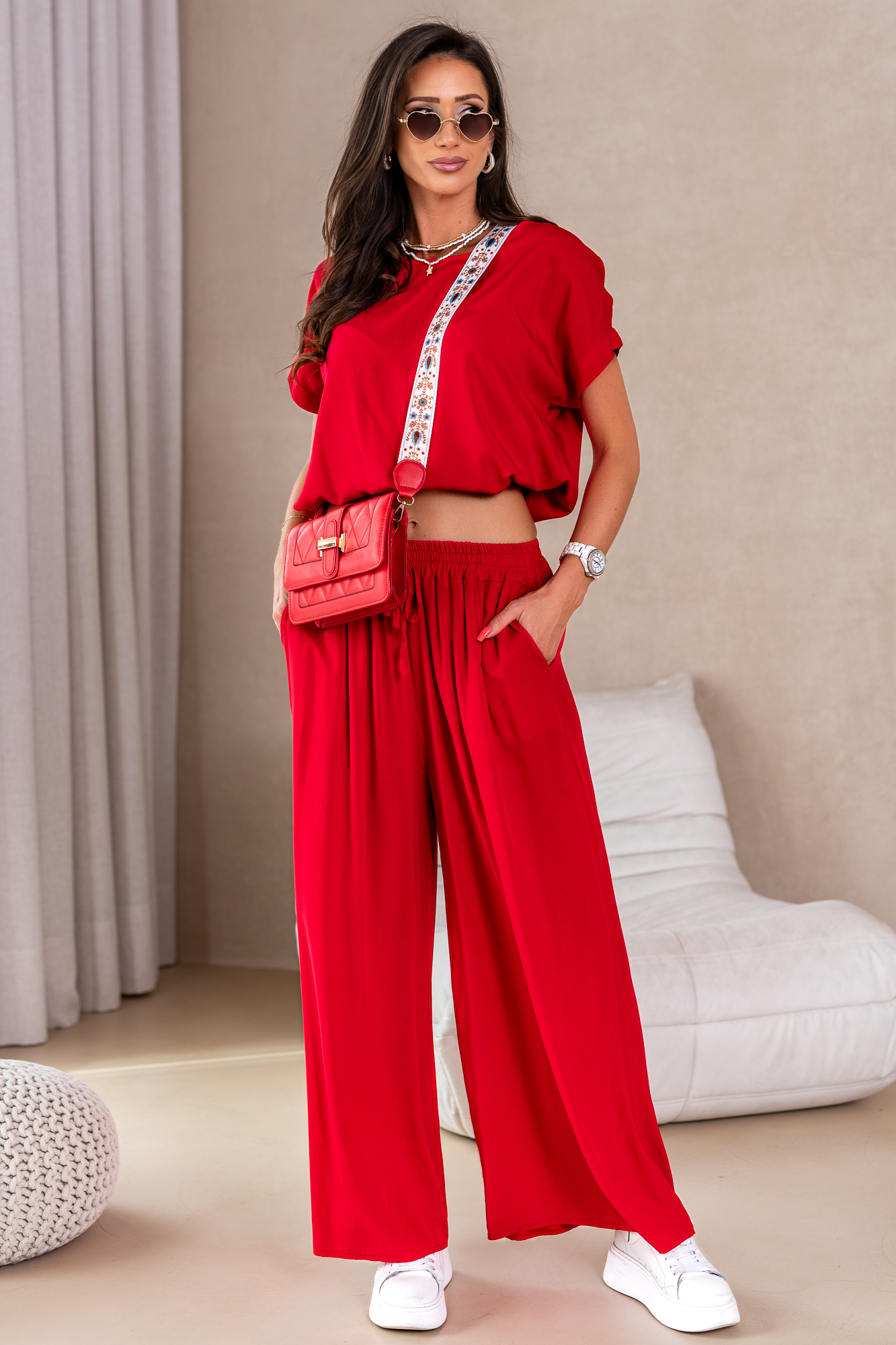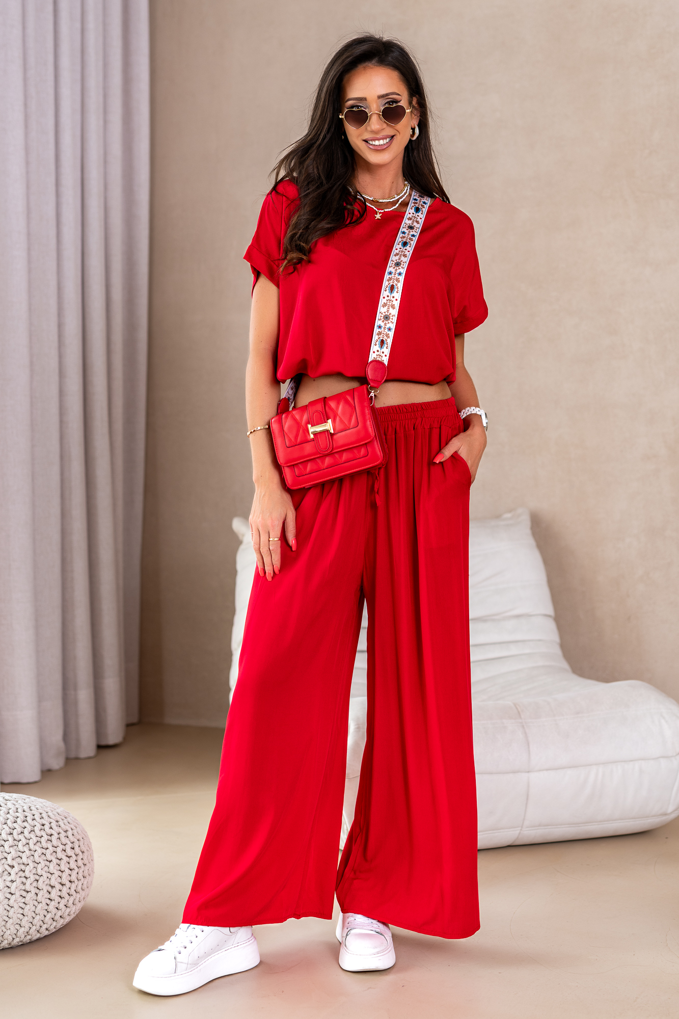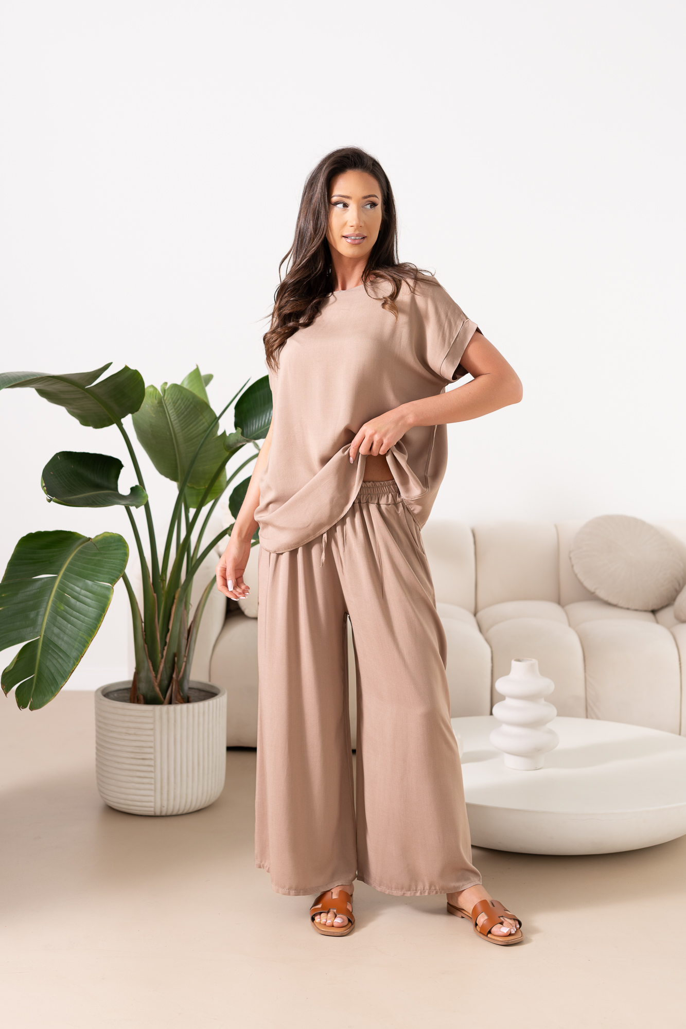 Nasz komplet w żadnym wypadku nie jest zwyczajny. Producenci piszą o nim tak „Przestudiowaliśmy DNA najbardziej uniwersalnej klasyki, a następnie nadaliśmy jej super aktualny charakter – i tak powstał ten super komplet”. Mega miły materiał, przewiewny i cudownie układający się na sylwetce.