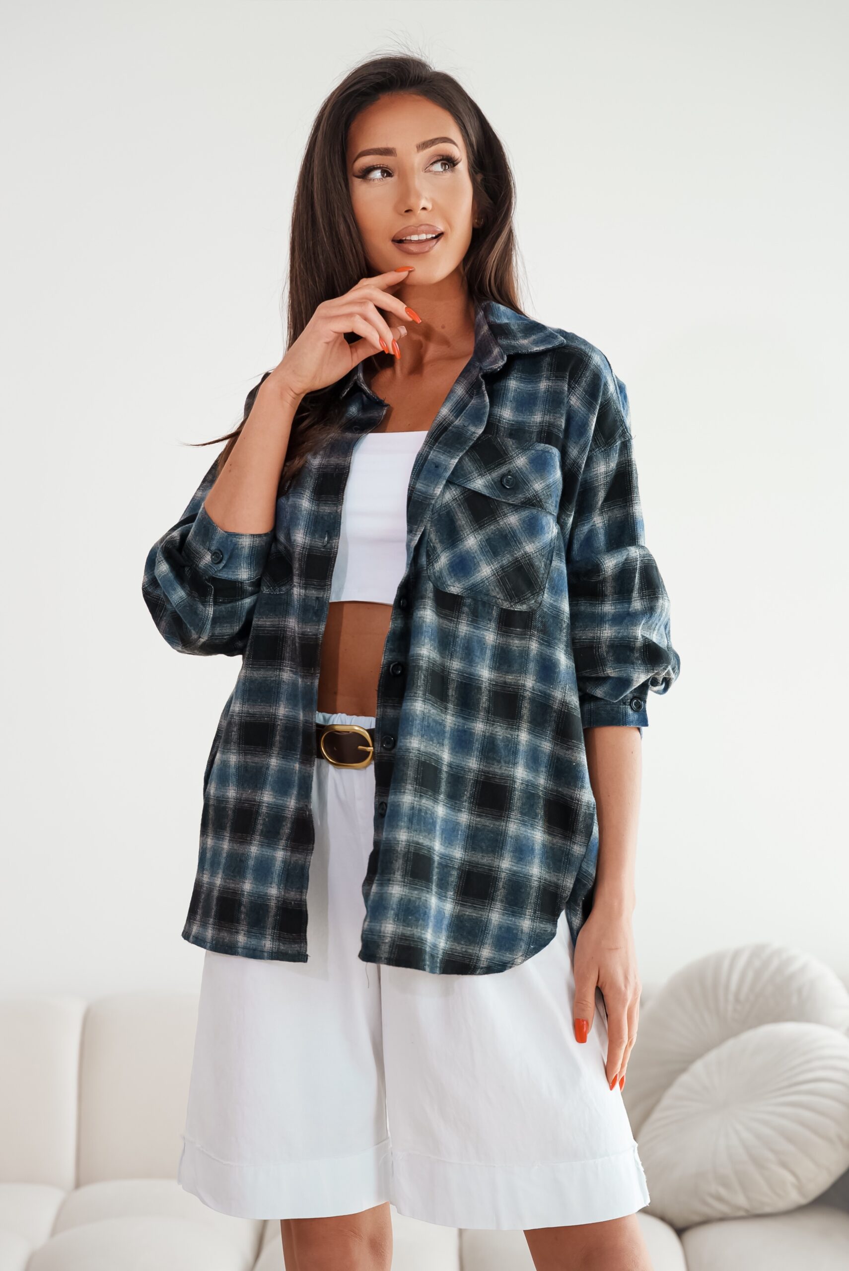 Oversize’owa, przedłużana koszula z bawełnianego materiału w kratę z dodatkiem elastanu. Rękaw długi. Unikatowa aplikacja na plecach w postaci skrzydeł z dżetów oraz napis!!! To klasyczna koszula z pazurem!!! Zapinana na małe guziki. Klasyka, moda i szyk z odrobiną nowoczesności i frywolności. KOSZULA FASON OVERSIZE!!!