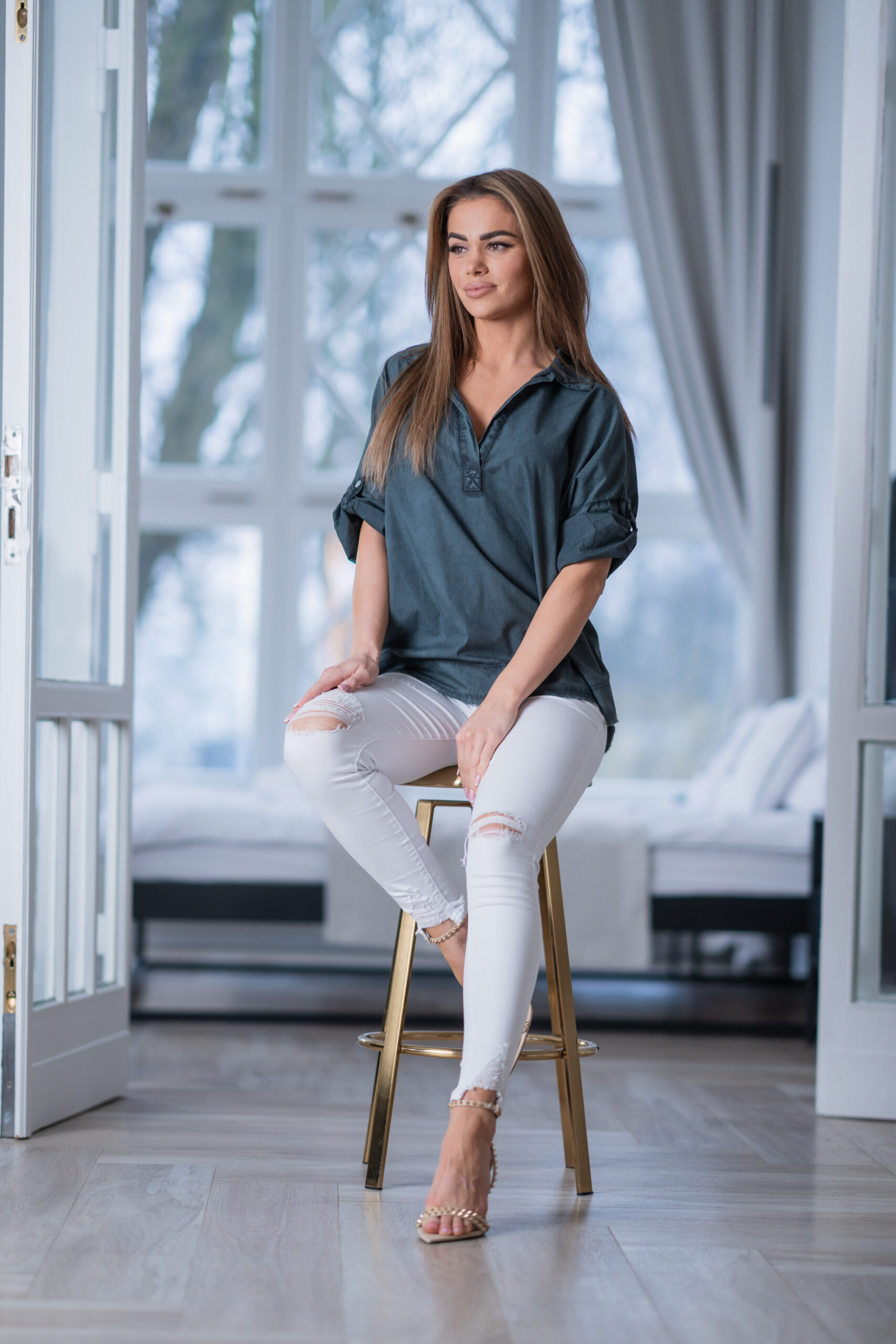 Oversize’owa, przedłużana koszula z bawełnianego materiału z dodatkiem elastanu.