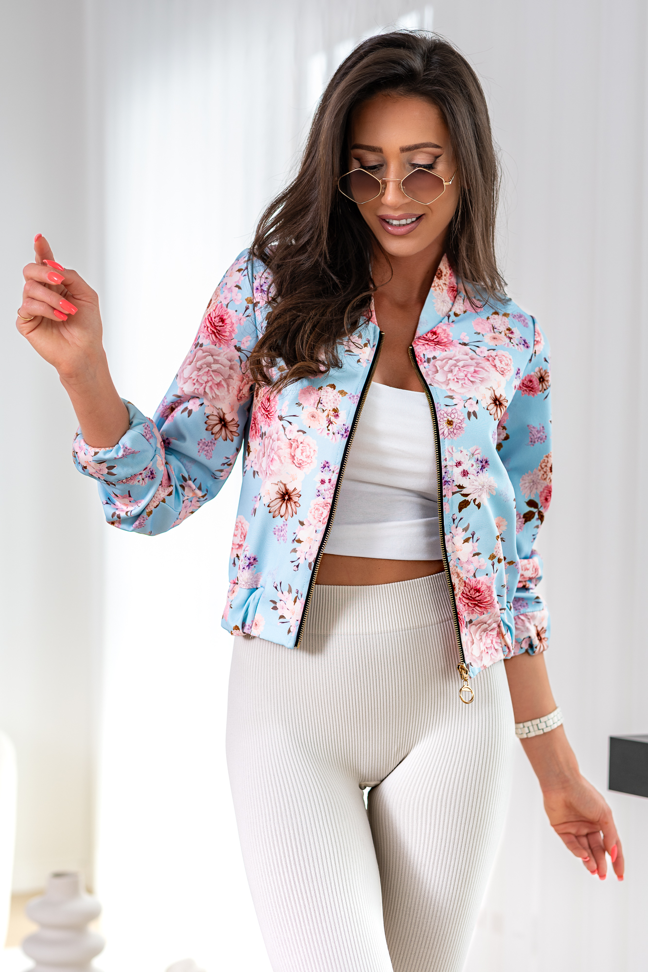 Wygodna rozpinana bluza która świetnie komponuje się ze spodniami, dżinsami lub spódniczką. Luźna forma zapewnia swobodę ruchów. Ściągacze przy mankietach nadają jej modny, stylowy wygląd. Dół bluzy wykończony ściągaczem a całość zdobi ciekawy print.