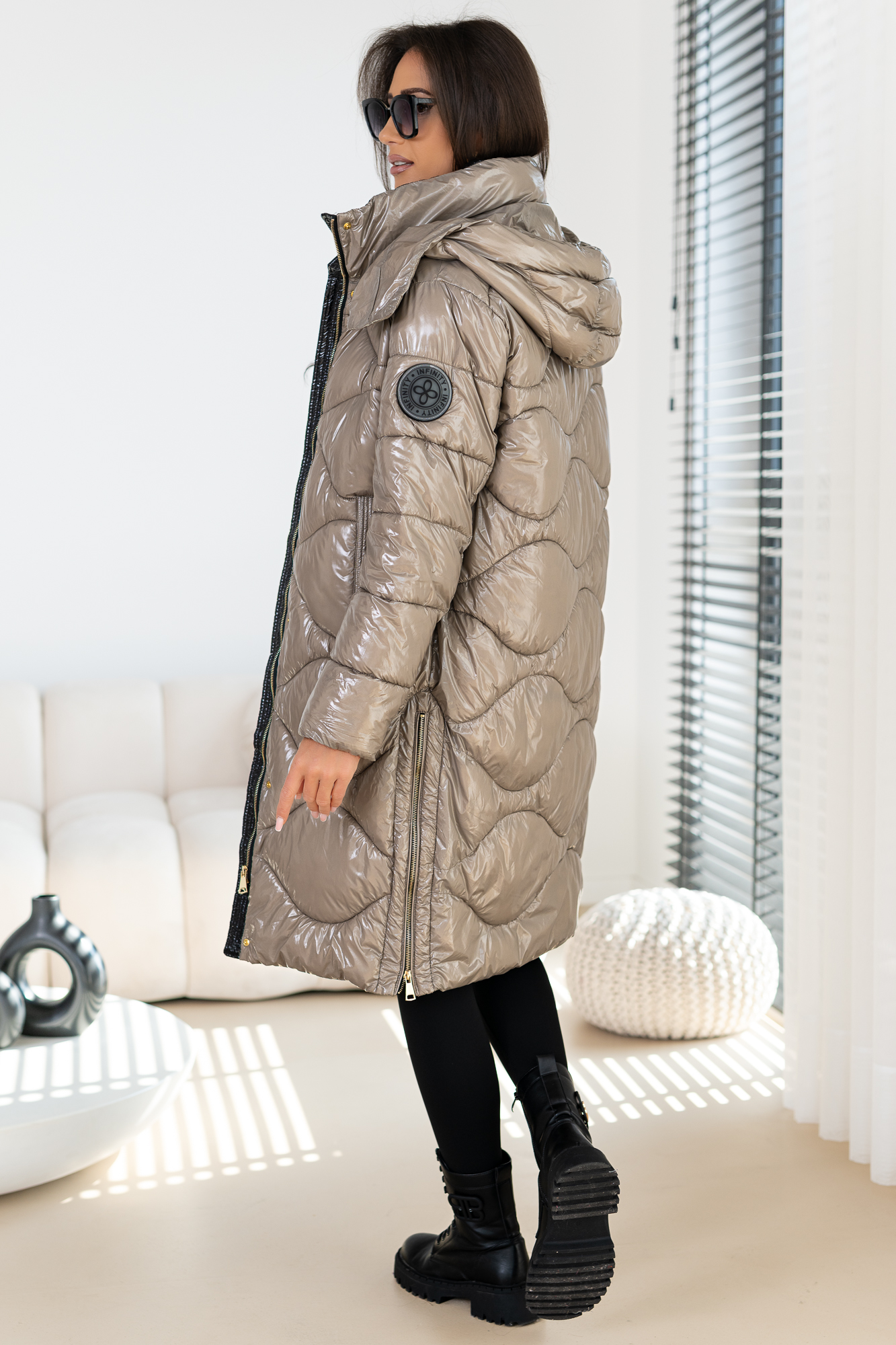 Zanurz się w luksusie i otul ciepłem w tej wyjątkowej, długiej kurtce puchowej! Jej niepowtarzalny, delikatny odcień beżu harmonijnie łączy się z błyszczącymi detalami, tworząc zachwycającą całość. Wykonana z najwyższej jakości materiałów, ta kurtka nie tylko wspaniale wygląda, ale również zapewnia niezrównany komfort i ochronę przed zimnem, nawet w najmroźniejsze dni.