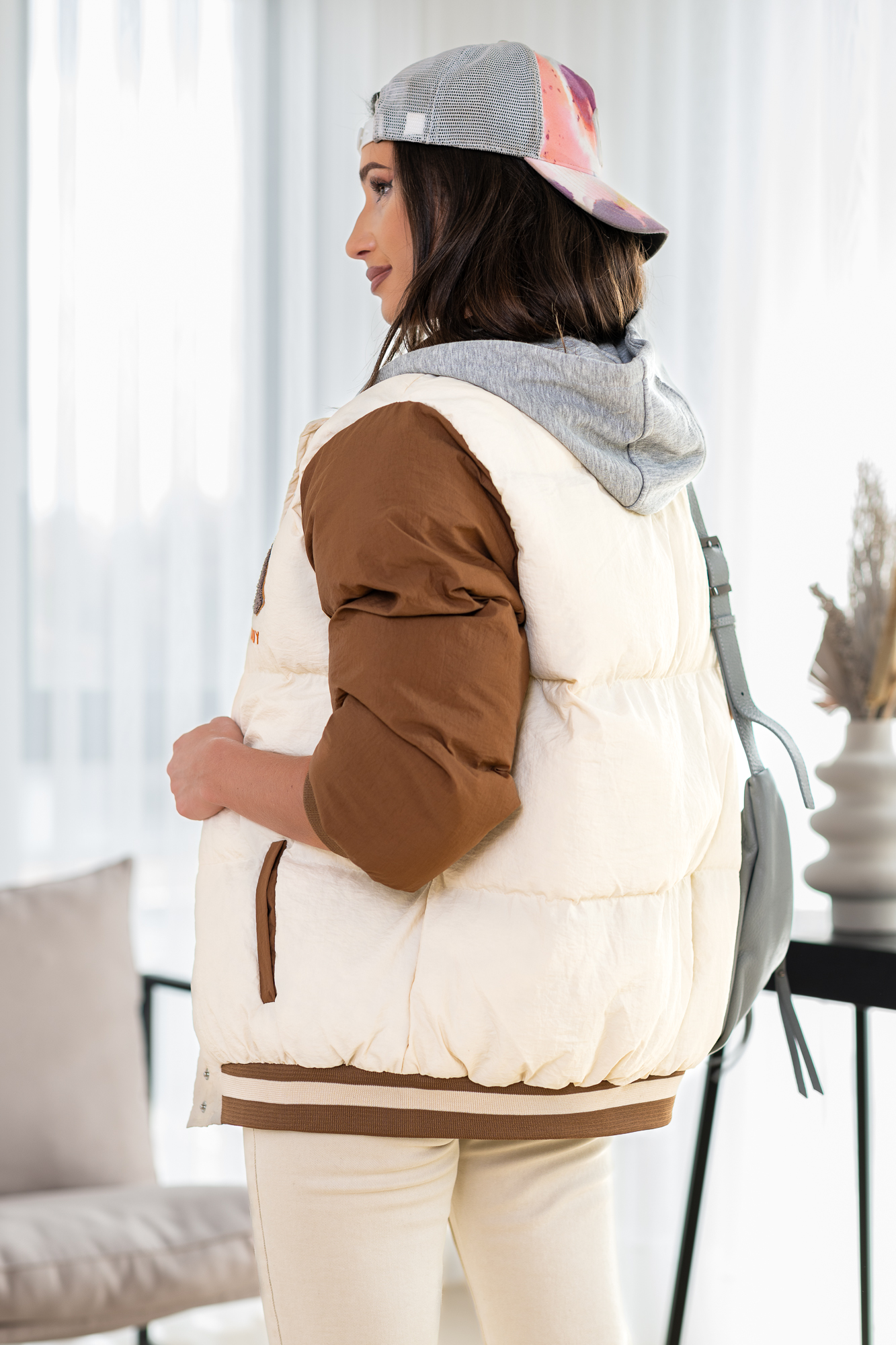 Kurtka damska, ocieplana. Kaptur kurtki jest bawełniany. kurtka posiada także stójkę, zapinana na napy przy rękawach i na dole kurtki ściągacz. Kurtce charakteru nadają naszycia i zestaw kolorystyczny, który będzie totalnym hitem w nadchodzącym sezonie. Kurtka tego typu to dobrze znany element kobiecej garderoby jest uniwersalna i ponadczasowa, pasująca do wielu stylizacji. Kurtka posiada kieszenie boczne. Idealna na nadchodzący czas