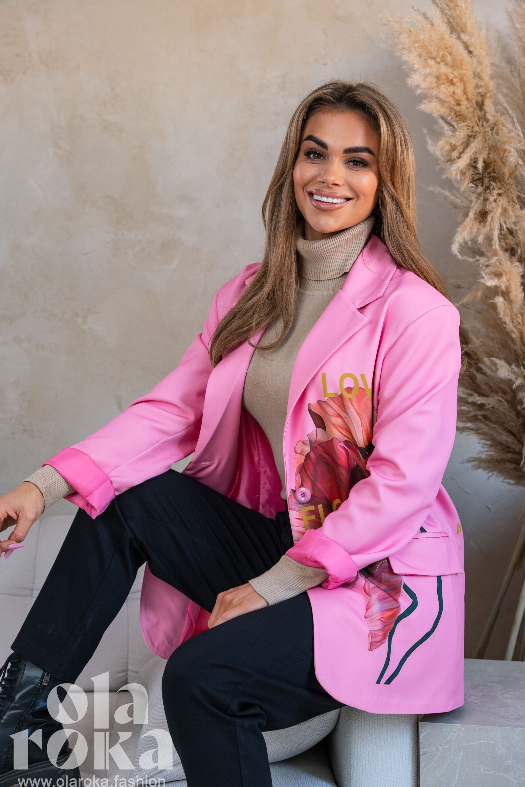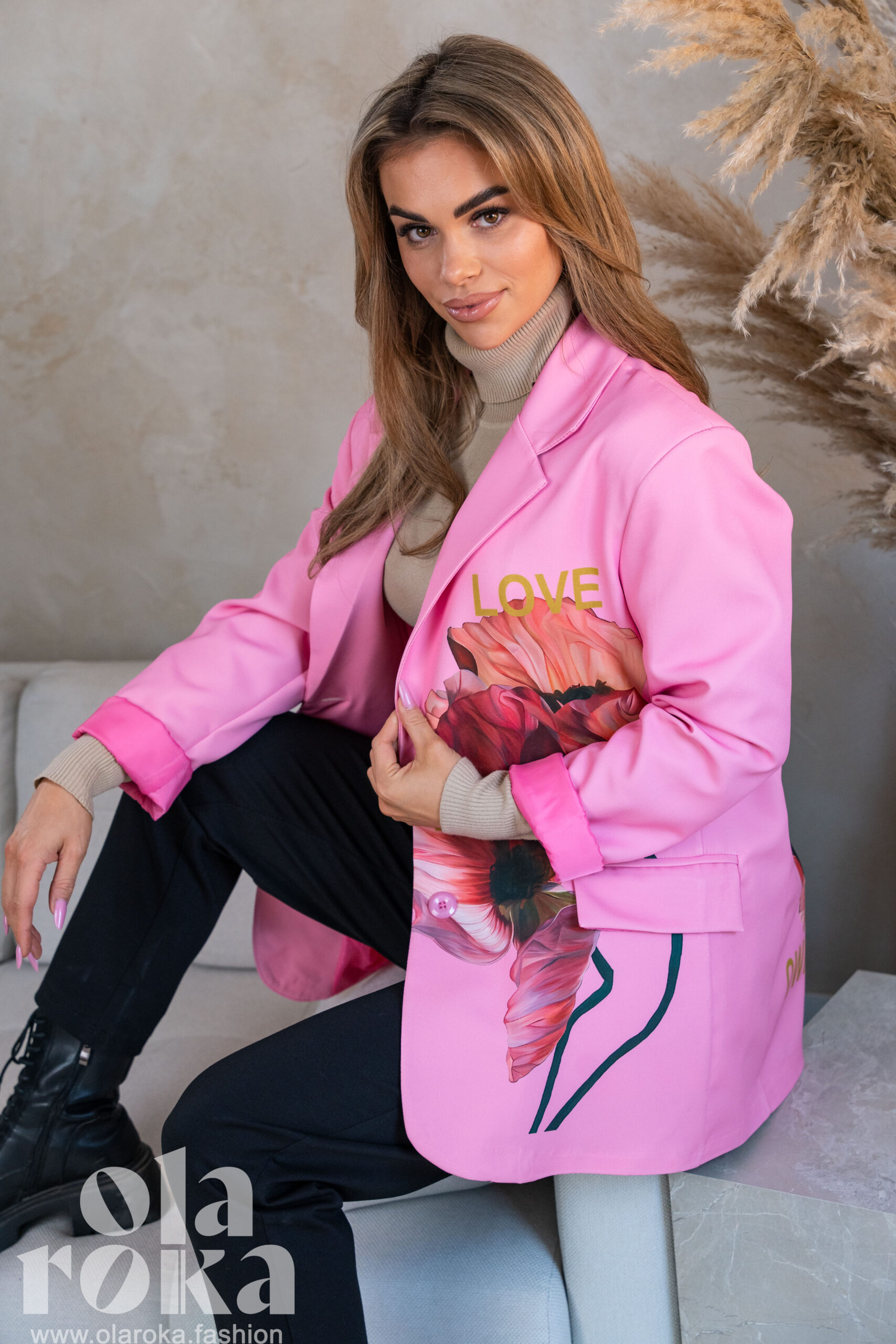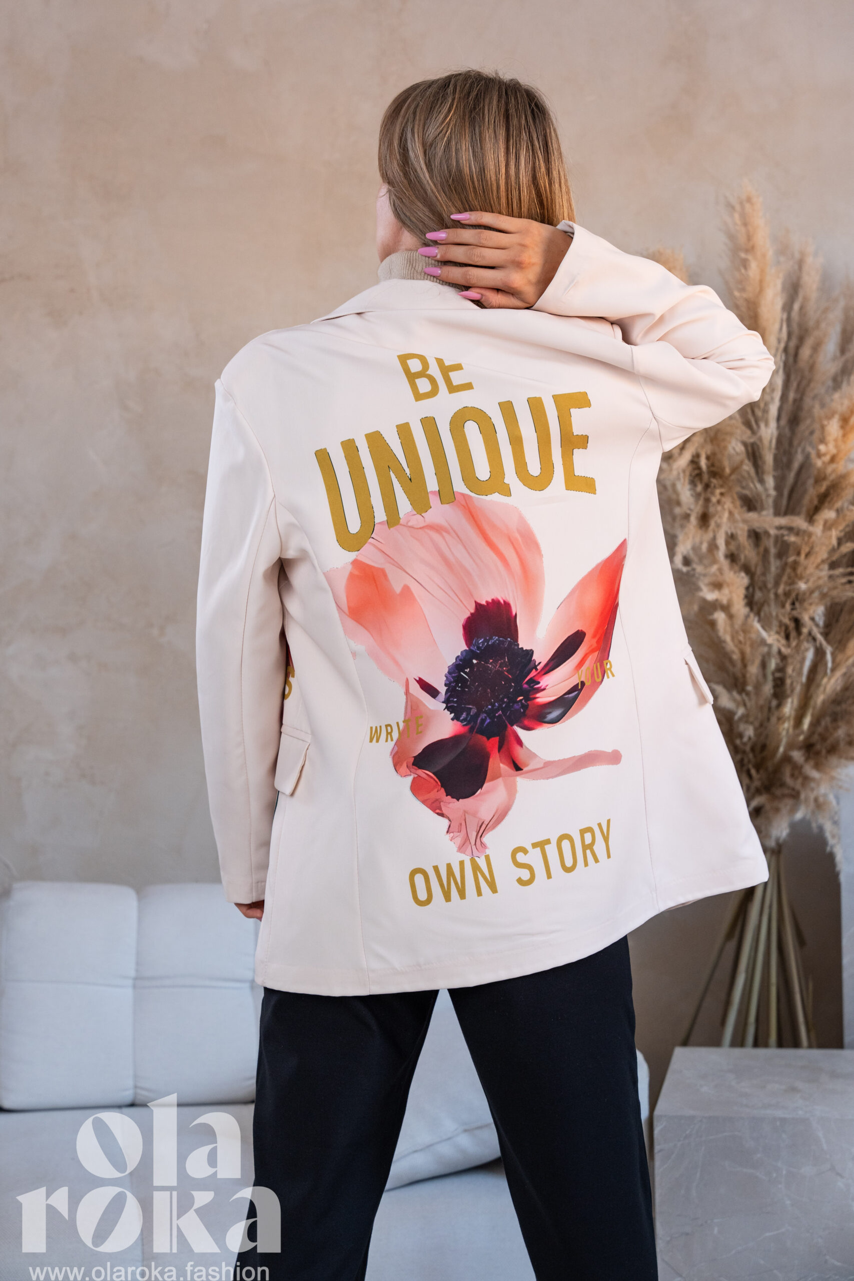 Marynarka z artystycznymi nadrukami kwiatowymi, które dodają wyjątkowego charakteru każdej stylizacji.