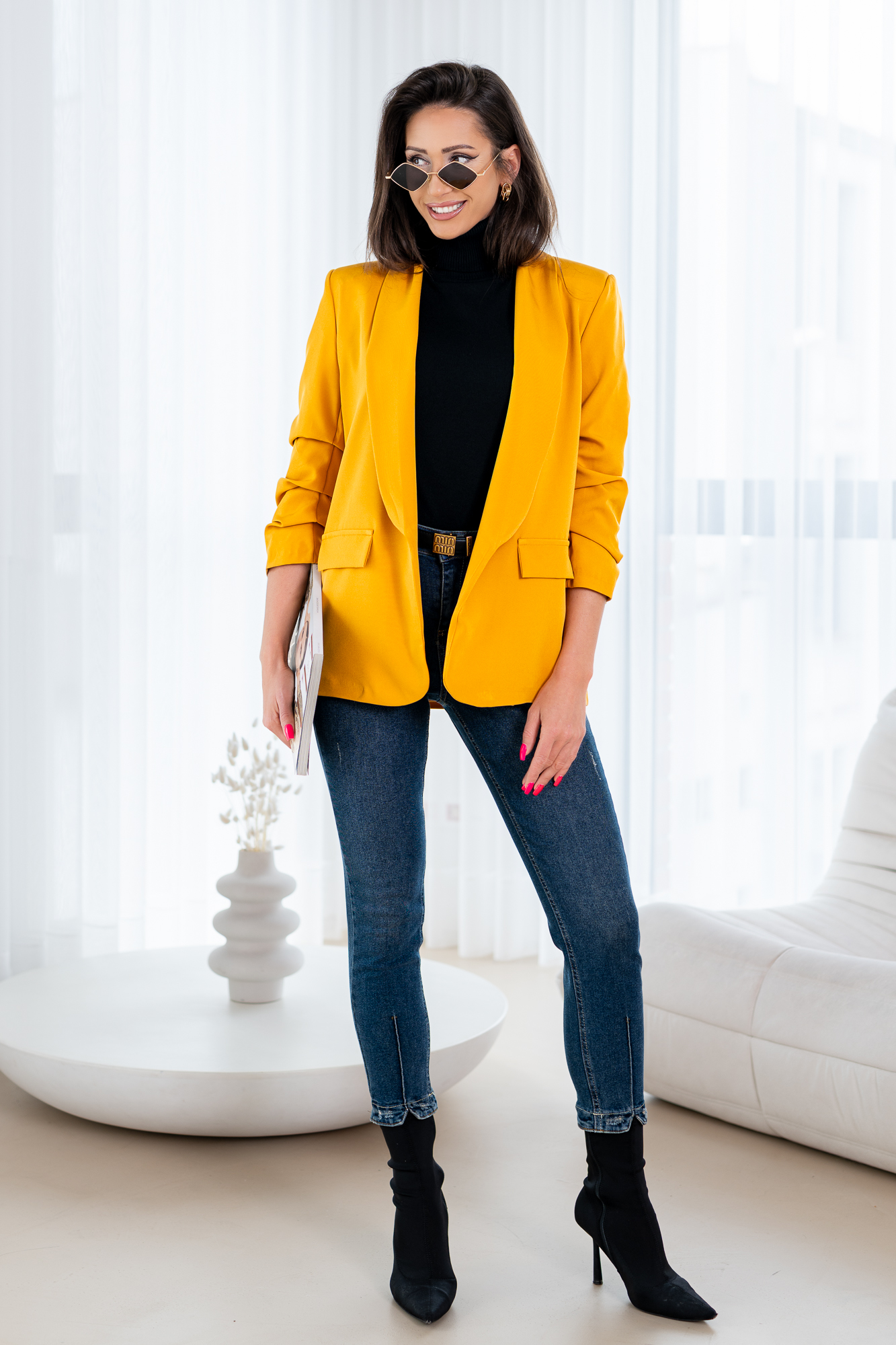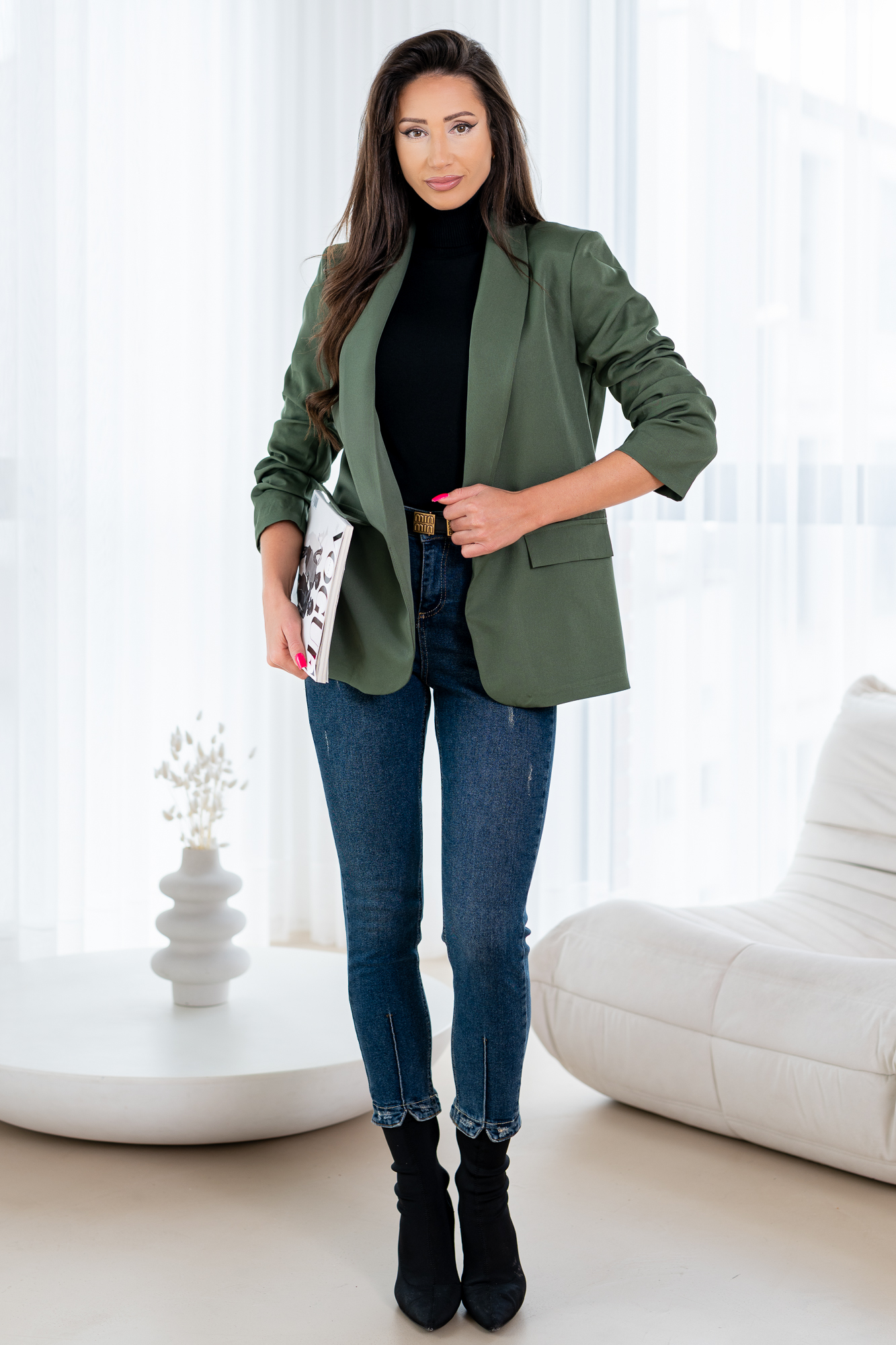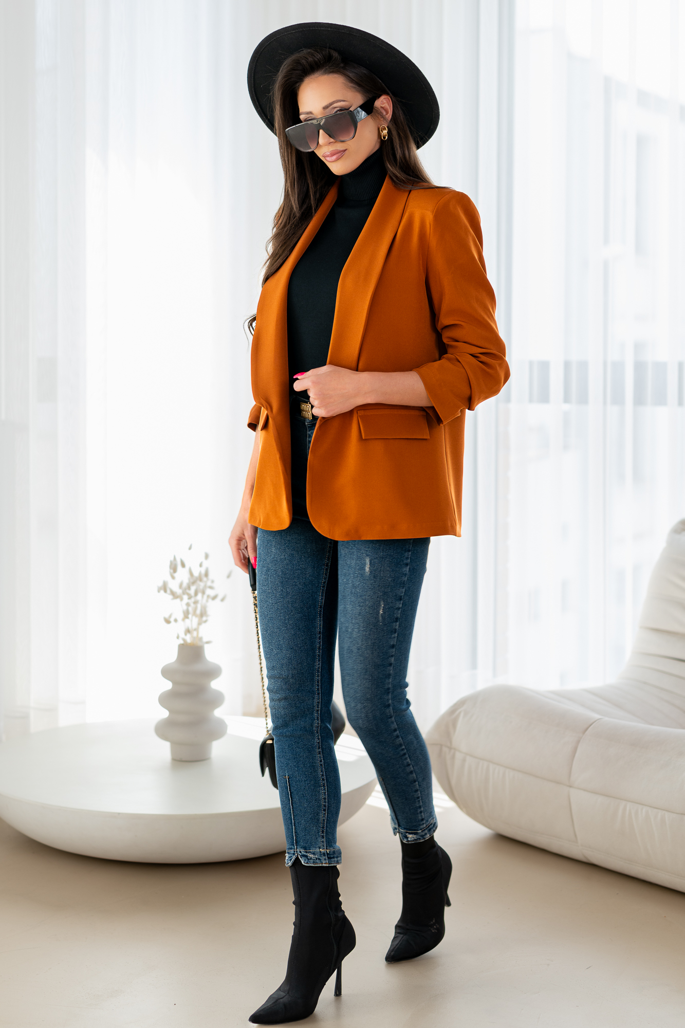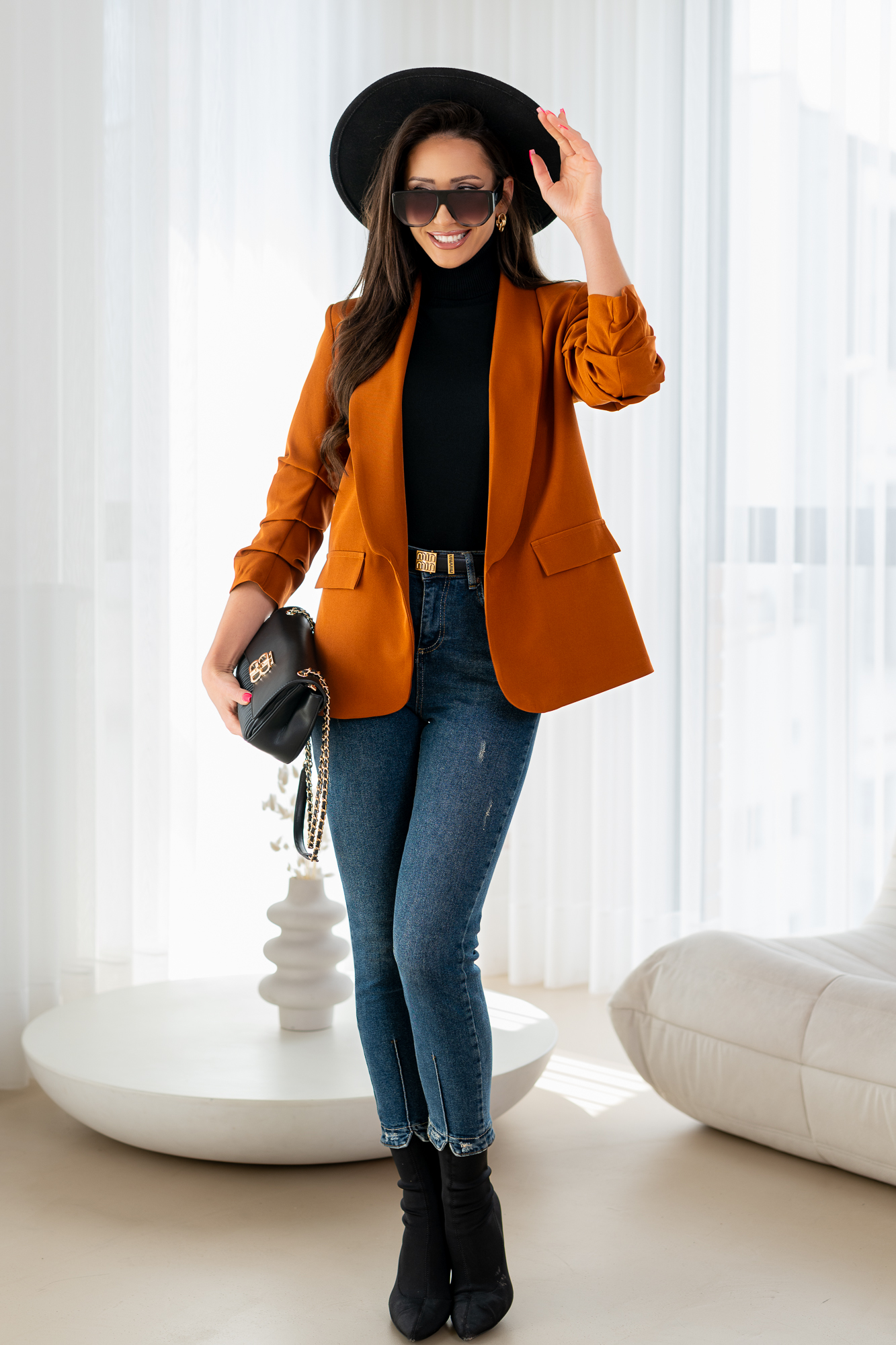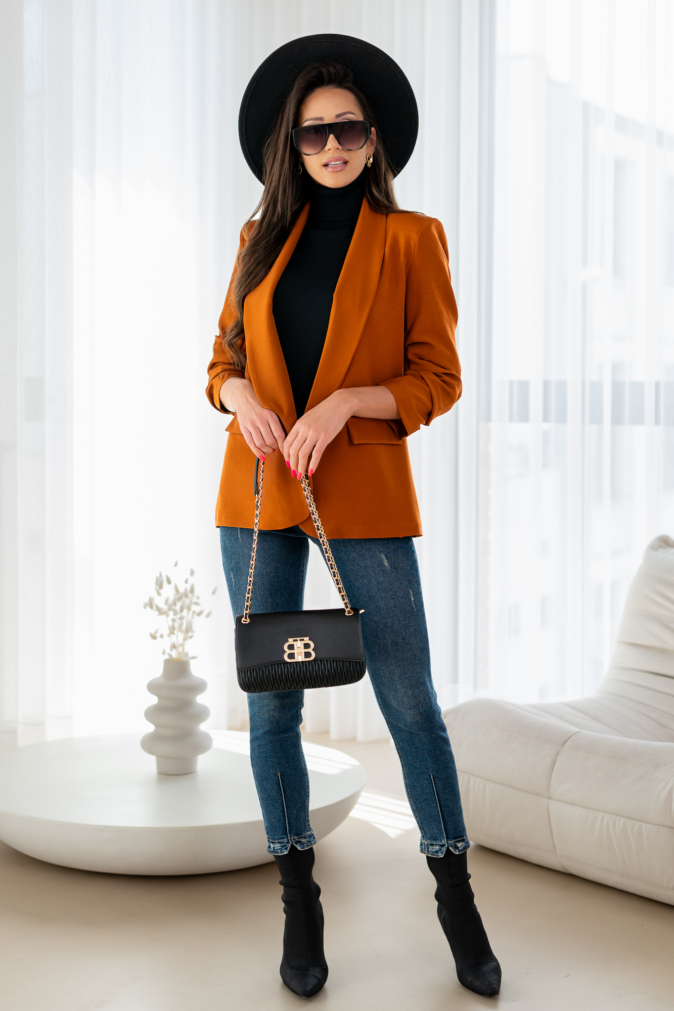 Elegancka marynarka, która idealnie łączy w sobie nowoczesny styl i klasyczną elegancję. Zapewnia nie tylko wyjątkowy wygląd, ale także komfort noszenia przez cały dzień. Ta stylowa marynarka wyróżnia się perfekcyjnym krojem, który podkreśla sylwetkę, dodając jej szyku i elegancji. Jest niezwykle uniwersalna – doskonale sprawdzi się zarówno w formalnych, jak i casualowych stylizacjach.