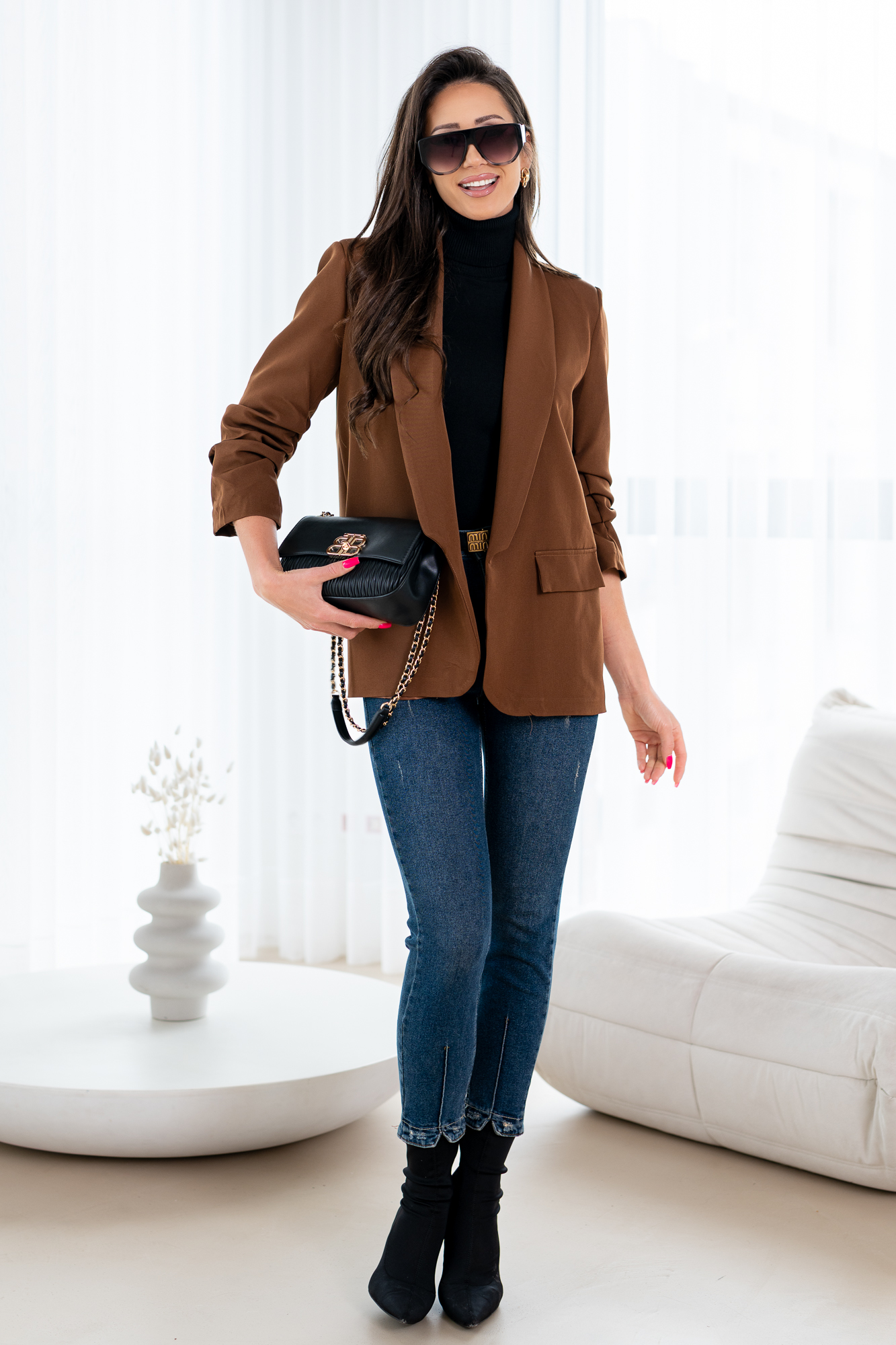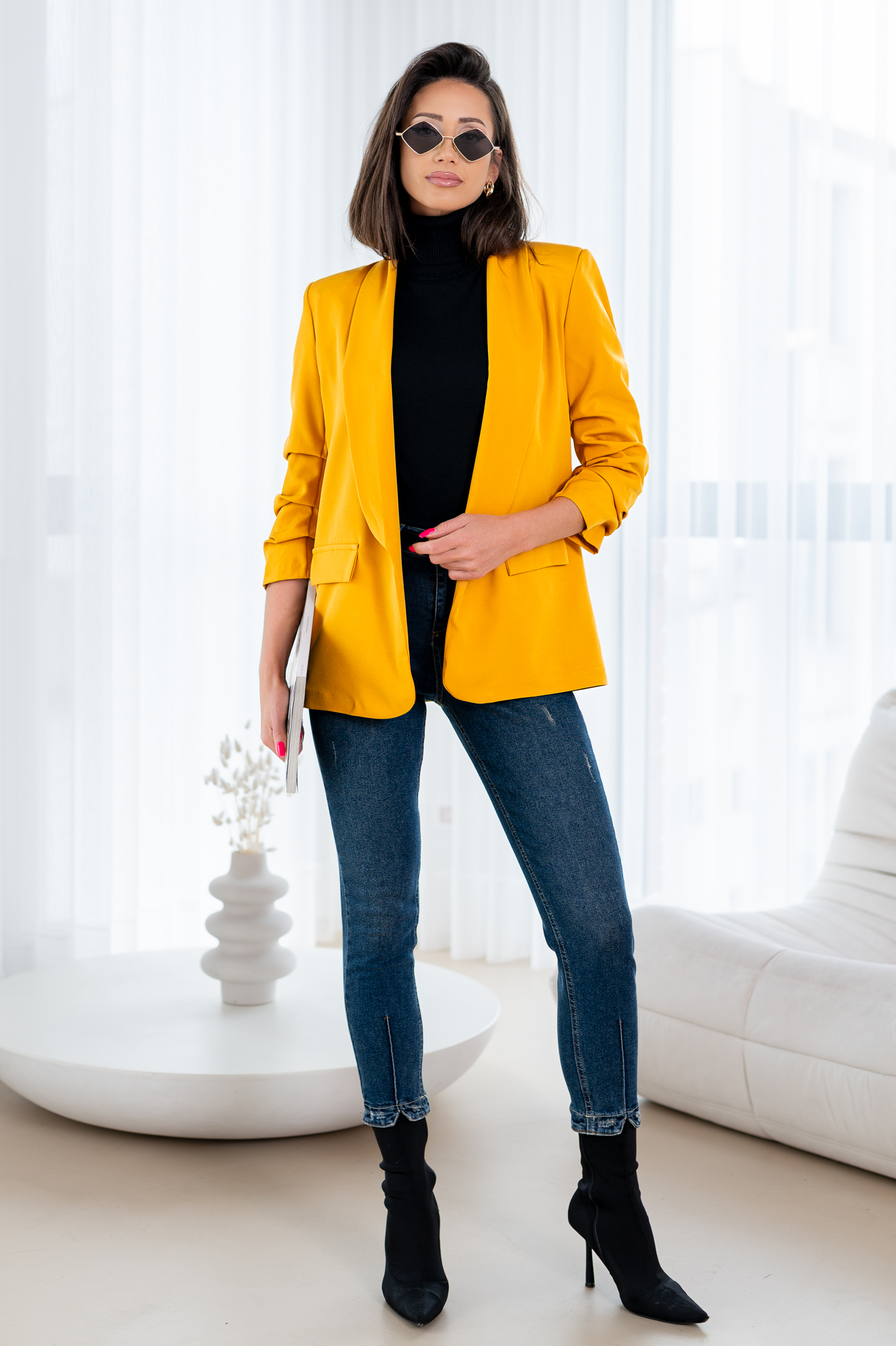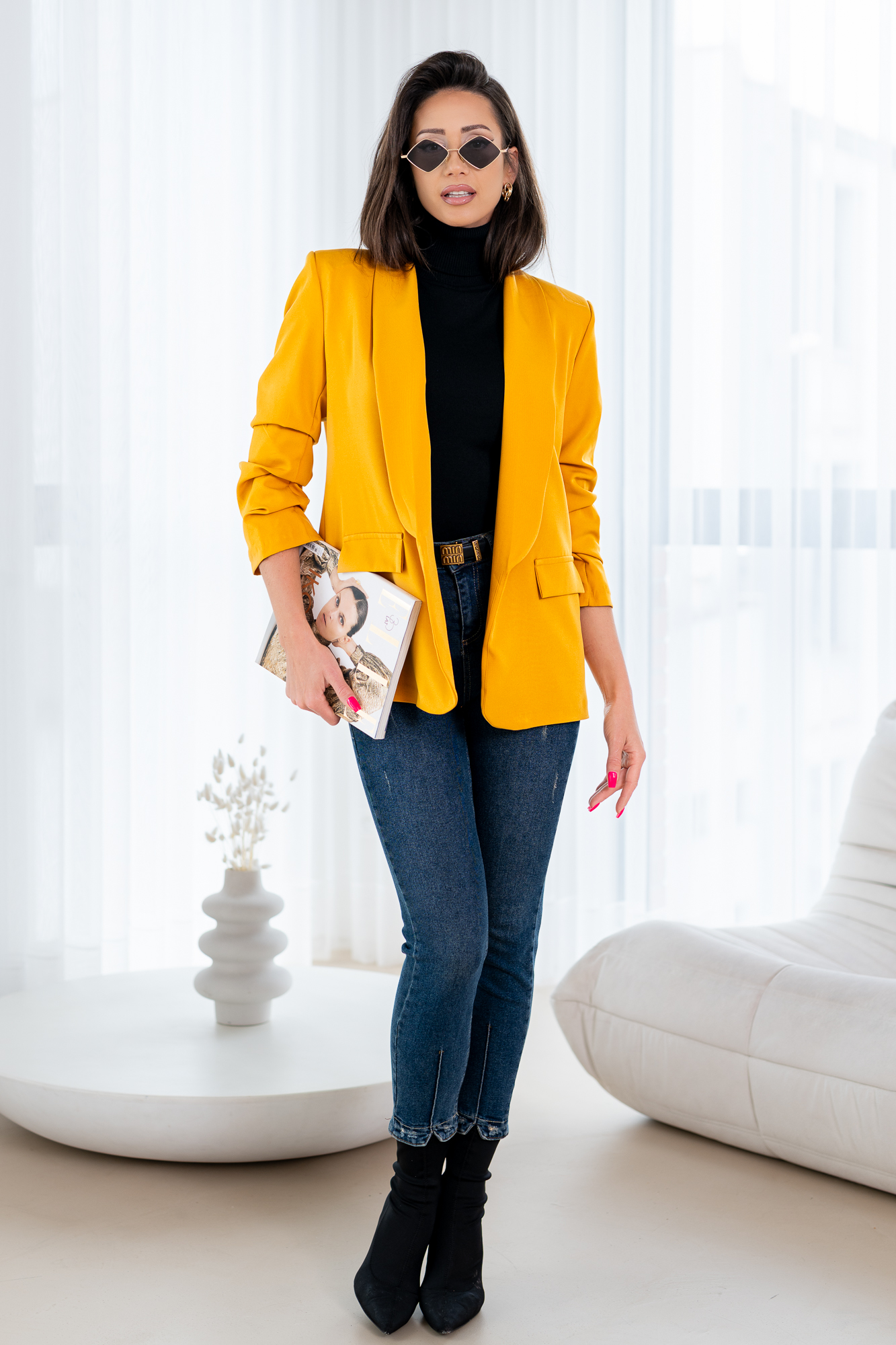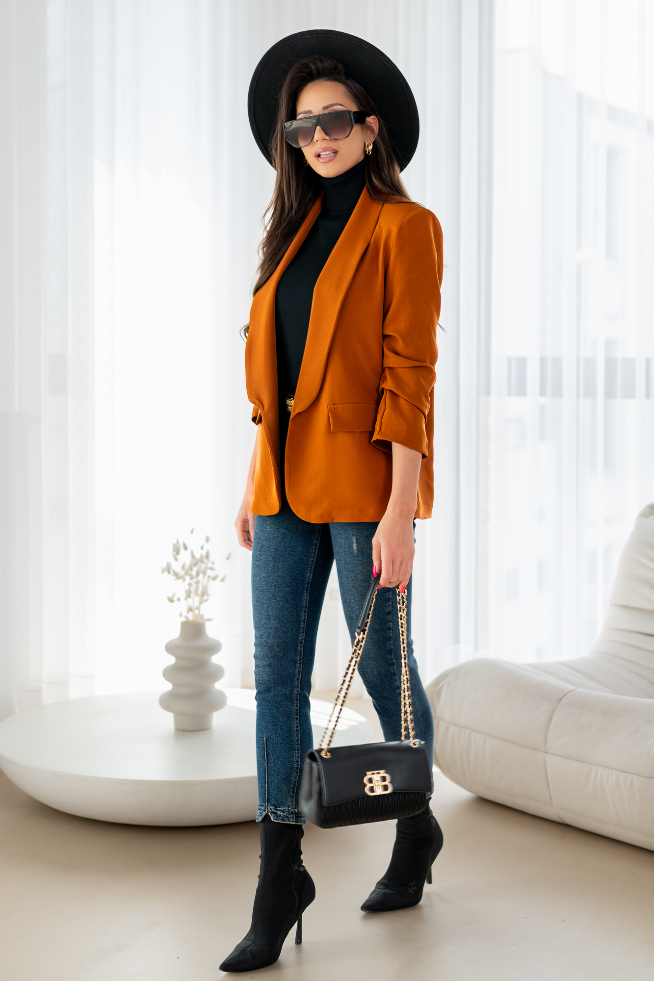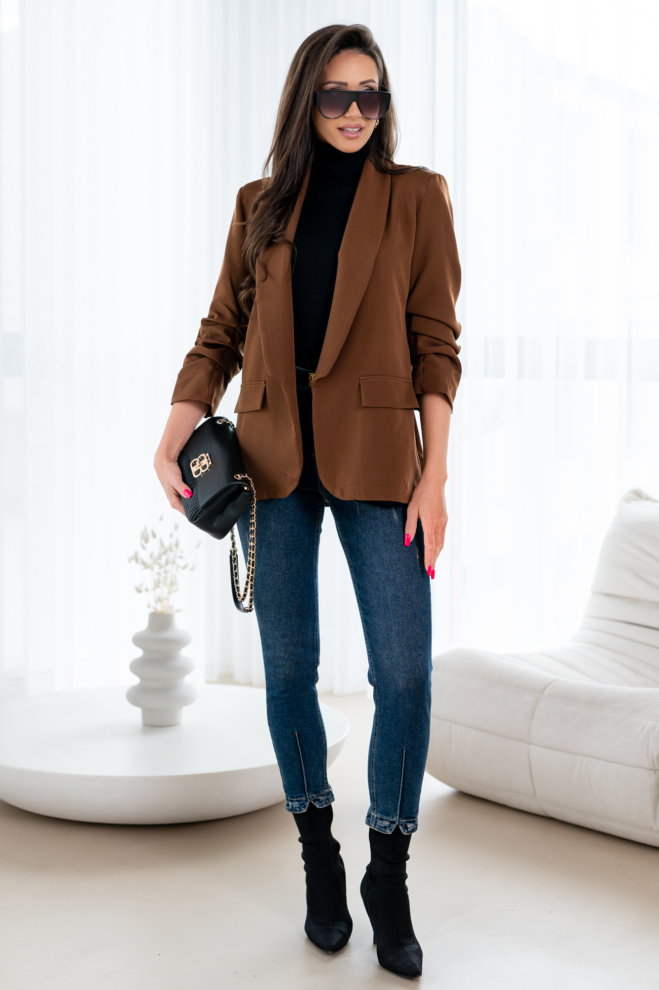 Elegancka marynarka, która idealnie łączy w sobie nowoczesny styl i klasyczną elegancję. Zapewnia nie tylko wyjątkowy wygląd, ale także komfort noszenia przez cały dzień. Ta stylowa marynarka wyróżnia się perfekcyjnym krojem, który podkreśla sylwetkę, dodając jej szyku i elegancji. Jest niezwykle uniwersalna – doskonale sprawdzi się zarówno w formalnych, jak i casualowych stylizacjach.