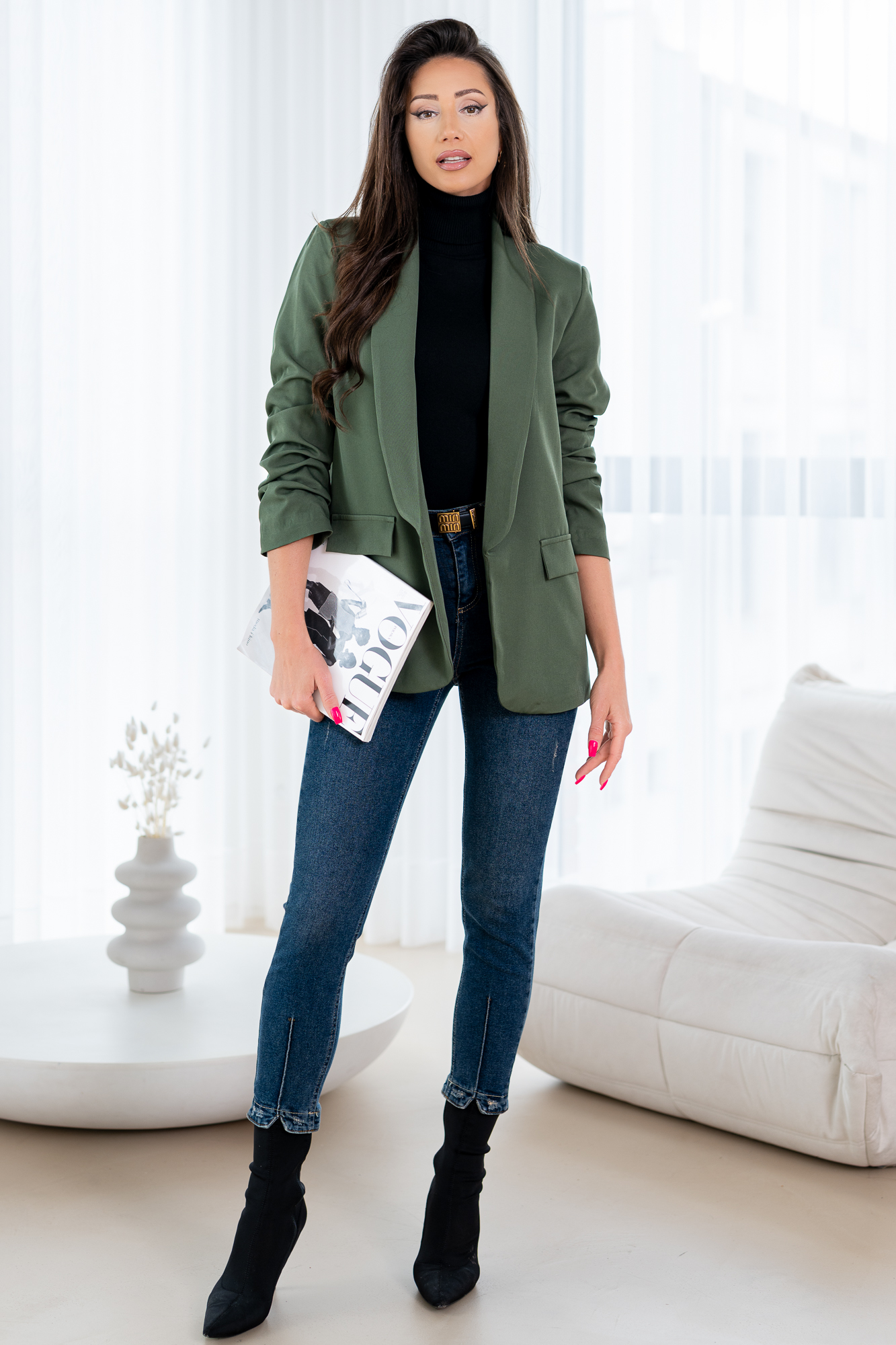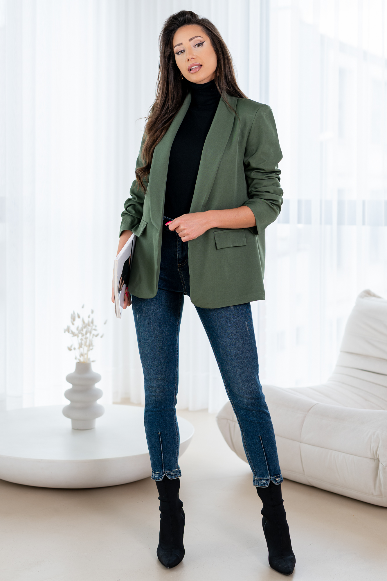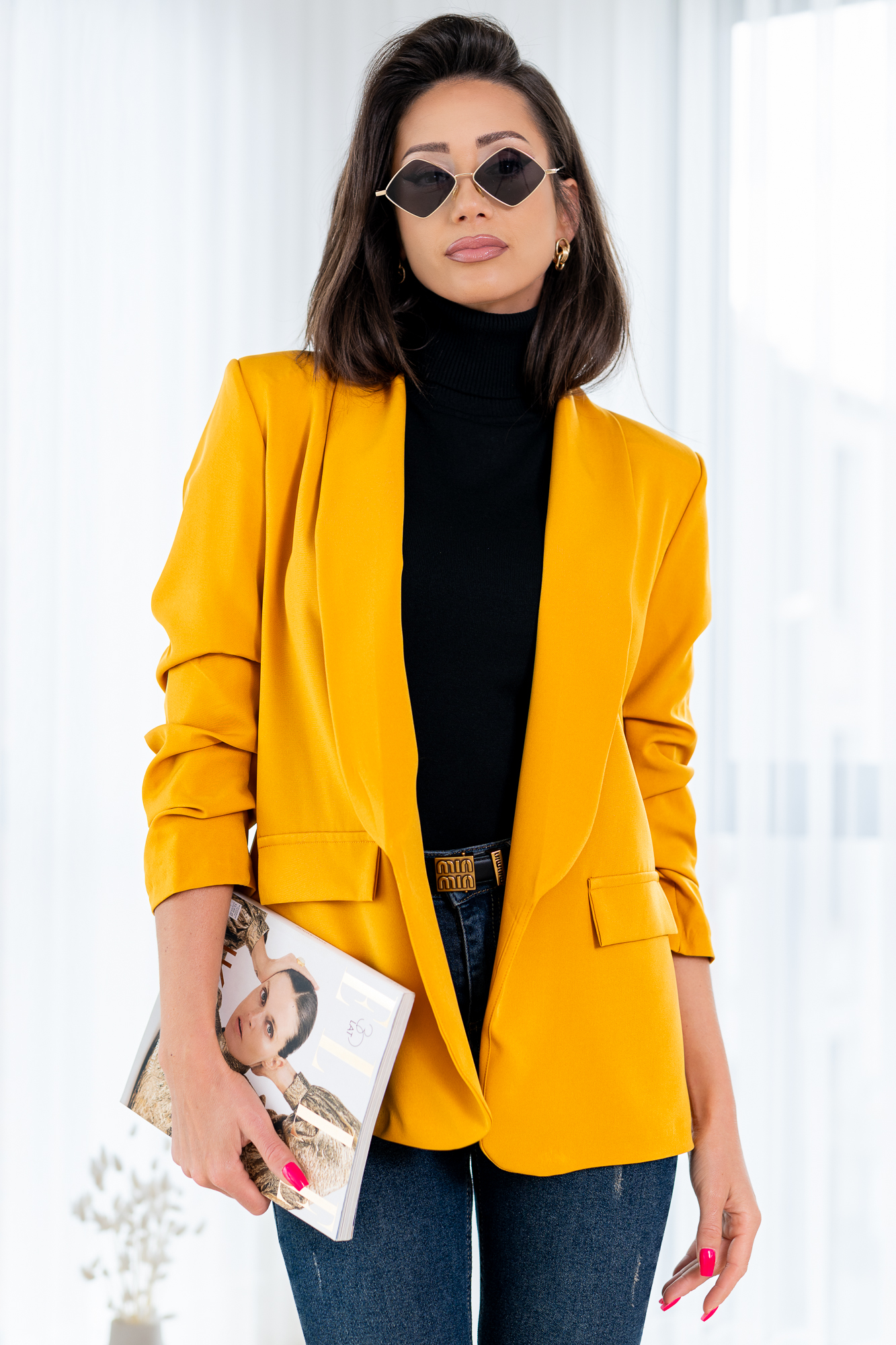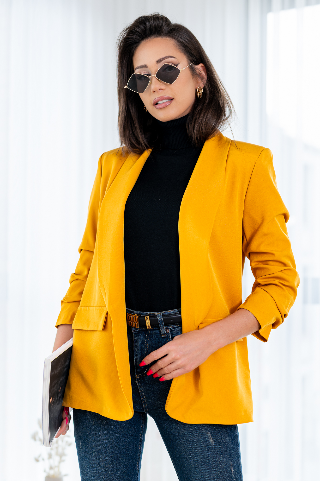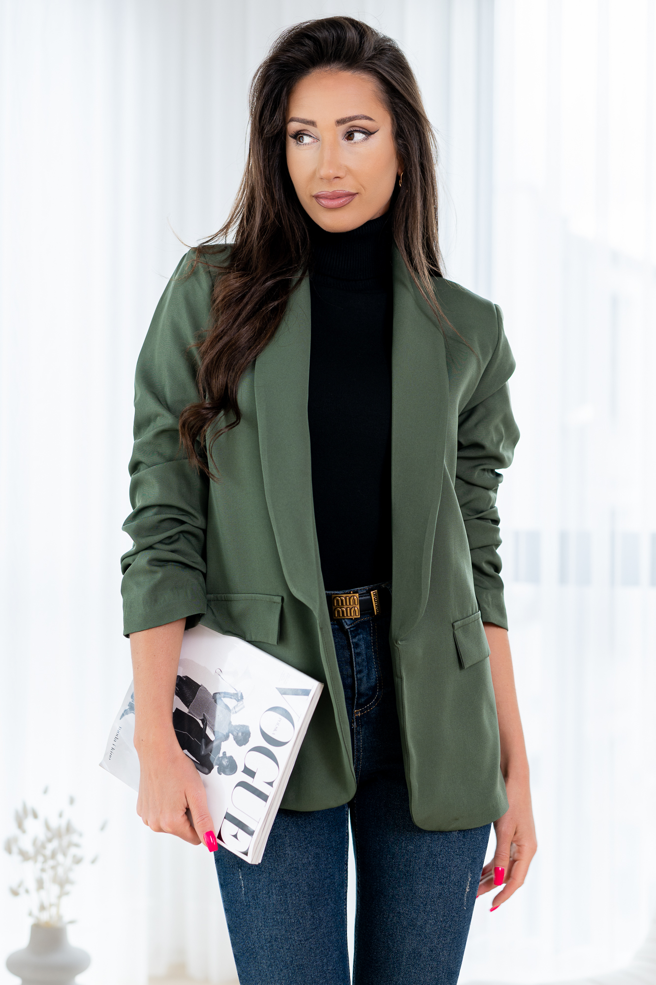 Elegancka marynarka, która idealnie łączy w sobie nowoczesny styl i klasyczną elegancję. Zapewnia nie tylko wyjątkowy wygląd, ale także komfort noszenia przez cały dzień. Ta stylowa marynarka wyróżnia się perfekcyjnym krojem, który podkreśla sylwetkę, dodając jej szyku i elegancji. Jest niezwykle uniwersalna – doskonale sprawdzi się zarówno w formalnych, jak i casualowych stylizacjach.