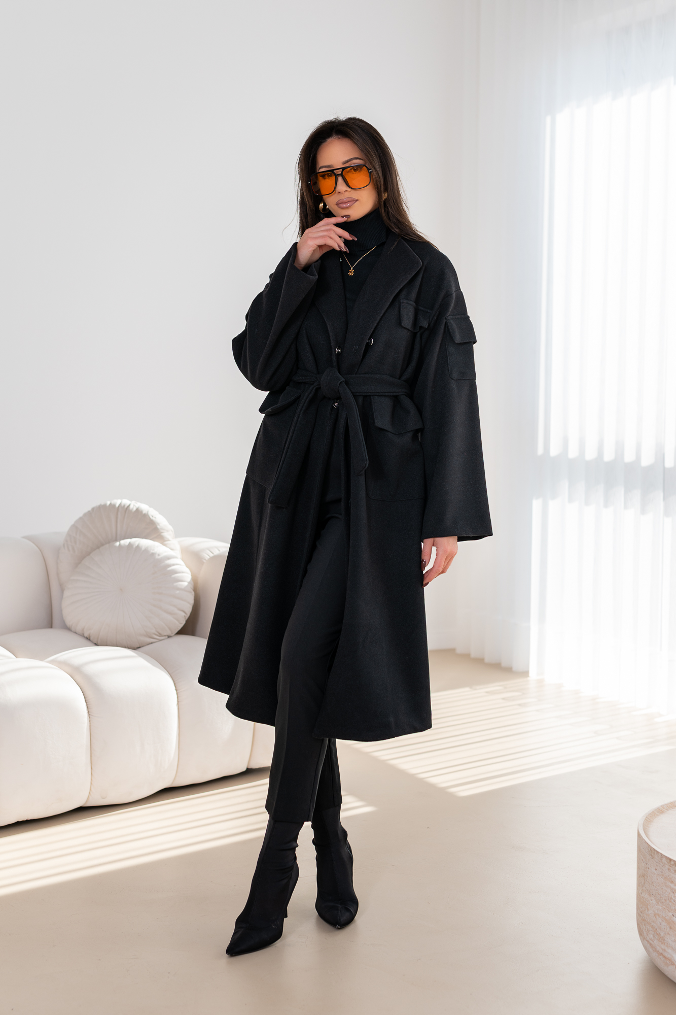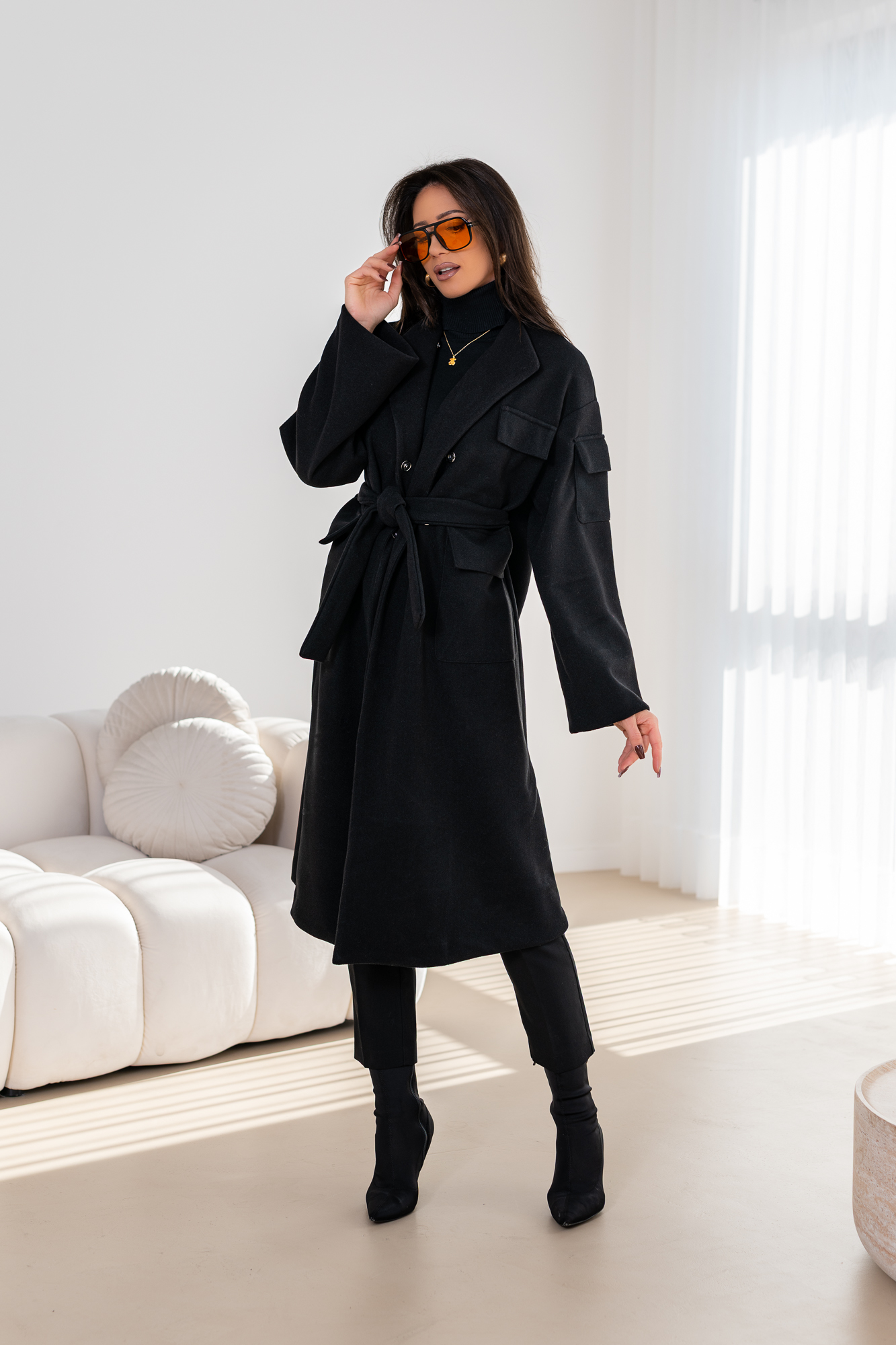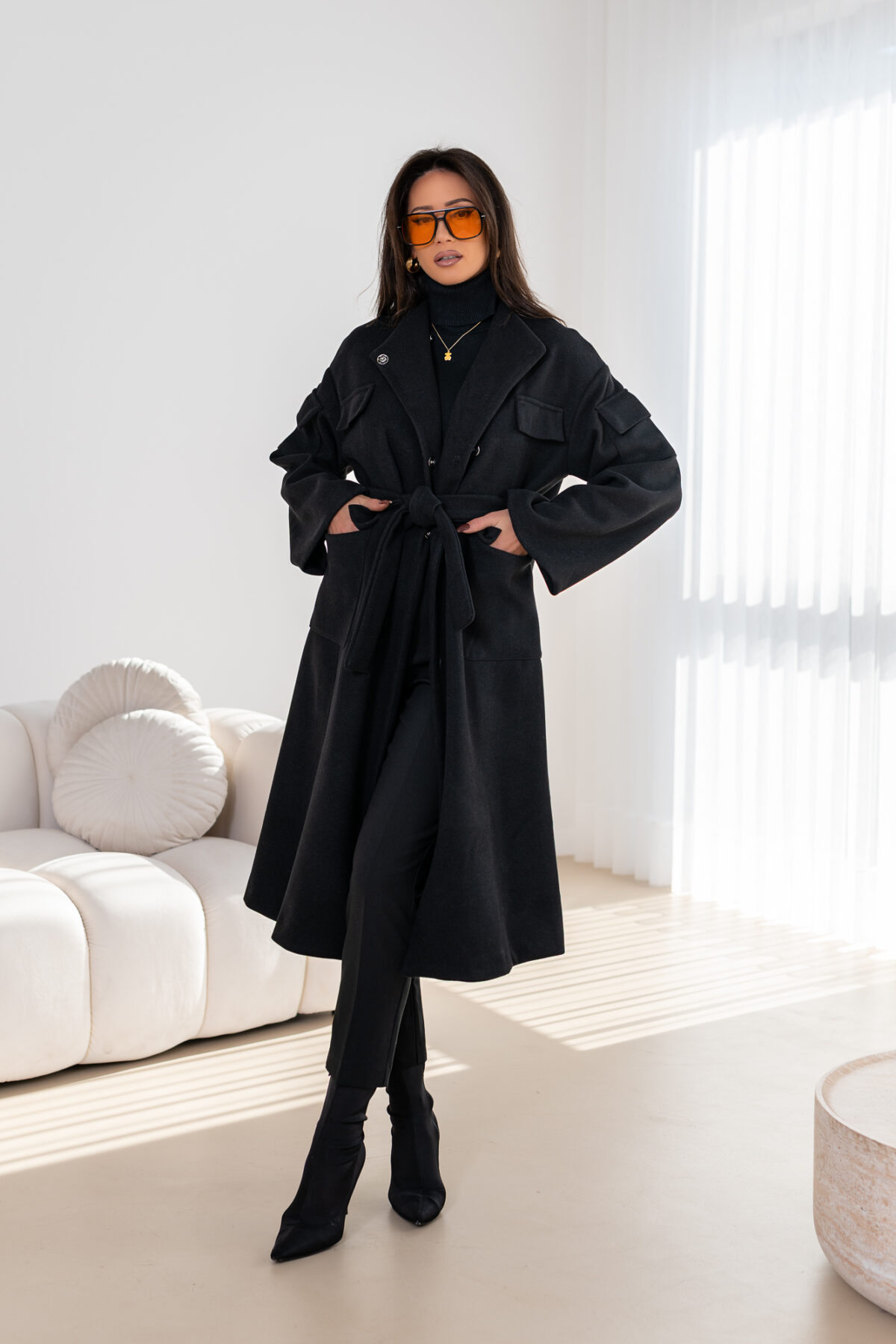 Przedsprzedaż START! dni!!! Klasyczny oversizowy krój płaszcza idealnego. Uszyty został z materiału przypominającego flausz, dlatego można być pewnym, że będzie idealny na chłodne dni. Po bokach posiada kieszenie. Oversizowy krój pozwoli założyć go nawet na gruby sweter z golfem, więc chłodne dni staną się bardziej przyjemne. Płaszcz dobrze prezentuje się w eleganckich stylizacjach z sukienkami i botkami jak i ze snakersami czy traperami. Zostanie Twoim numerem jeden w garderobie. Klasyka w połączeniu z odrobiną finezji. Jakość wykonania i komfort noszenia gwarantuje bardzo dobra i znana marka LUMINA!