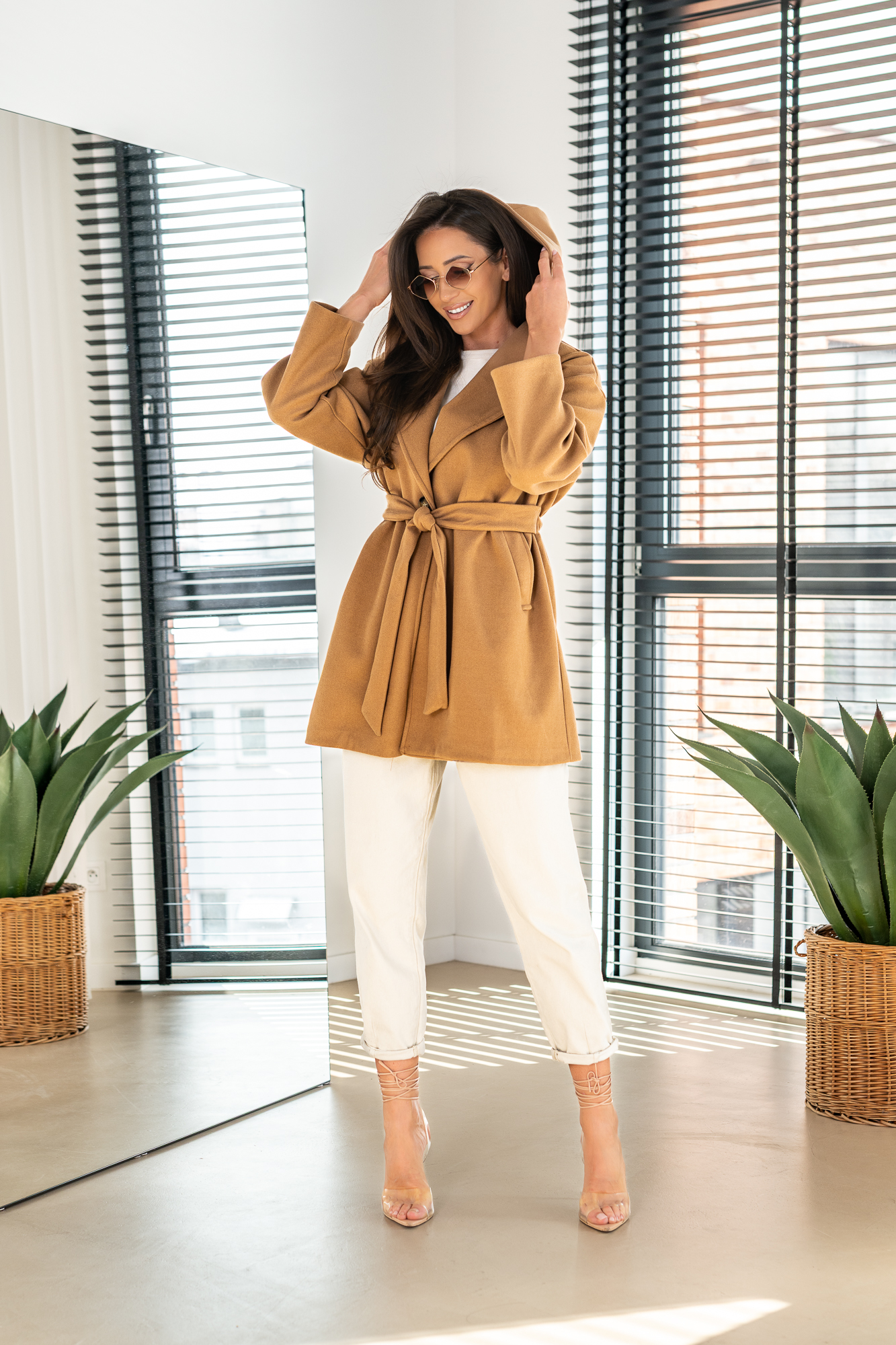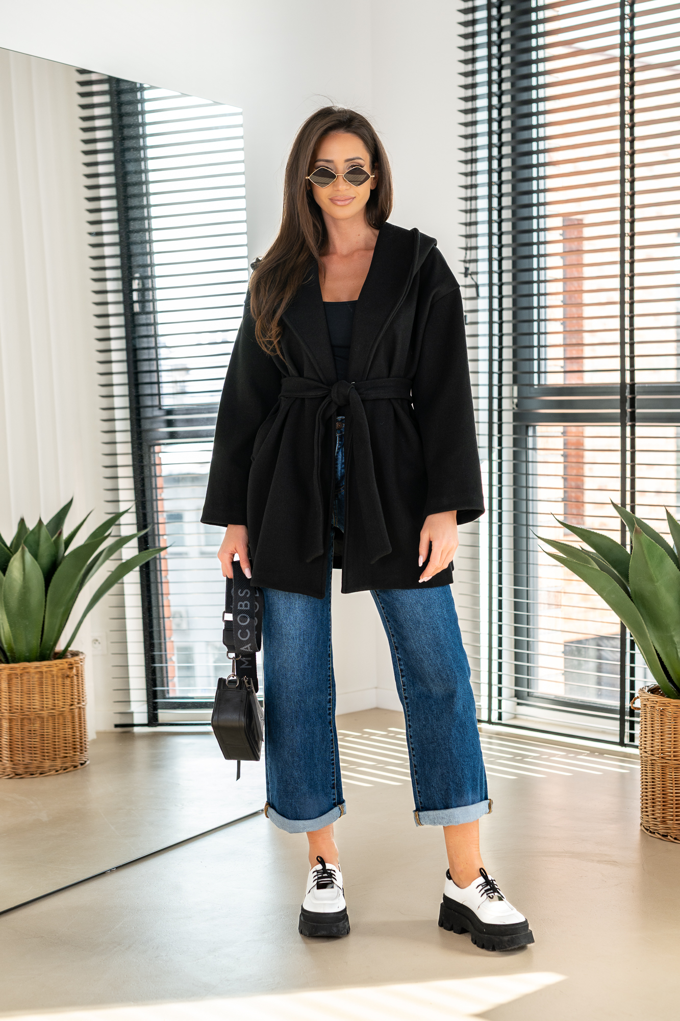 Elegancki, fantastyczny płaszcz z najnowszej Włoskiej kolekcji. Model o średniej długości z wiązaniem w talii i zapinaniem na guzik. Posiada dwie duże kieszenie oraz kaptur!