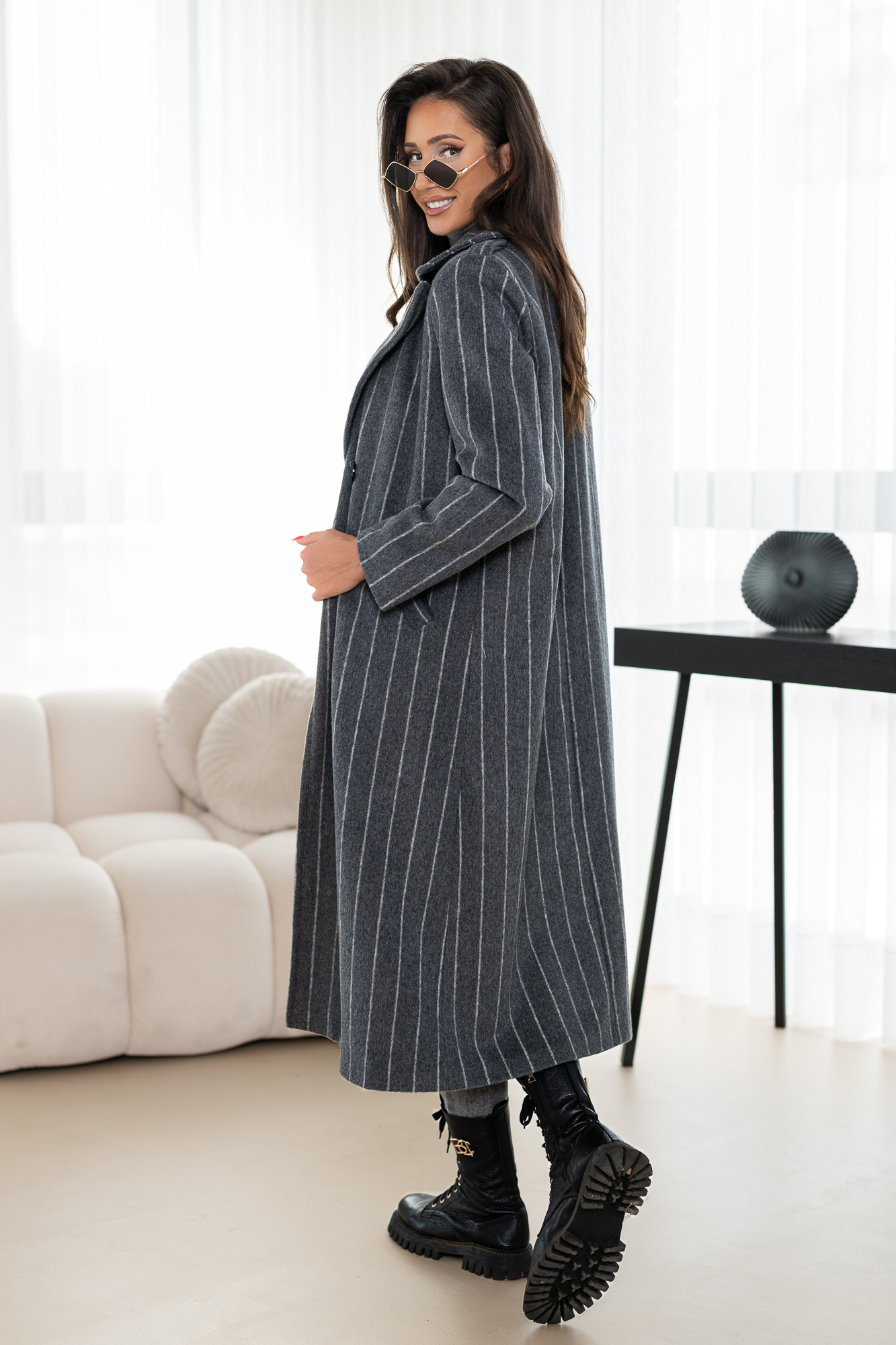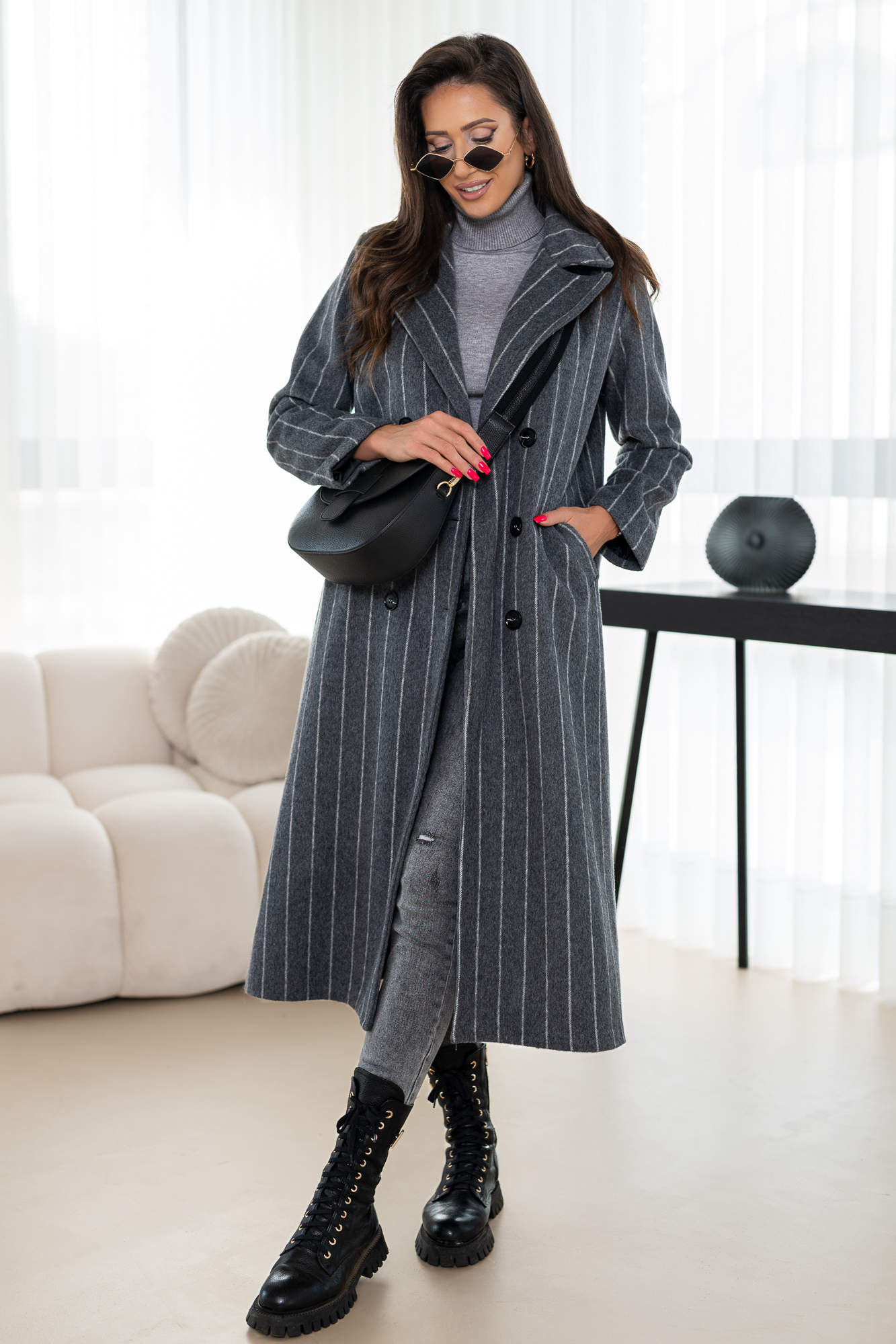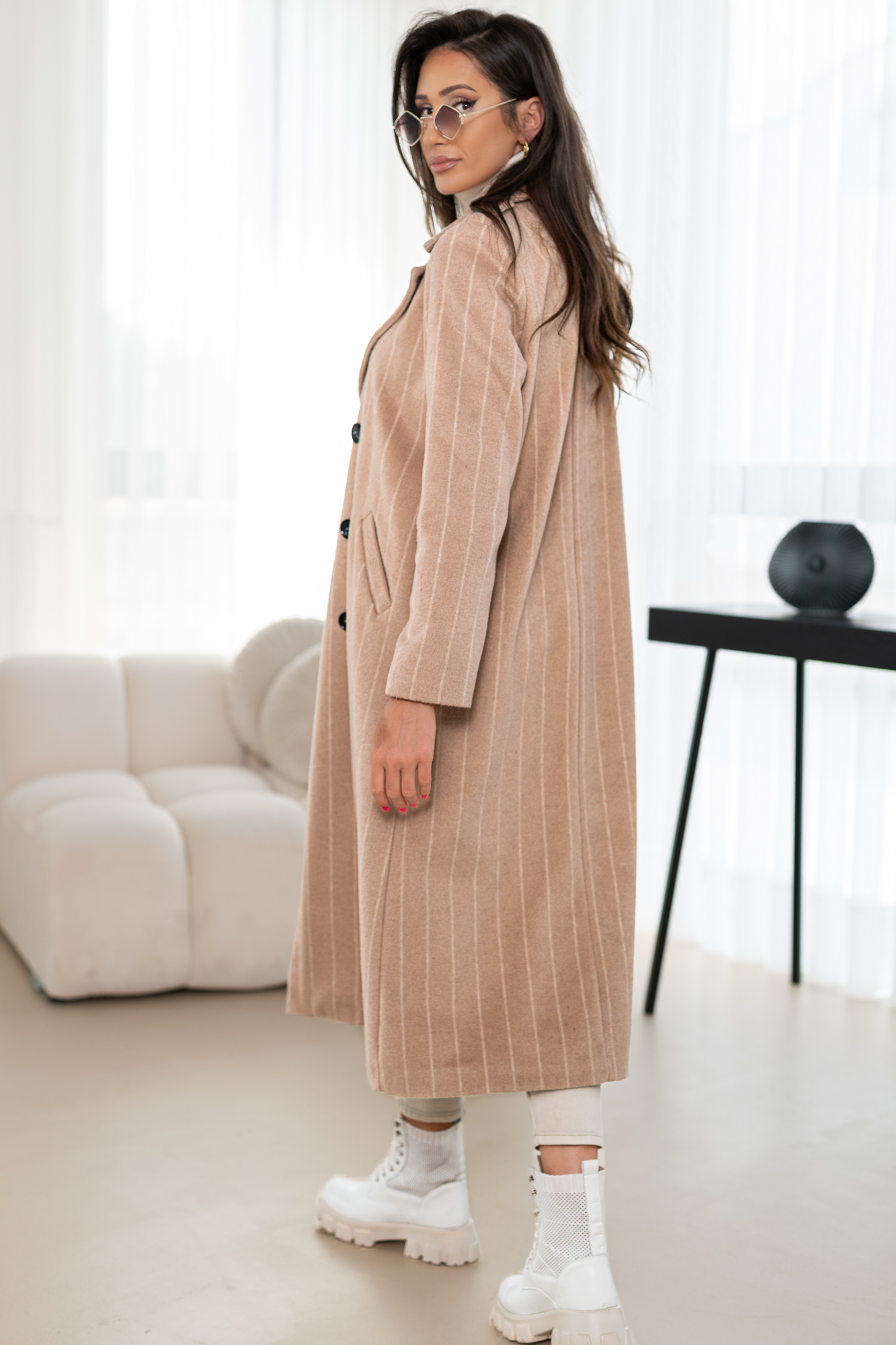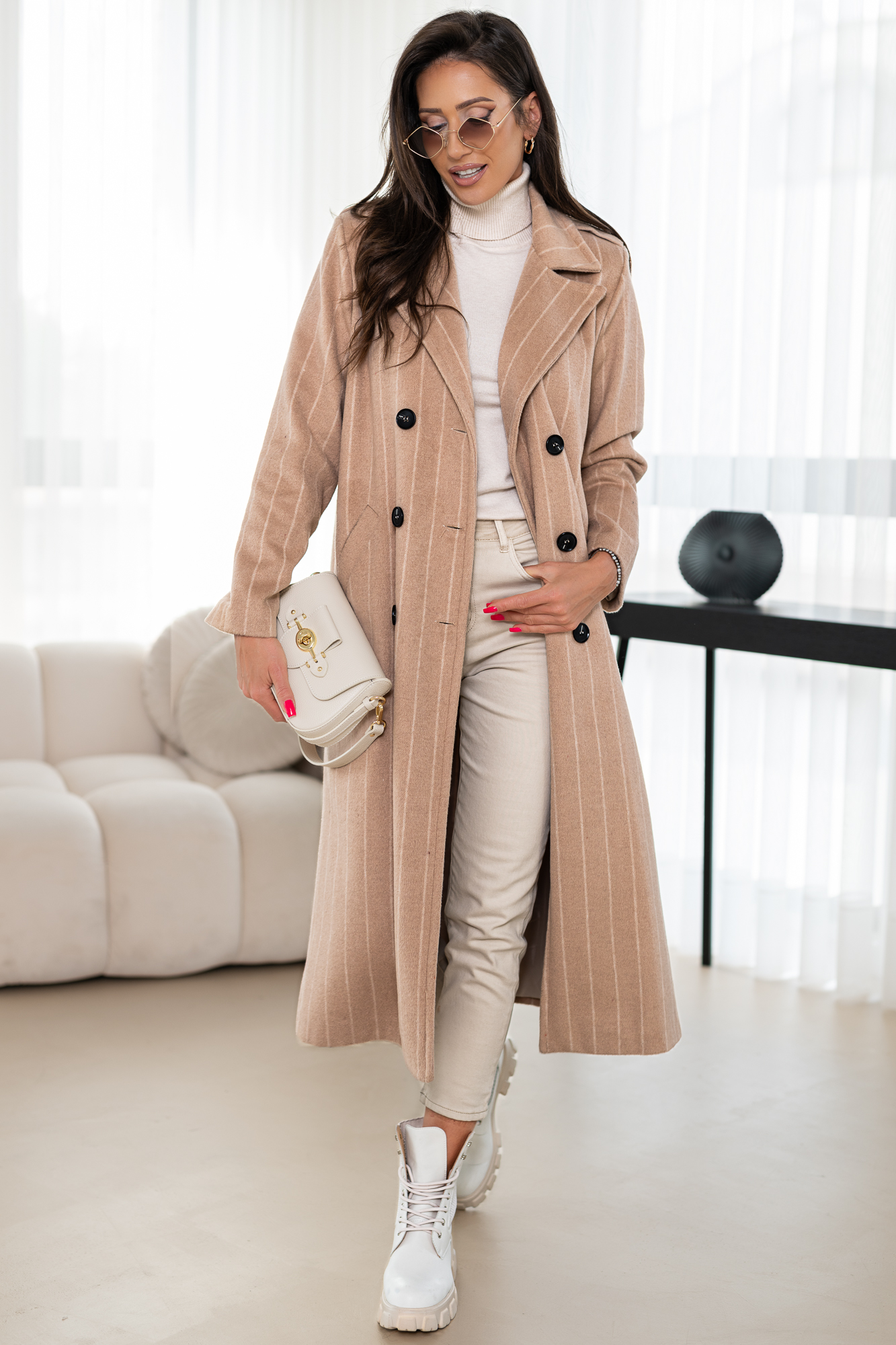 Długi płaszcz  z domieszką wełny zapinany na guziki. Model  – cudownie otulający ciało w zimne nawet mroźne dni! Płacz w całości na podszewce.