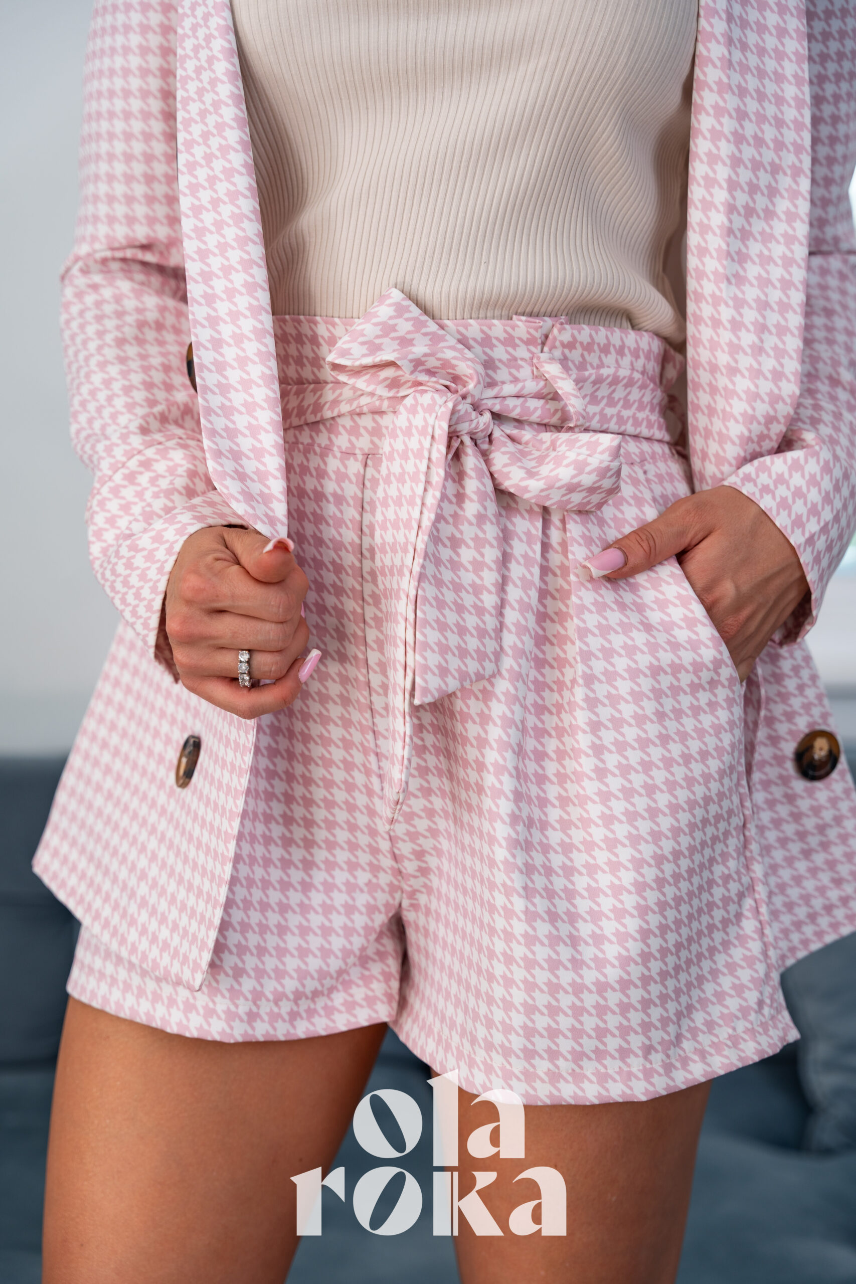 Szorty z wiązanym paskiem podkreślają talię i dodają kobiecego uroku.