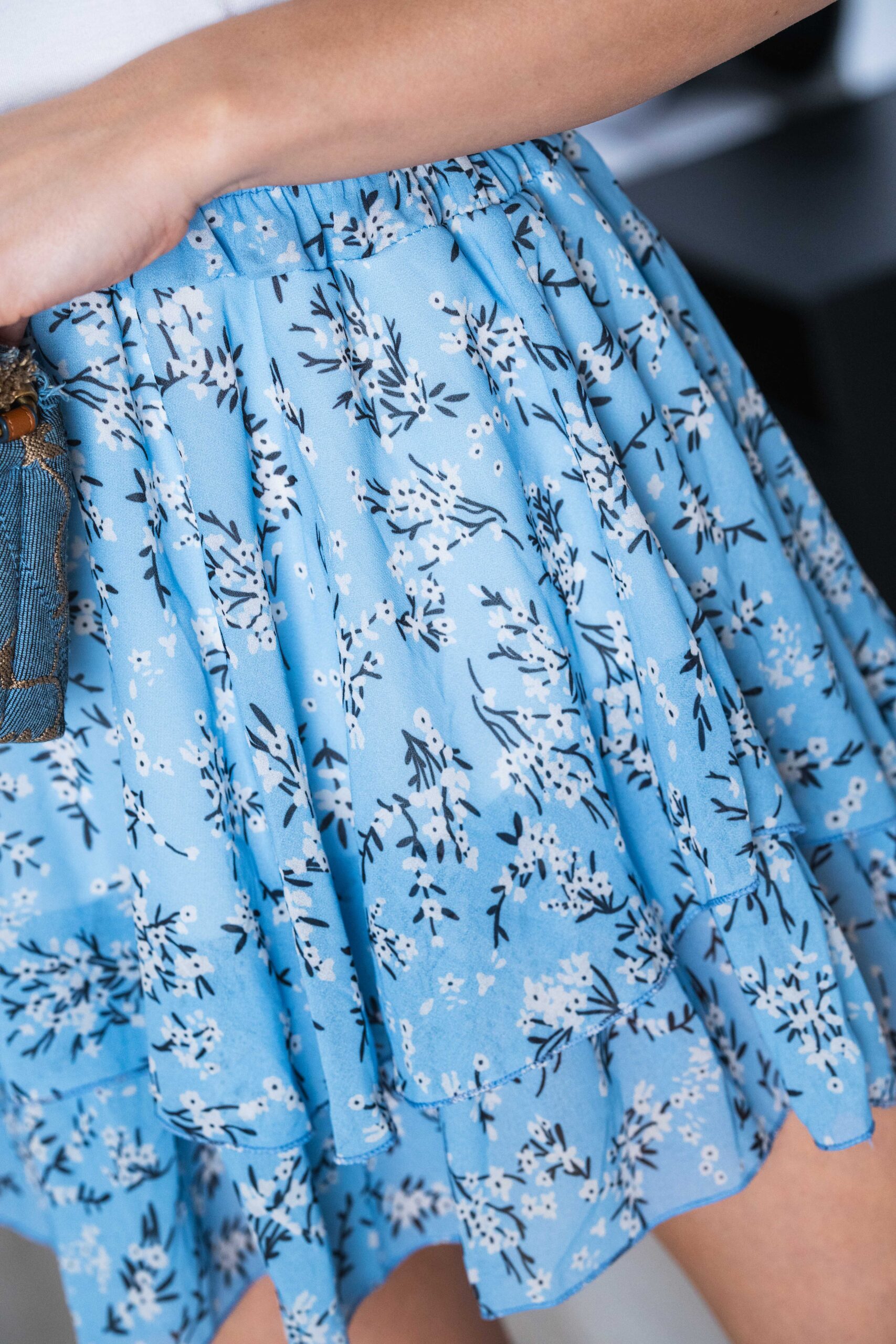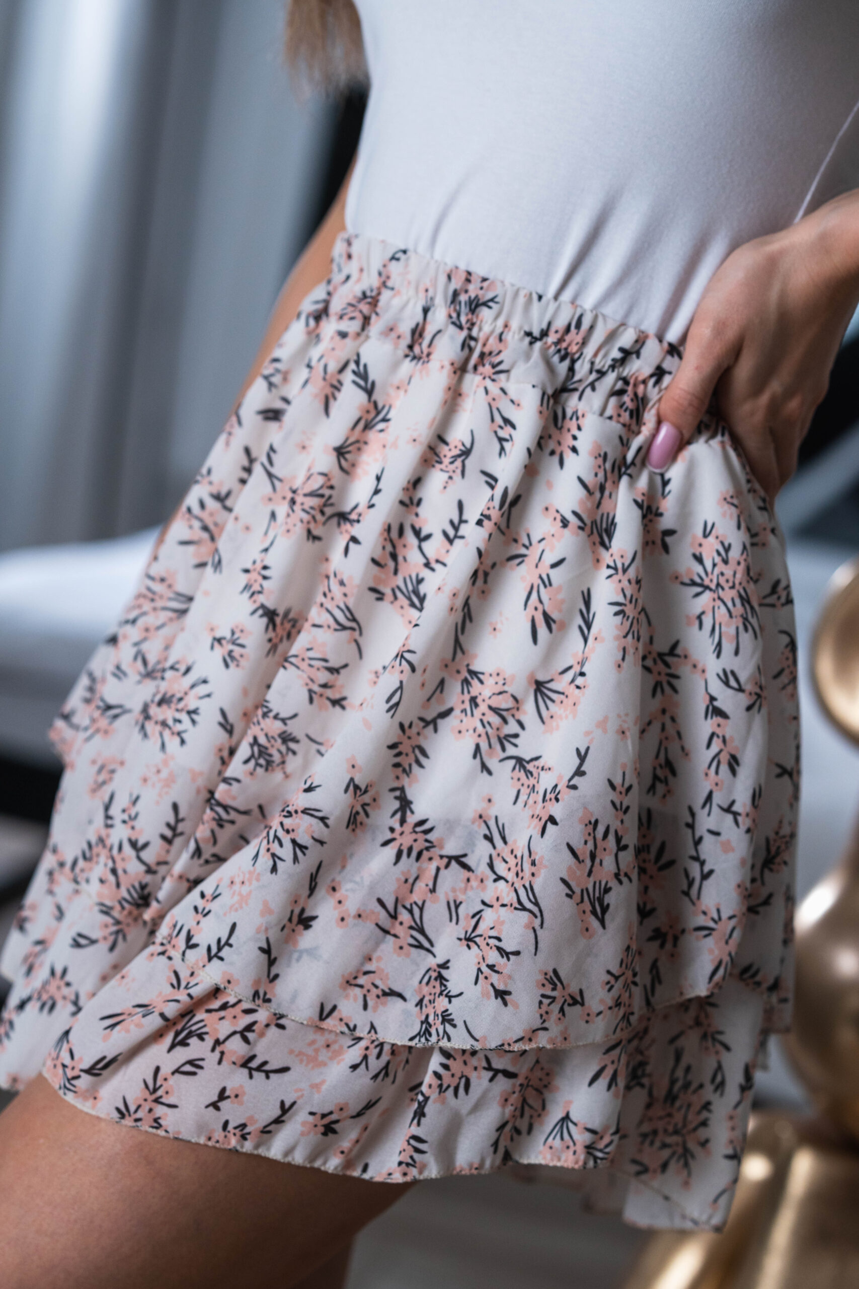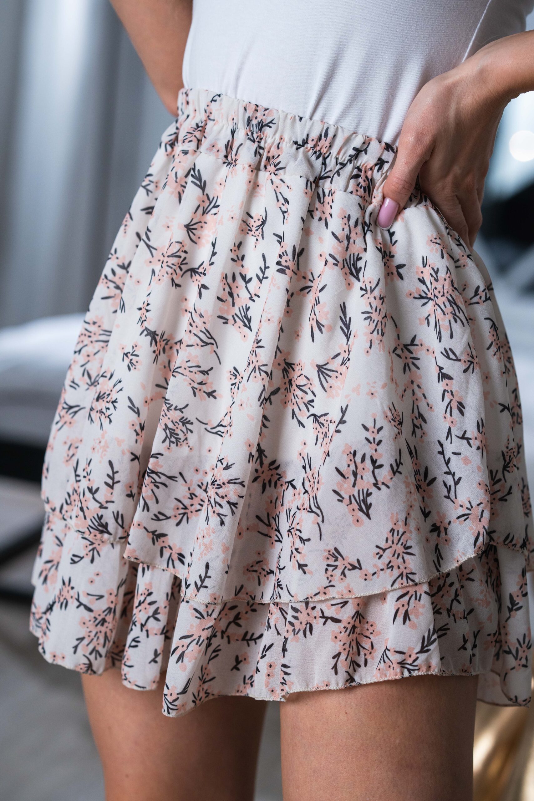 Spódniczka Alwii – jedna falbana i delikatny print.