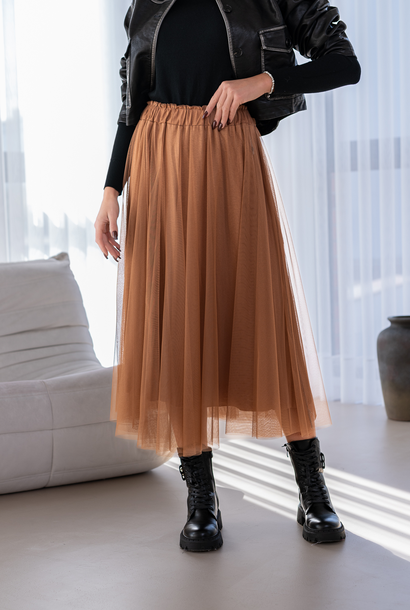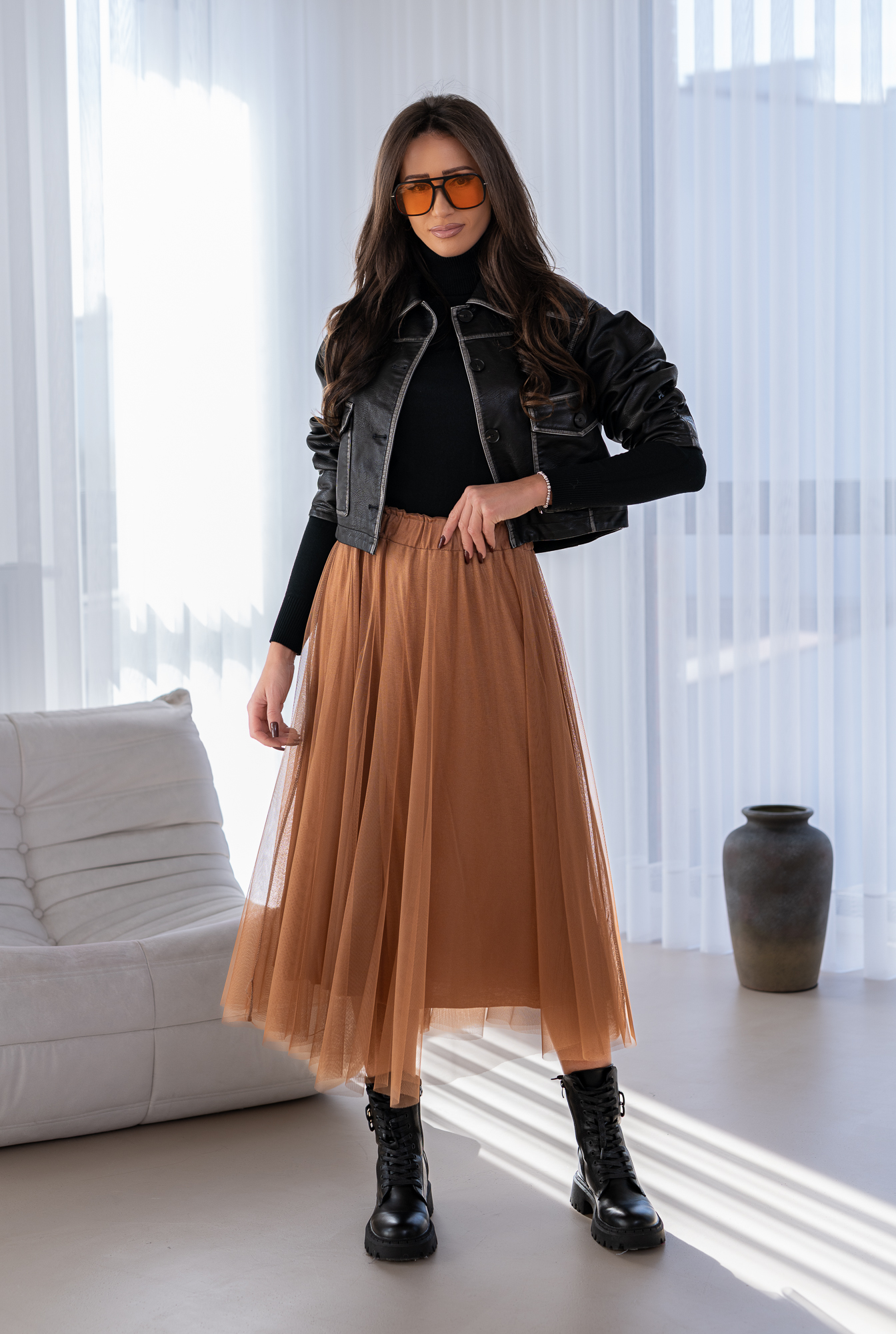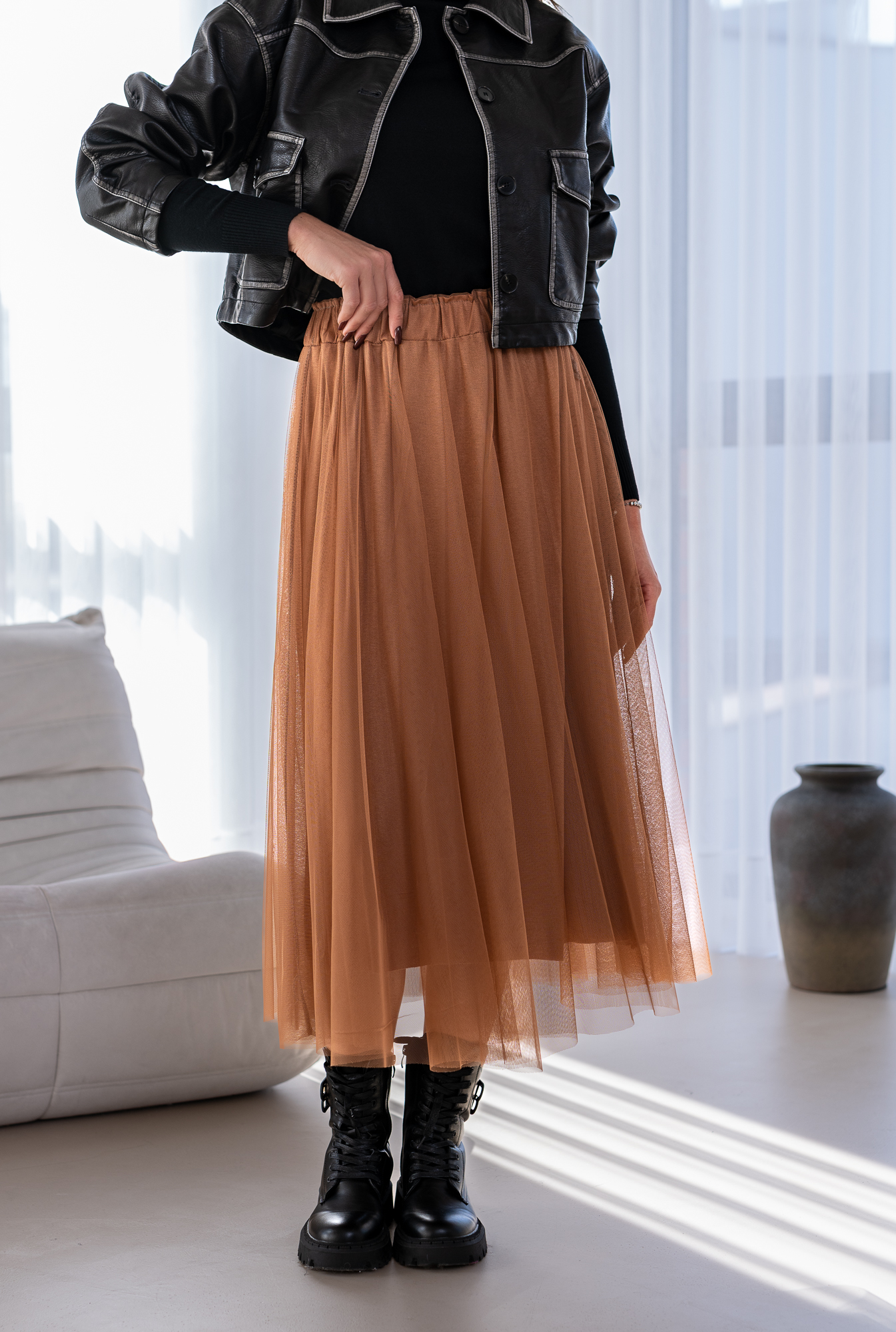 Spódnica tiulowa midi z szeroką gumką w pasie dla wygody noszenia. Uszyta jest z miękkiego tiulu, abyś czuła się w niej bardzo komfortowo, wygodnie i kobieco. Będzie idealnie pasowała do wielu stylizacji zarówno do szpilek jaki do ciężkich traperów – model spódnicy która idealnie sprawdzi się w każdym sezonie. Zarówno na wielkie wyjście jak i na spacer do parku.
