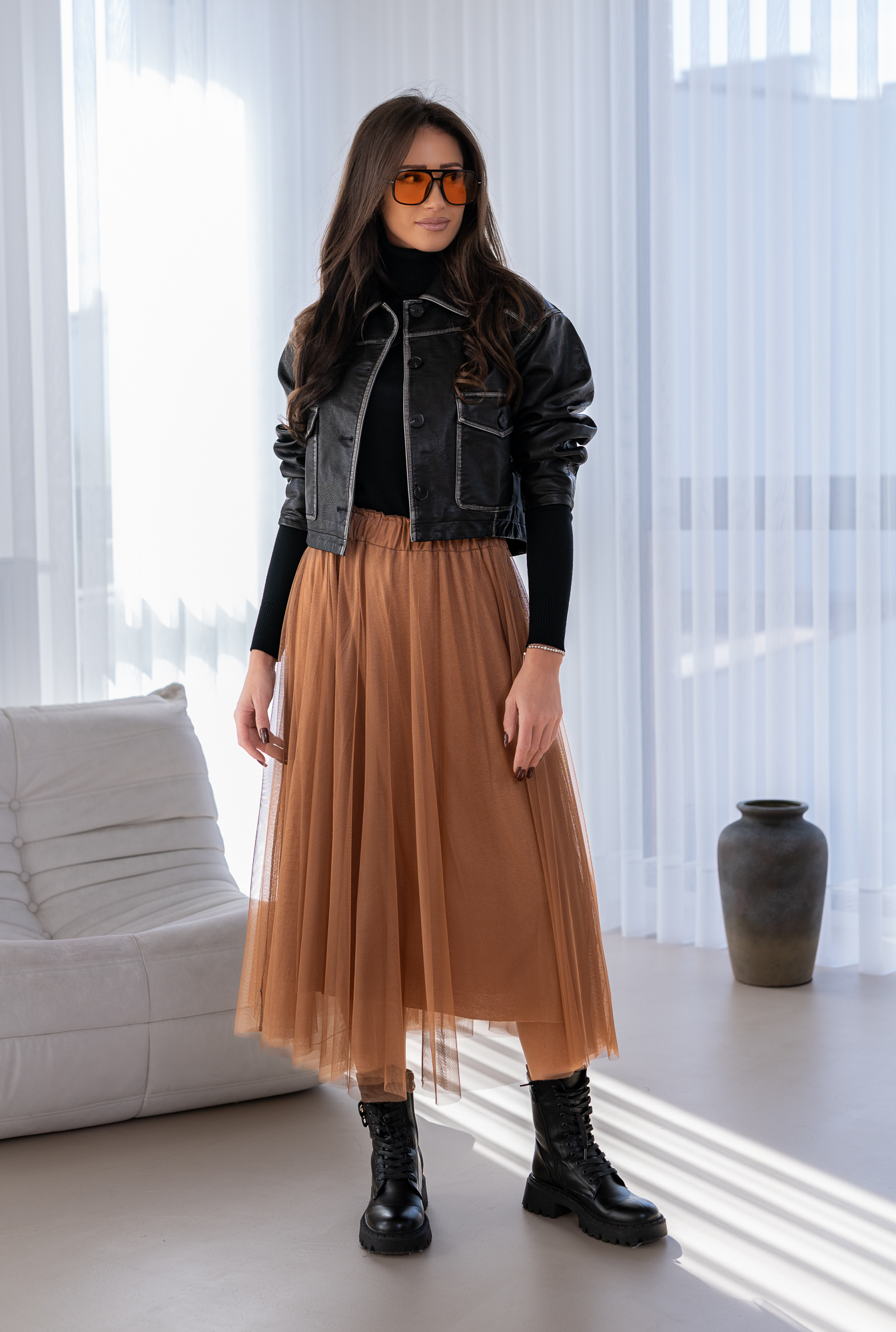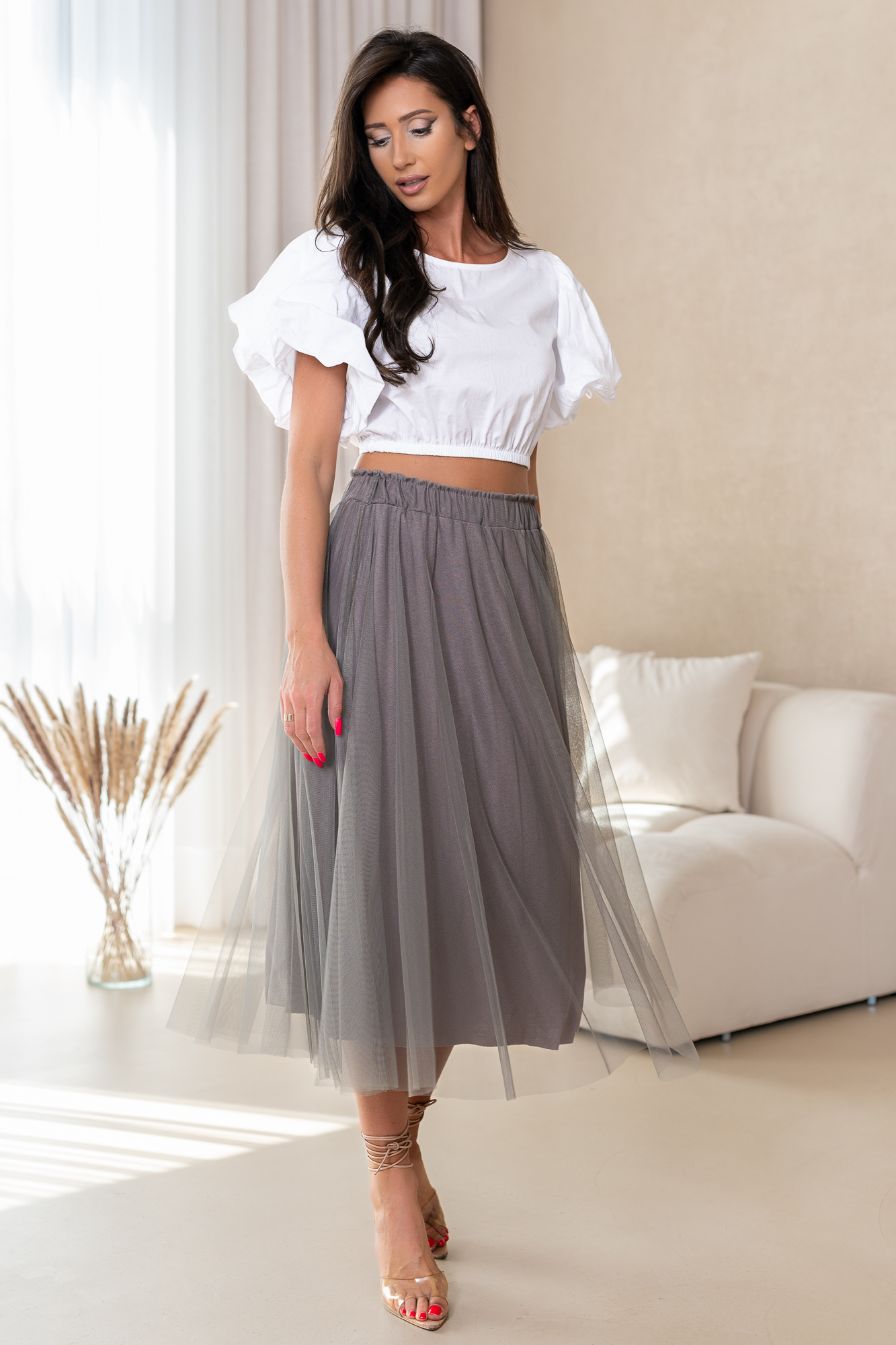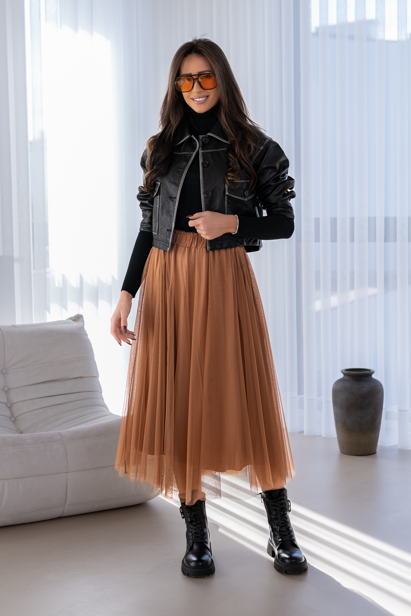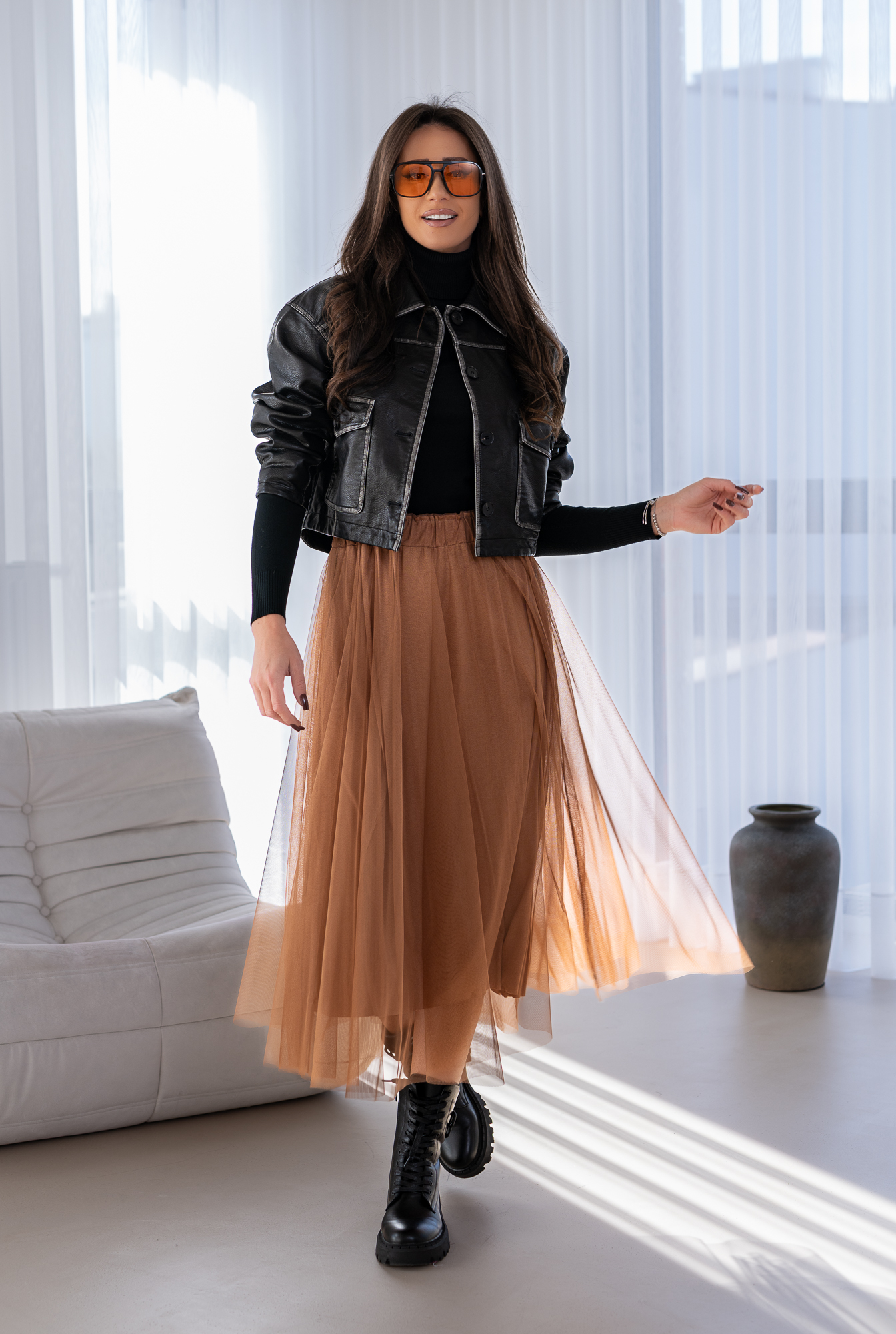 Spódnica tiulowa midi z szeroką gumką w pasie dla wygody noszenia. Uszyta jest z miękkiego tiulu, abyś czuła się w niej bardzo komfortowo, wygodnie i kobieco. Będzie idealnie pasowała do wielu stylizacji zarówno do szpilek jaki do ciężkich traperów – model spódnicy która idealnie sprawdzi się w każdym sezonie. Zarówno na wielkie wyjście jak i na spacer do parku.