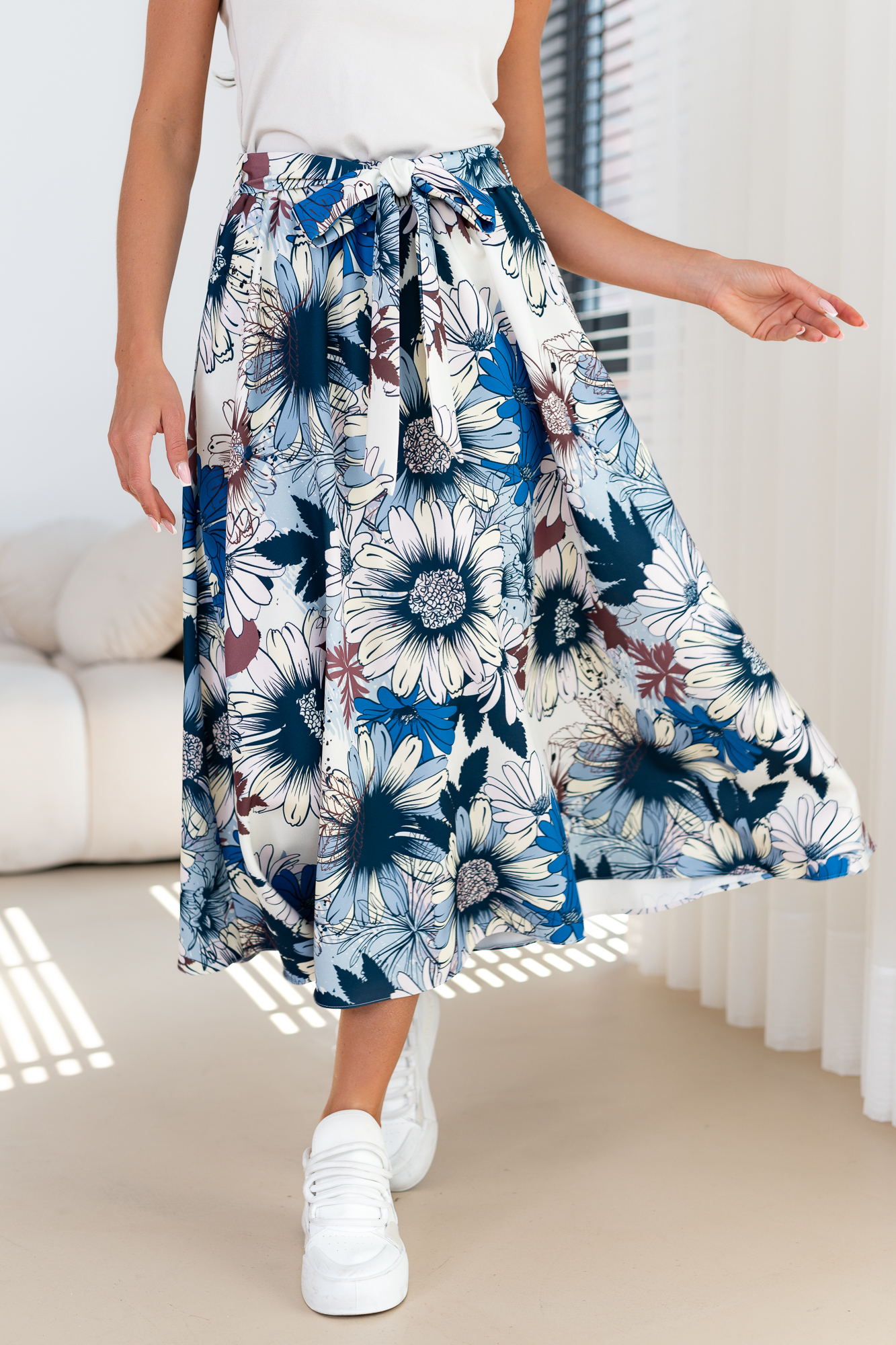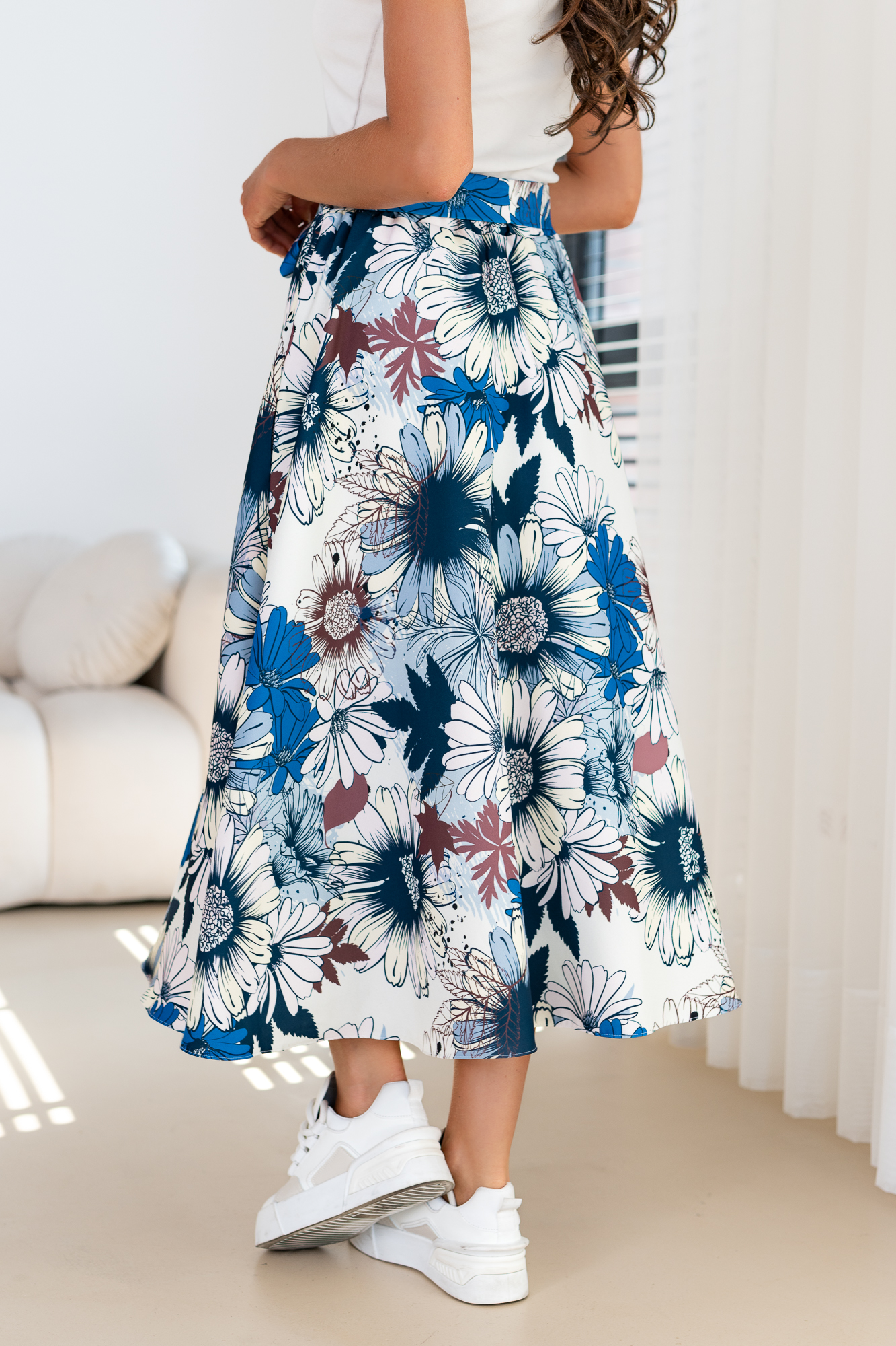 Spódnica z ozdobnym printem o kroju trapezu. Posiada gumkę z tyłu spódnicy co ułatwia jej dostosowanie się do sylwetki.