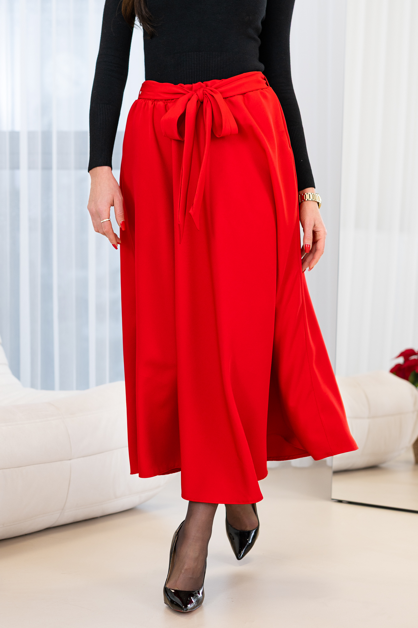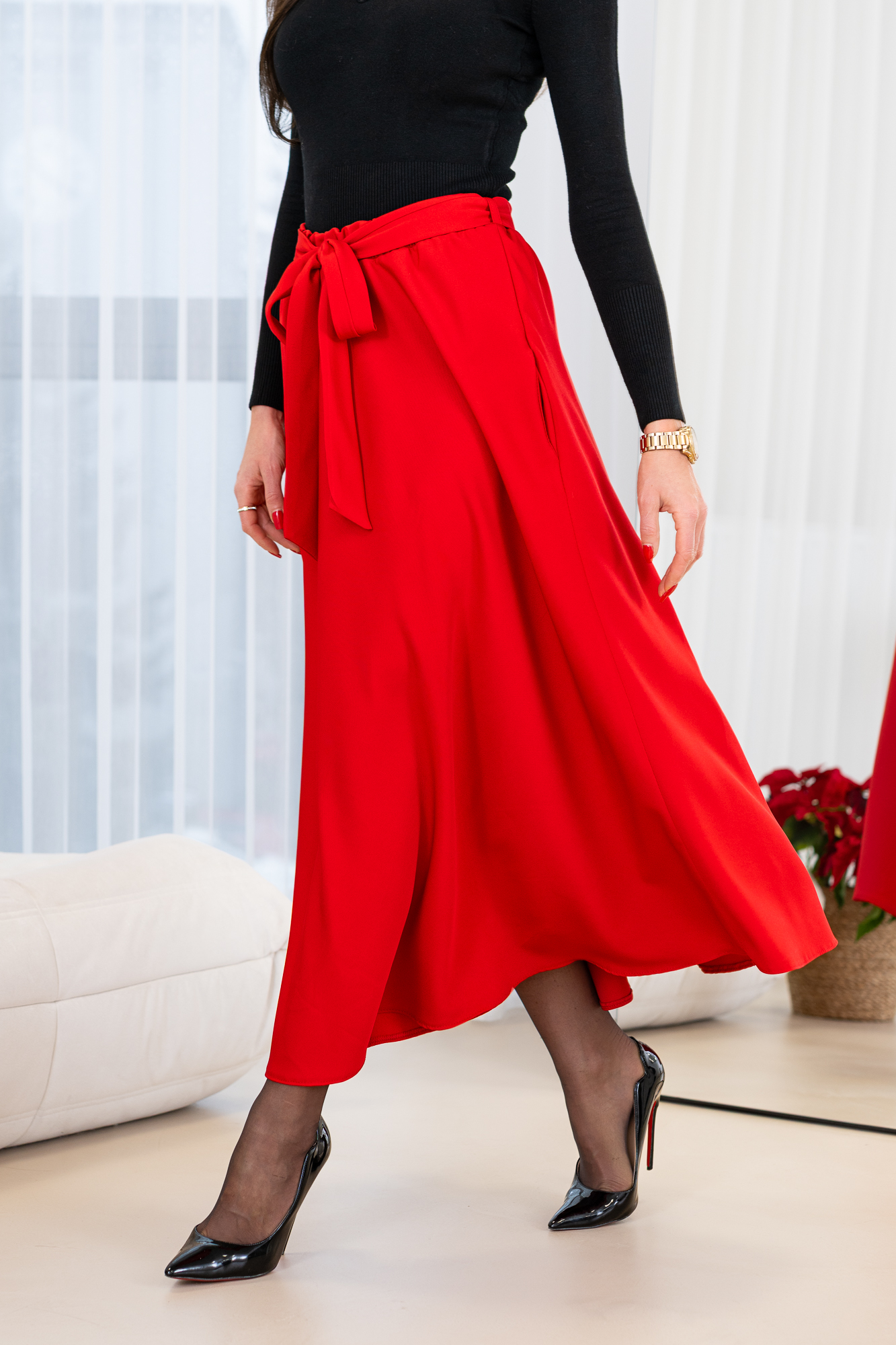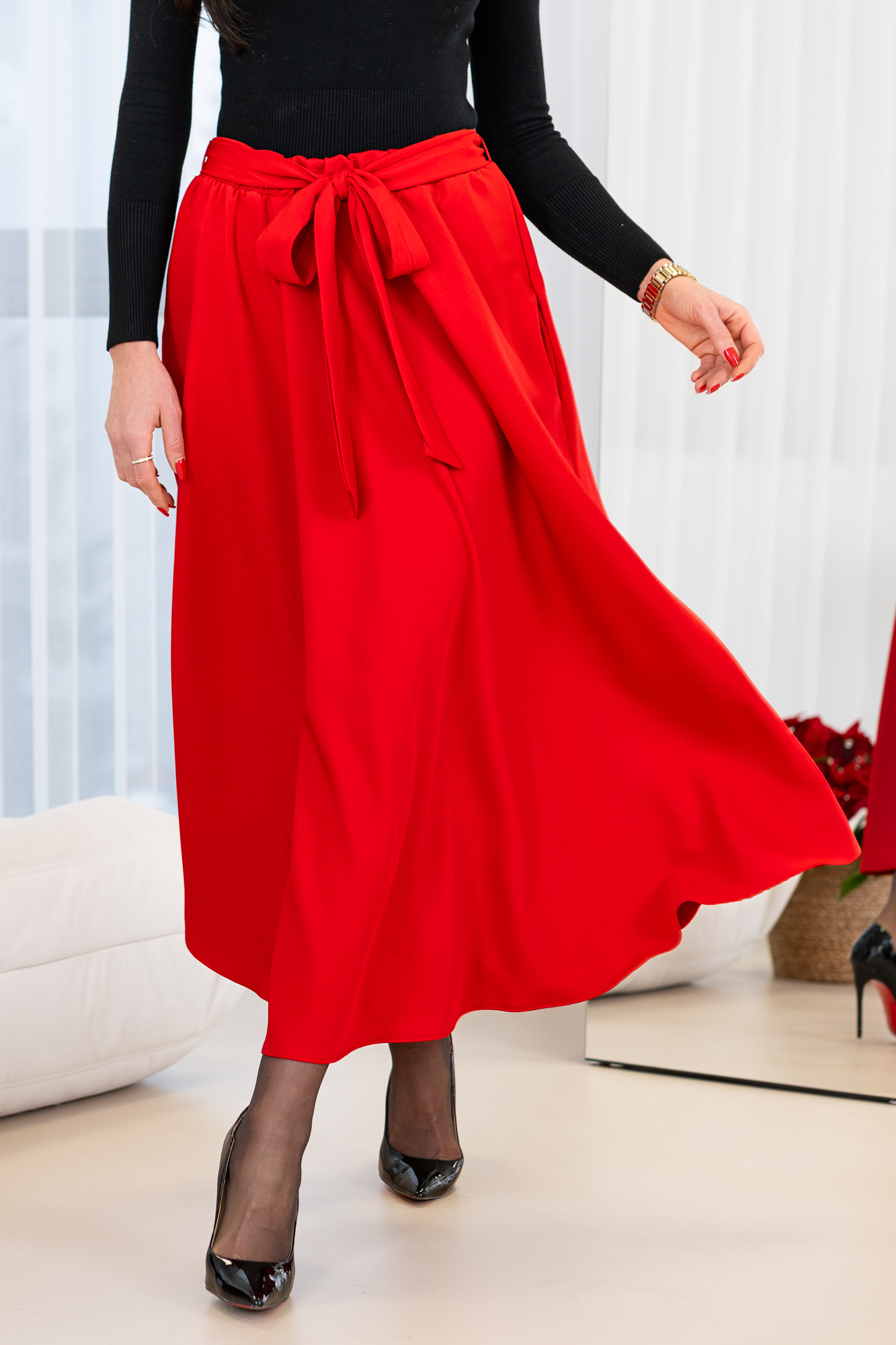 Spódnica jakiej nie będzie miał nikt – gładka, idealna długość i ten opływający, falujący look. Spódnica ma krój trapezu. Posiada gumkę w pasie co ułatwia jej dostosowanie się do sylwetki. Ozdobny pasek podkręca stylizację i dodaje tego „czegoś”.