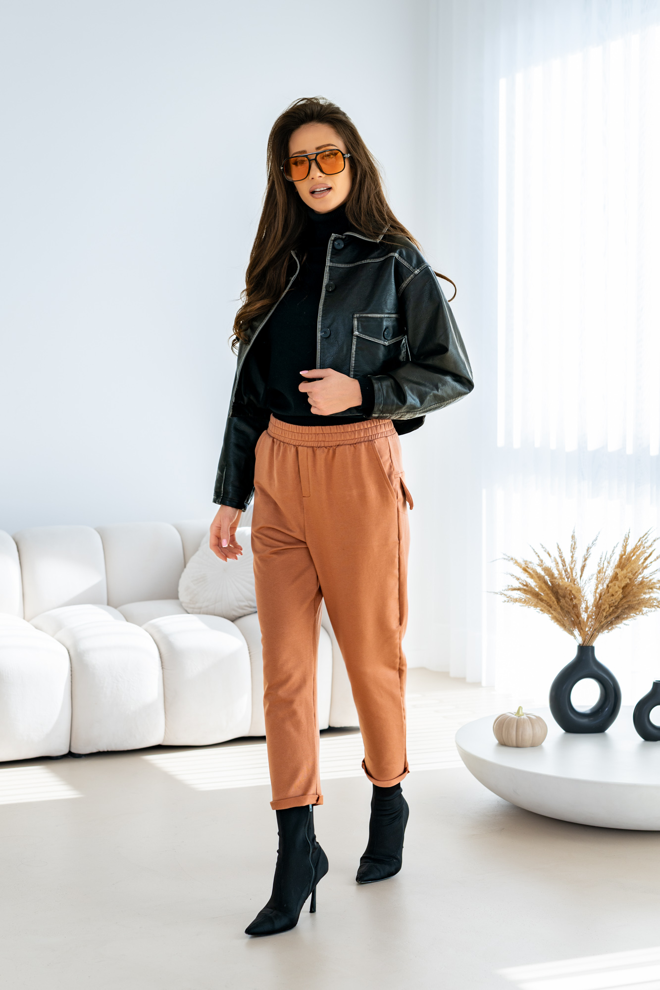Spodnie wykonane z wysokiej jakości bawełnianego materiału to propozycja, która doskonale sprawdzi się w każdej garderobie. To model z modnymi przeszyciami i kieszeniami. W ich pasie znajduje się elastyczna gumka, dzięki której idealnie dopasowują się do sylwetki. Całość prezentuje się naprawdę efektownie i pozwala na stworzenie wygodnej, a jednocześnie oryginalnej stylizacji! POLSKA PRODUKCJA!!!