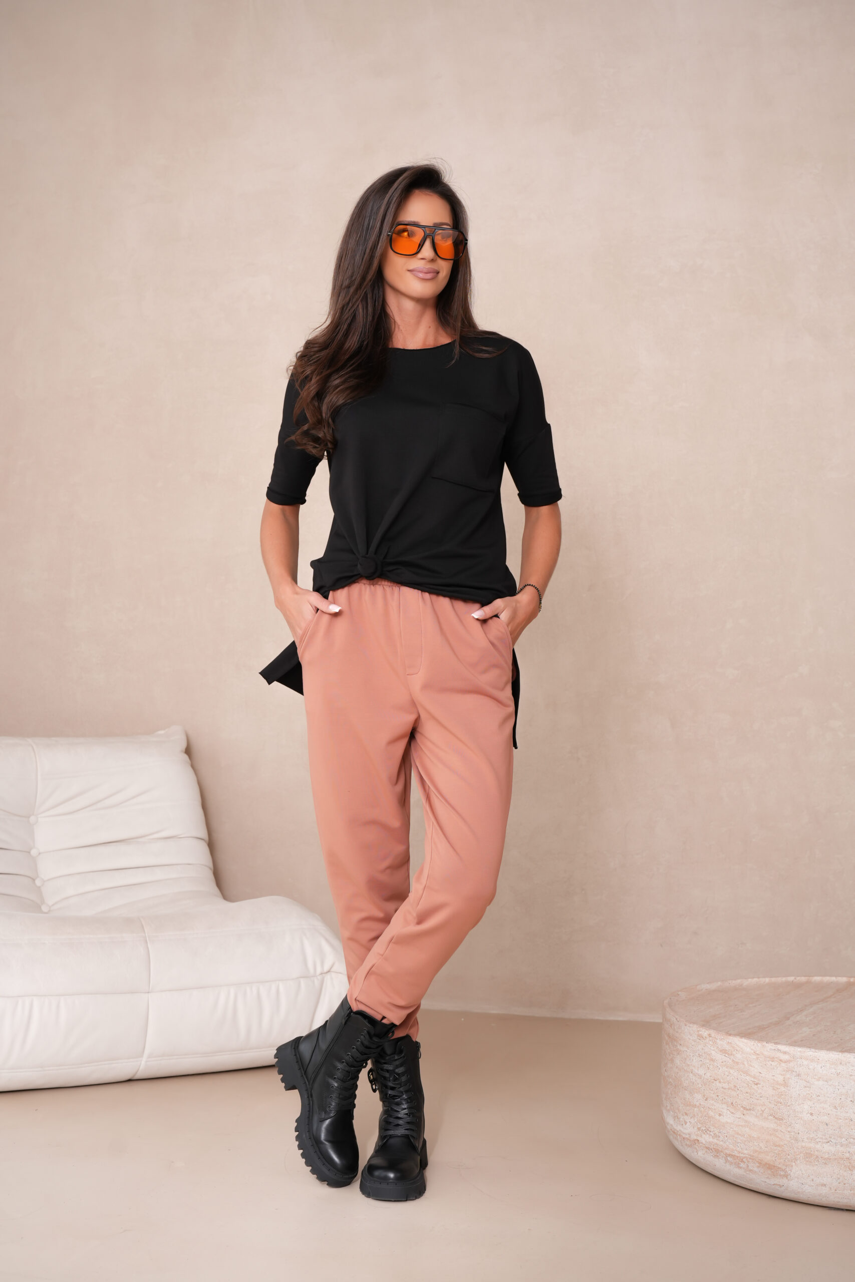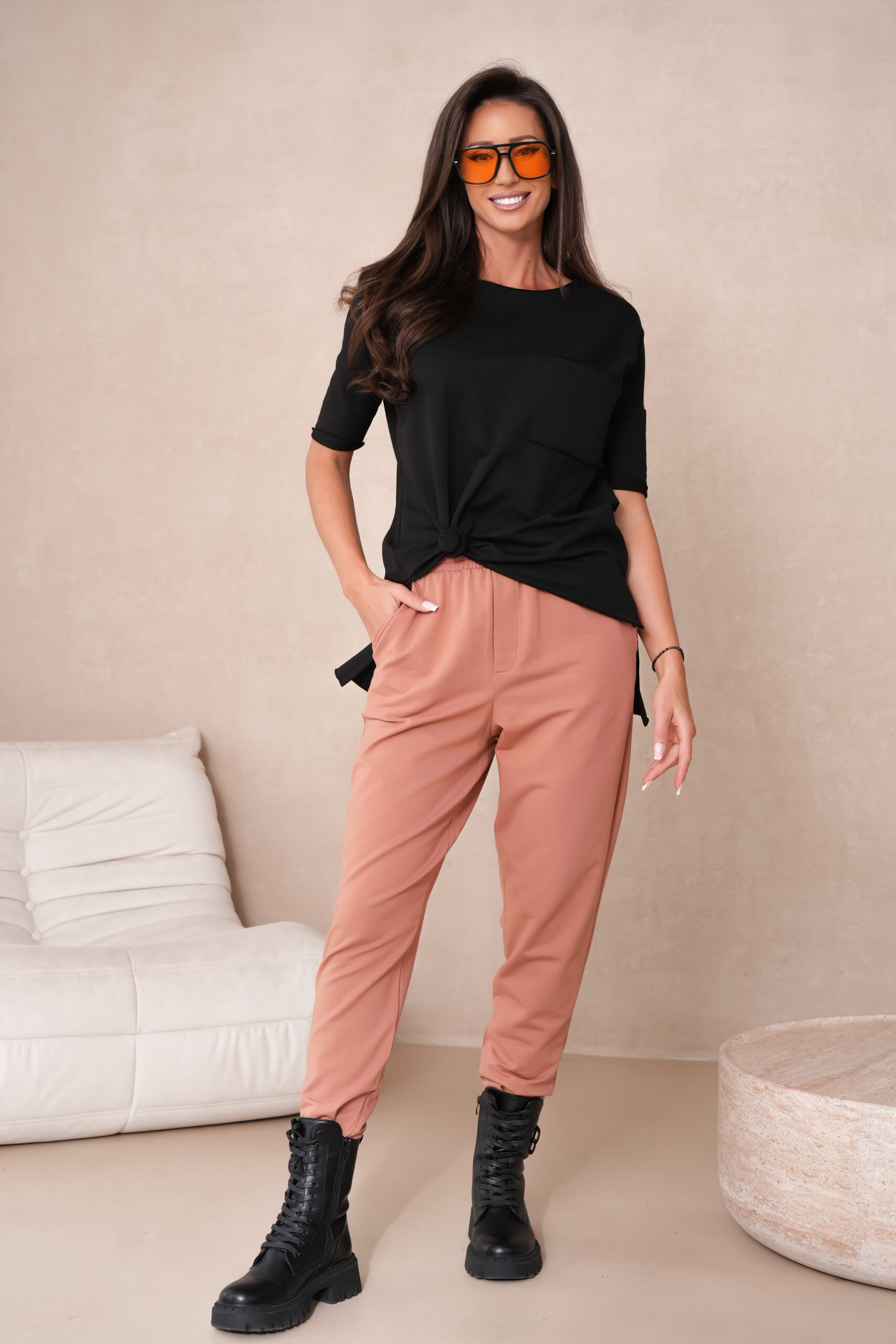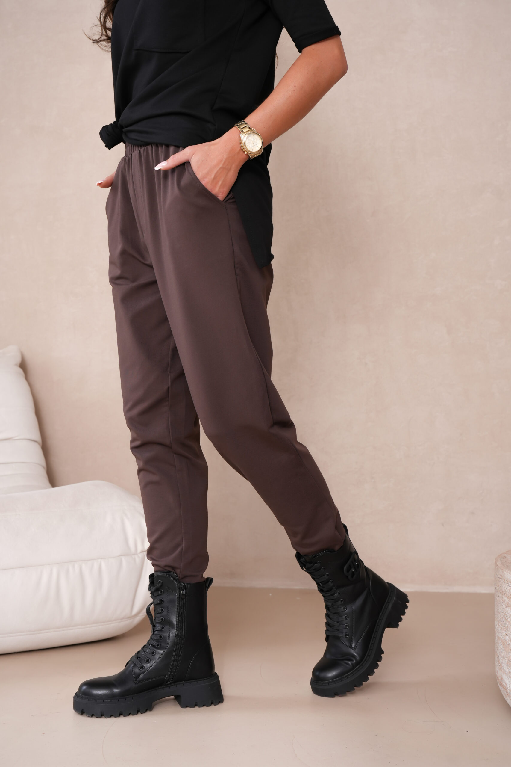 Spodnie wykonane z wysokiej jakości bawełnianego materiału to propozycja, która doskonale sprawdzi się w każdej garderobie. To model z modnymi przeszyciami i kieszeniami. W ich pasie znajduje się elastyczna gumka, dzięki której idealnie dopasowują się do sylwetki. Całość prezentuje się naprawdę efektownie i pozwala na stworzenie wygodnej, a jednocześnie oryginalnej stylizacji! POLSKA PRODUKCJA!!!