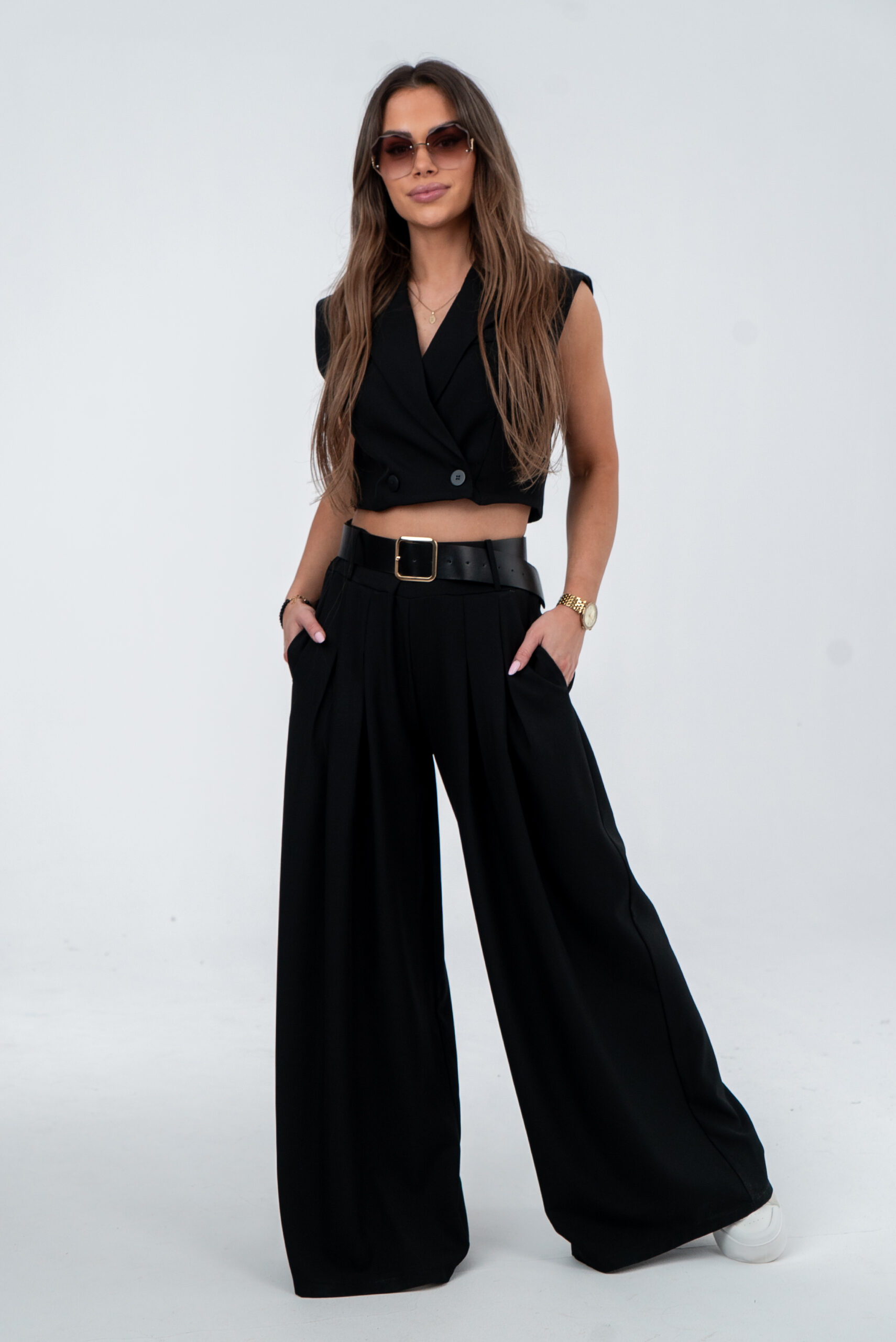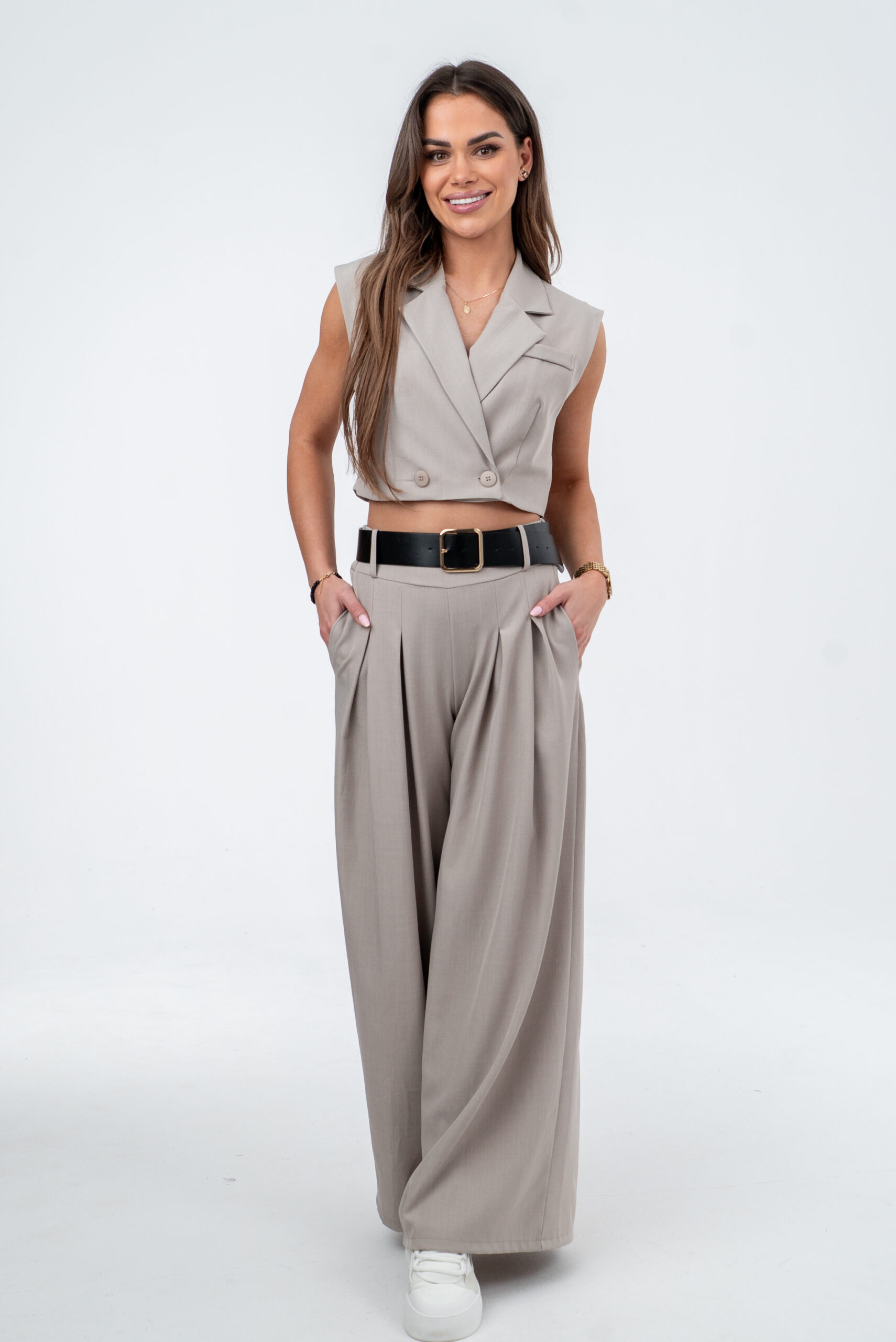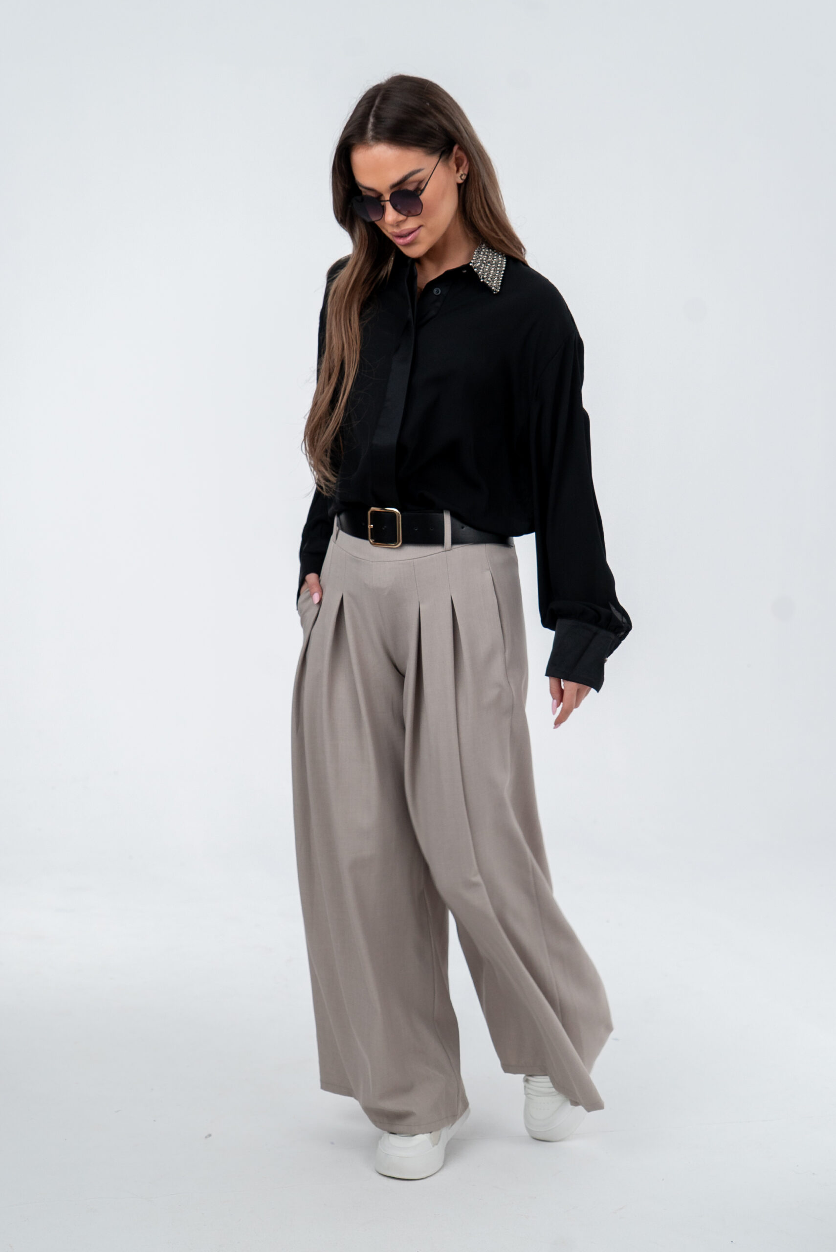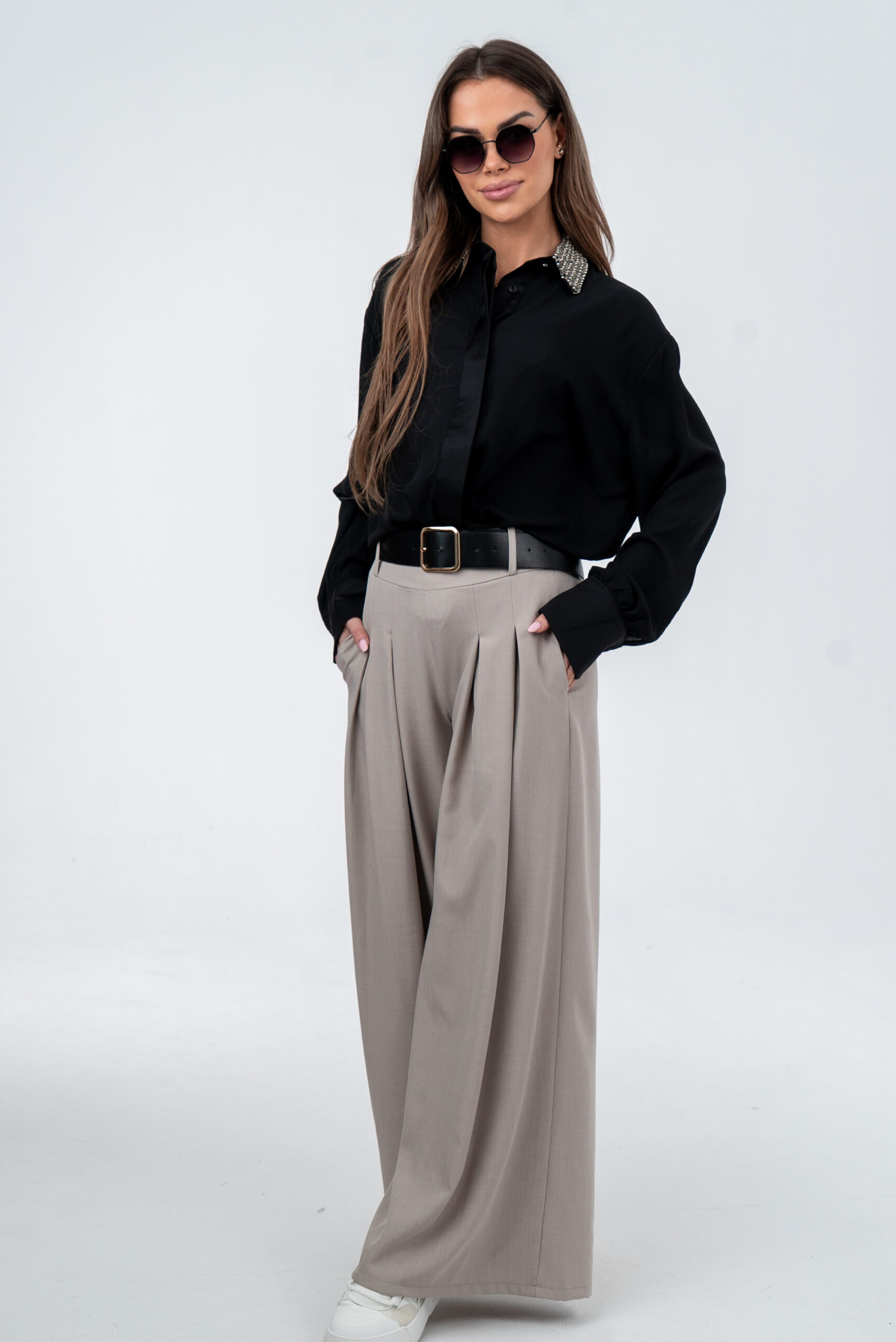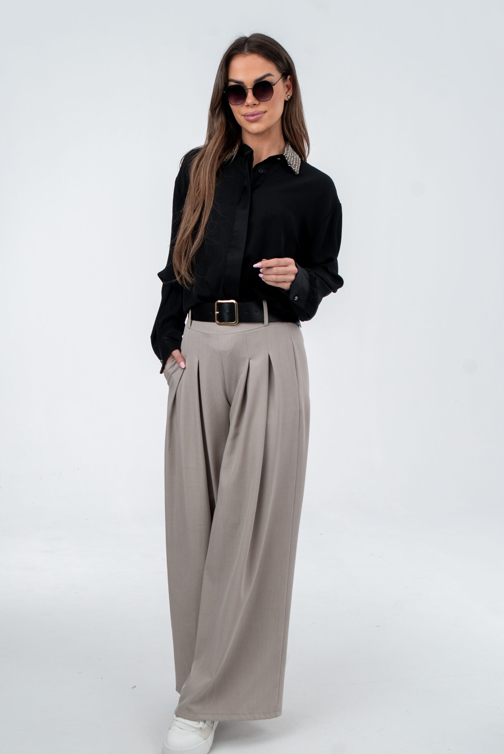 Wyobraź sobie spodnie, które idealnie wpisują się w aktualne trendy. To właśnie Spodnie High Waist z Szerokimi Nogawkami i Paskiem z Metalową Klamrą Oinna. Ich wysoki stan podkreśla sylwetkę, a szerokie nogawki dodają swobody i elegancji.