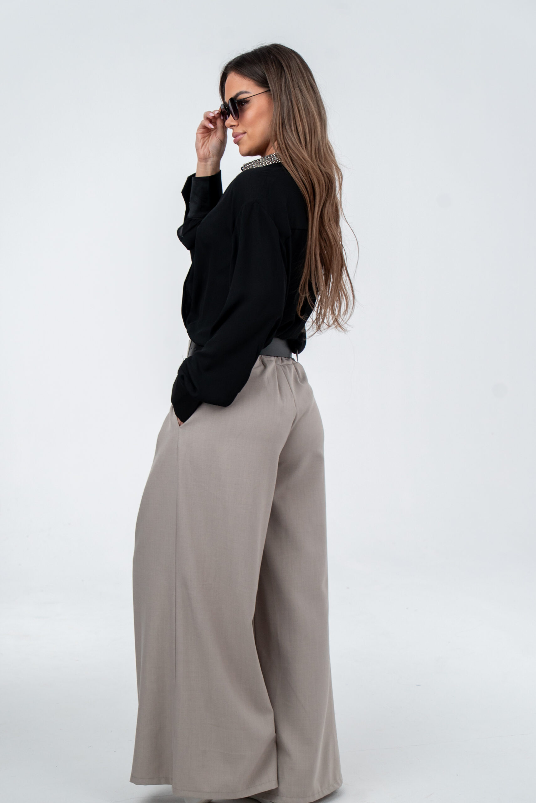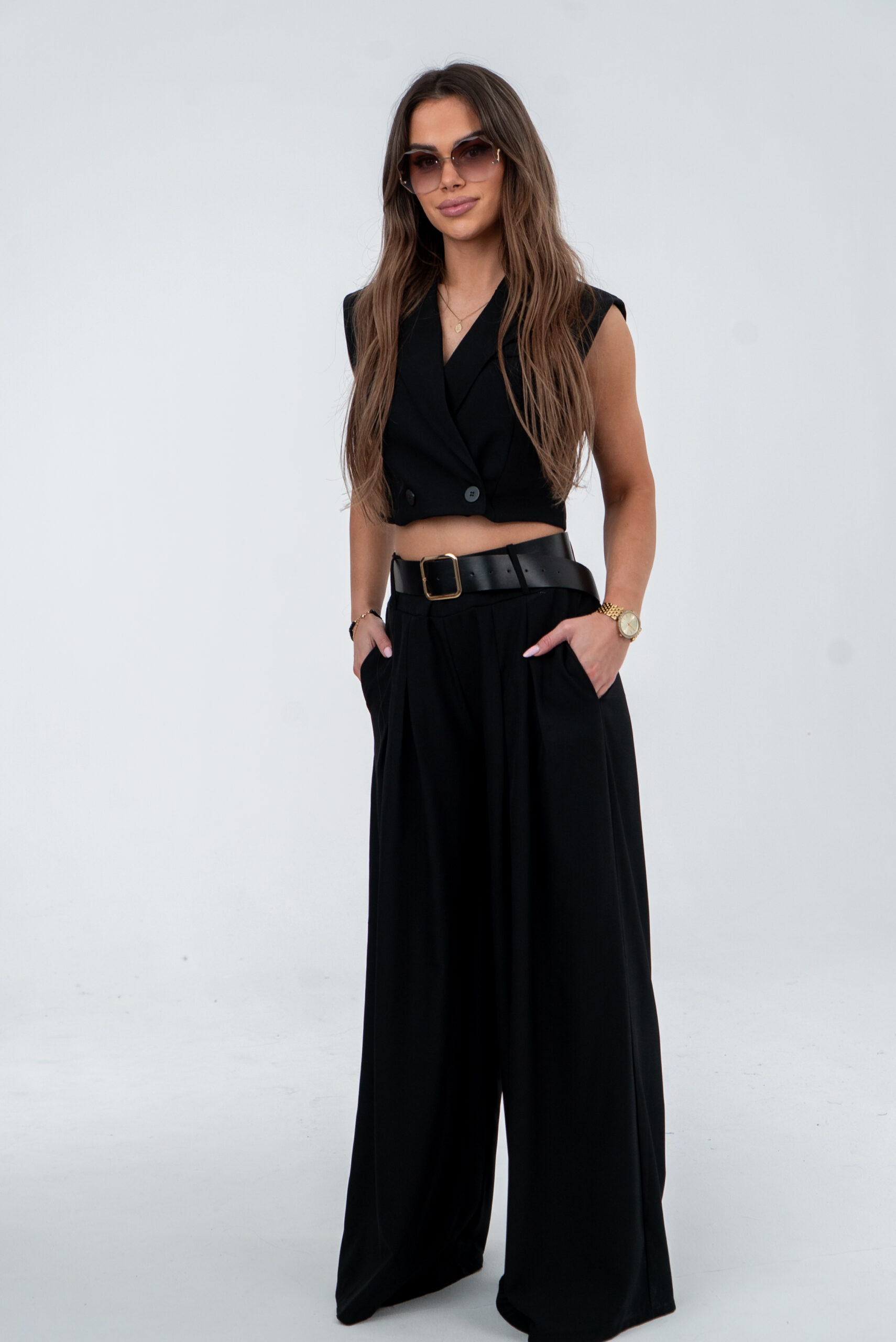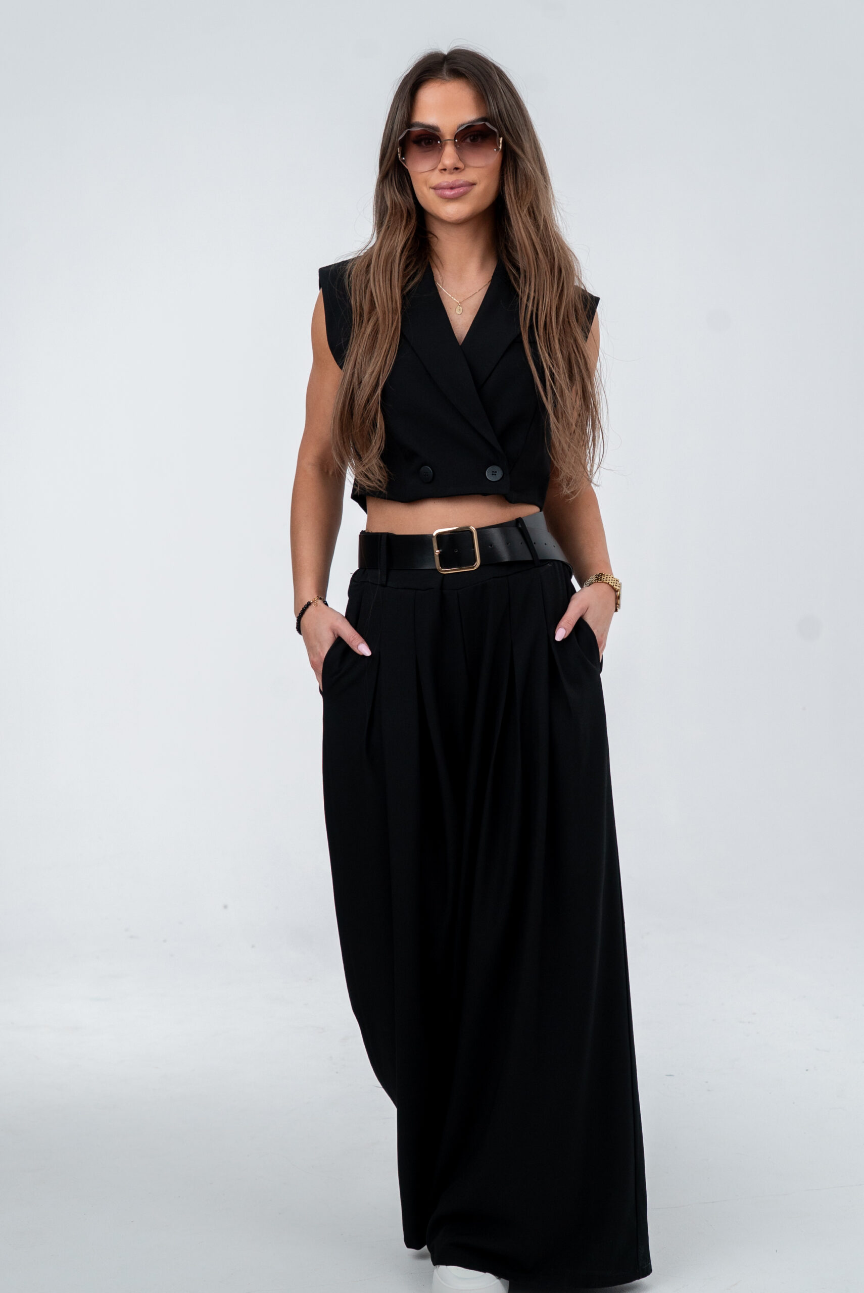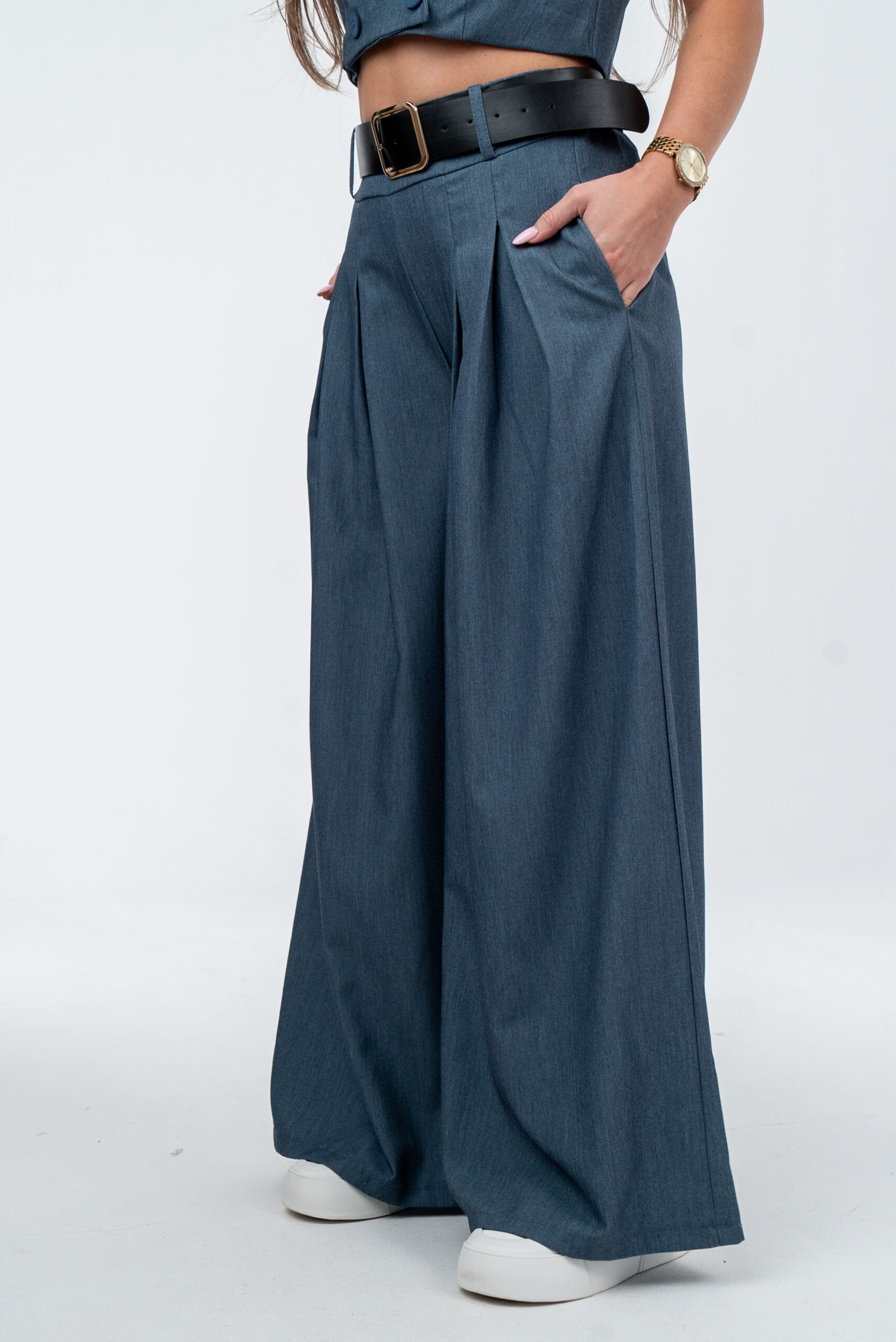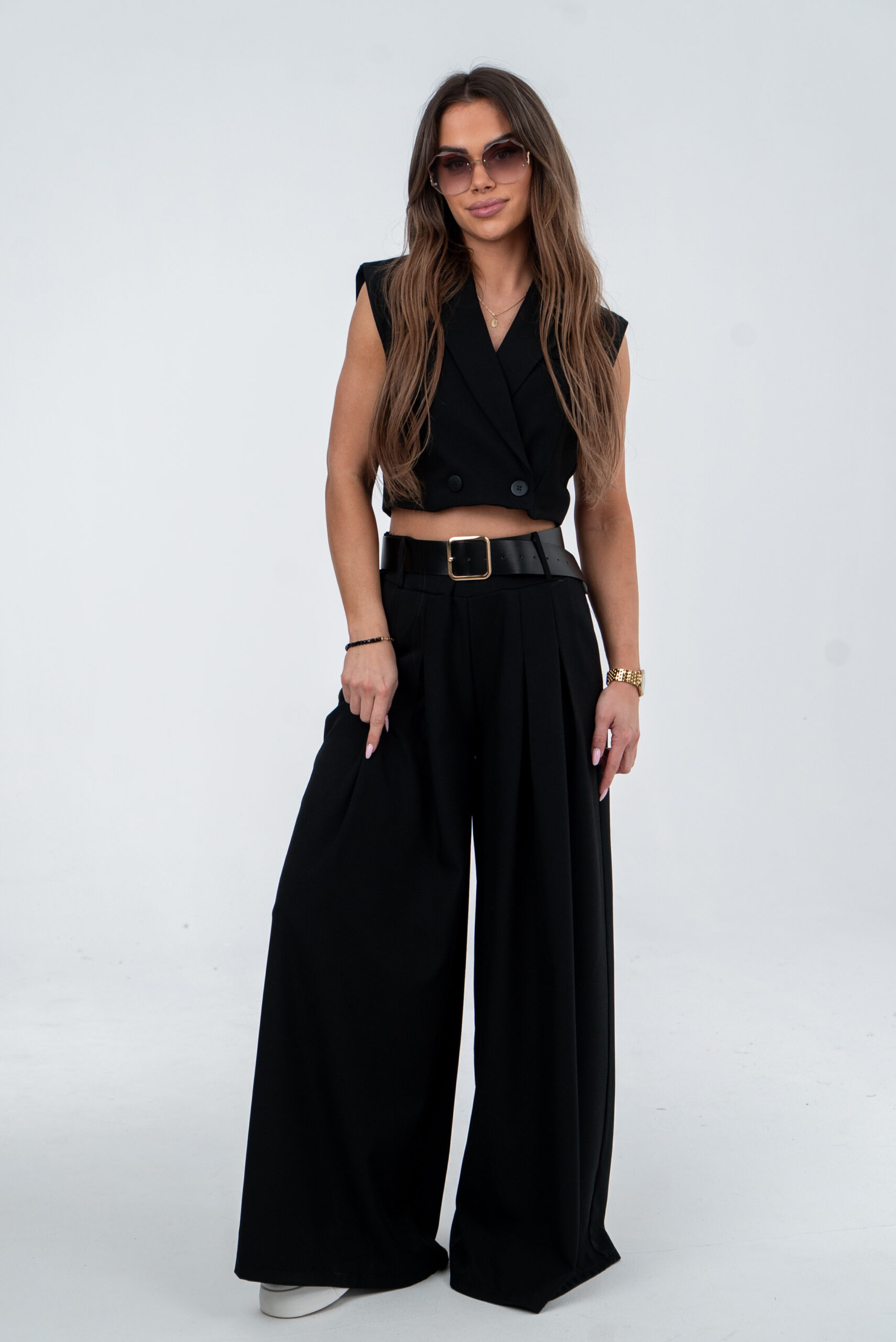 Wyobraź sobie spodnie, które idealnie wpisują się w aktualne trendy. To właśnie Spodnie High Waist z Szerokimi Nogawkami i Paskiem z Metalową Klamrą Oinna. Ich wysoki stan podkreśla sylwetkę, a szerokie nogawki dodają swobody i elegancji.