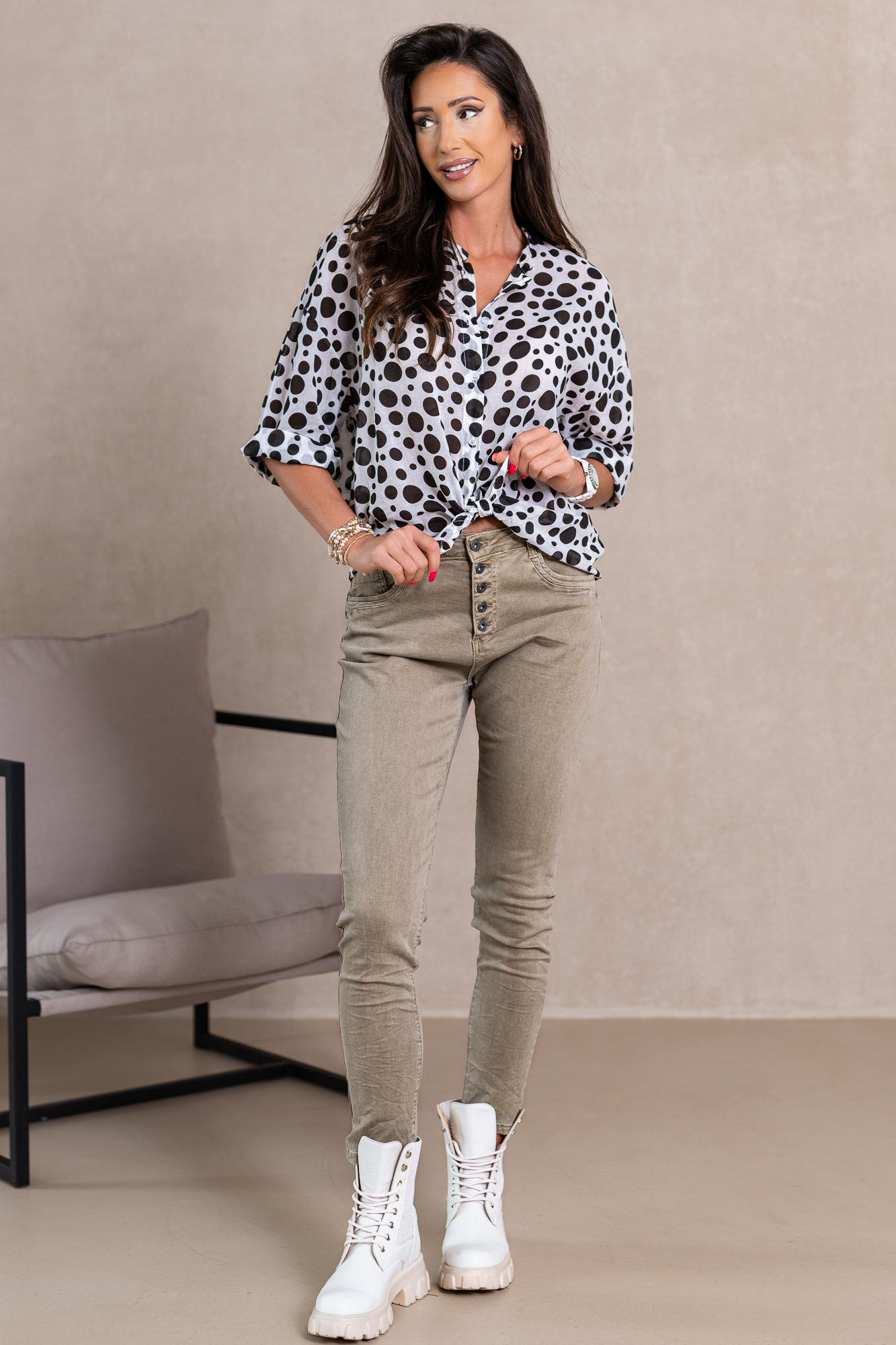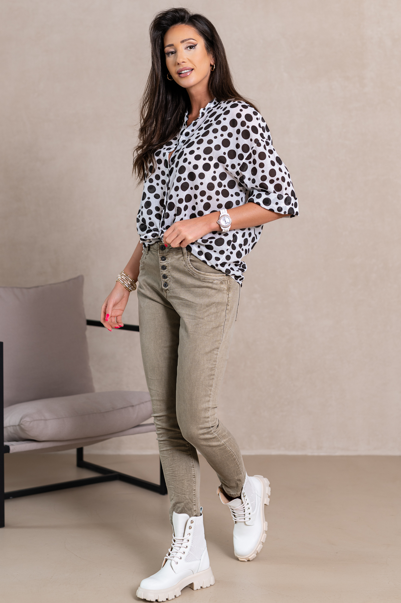 Spodnie idealnie wpisując się w Twoją codzienną garderobę. Wykonane z najwyższej jakości materiału Subtelne detale, takie jak ozdobne guziki oraz delikatne marszczenia na nogawkach, dodają luzu oraz unikalnego charakteru. To niezbędny element garderoby każdej kobiety ceniącej sobie połączenie klasycznego wyglądu z nowoczesnym stylem.🖤🖤🖤