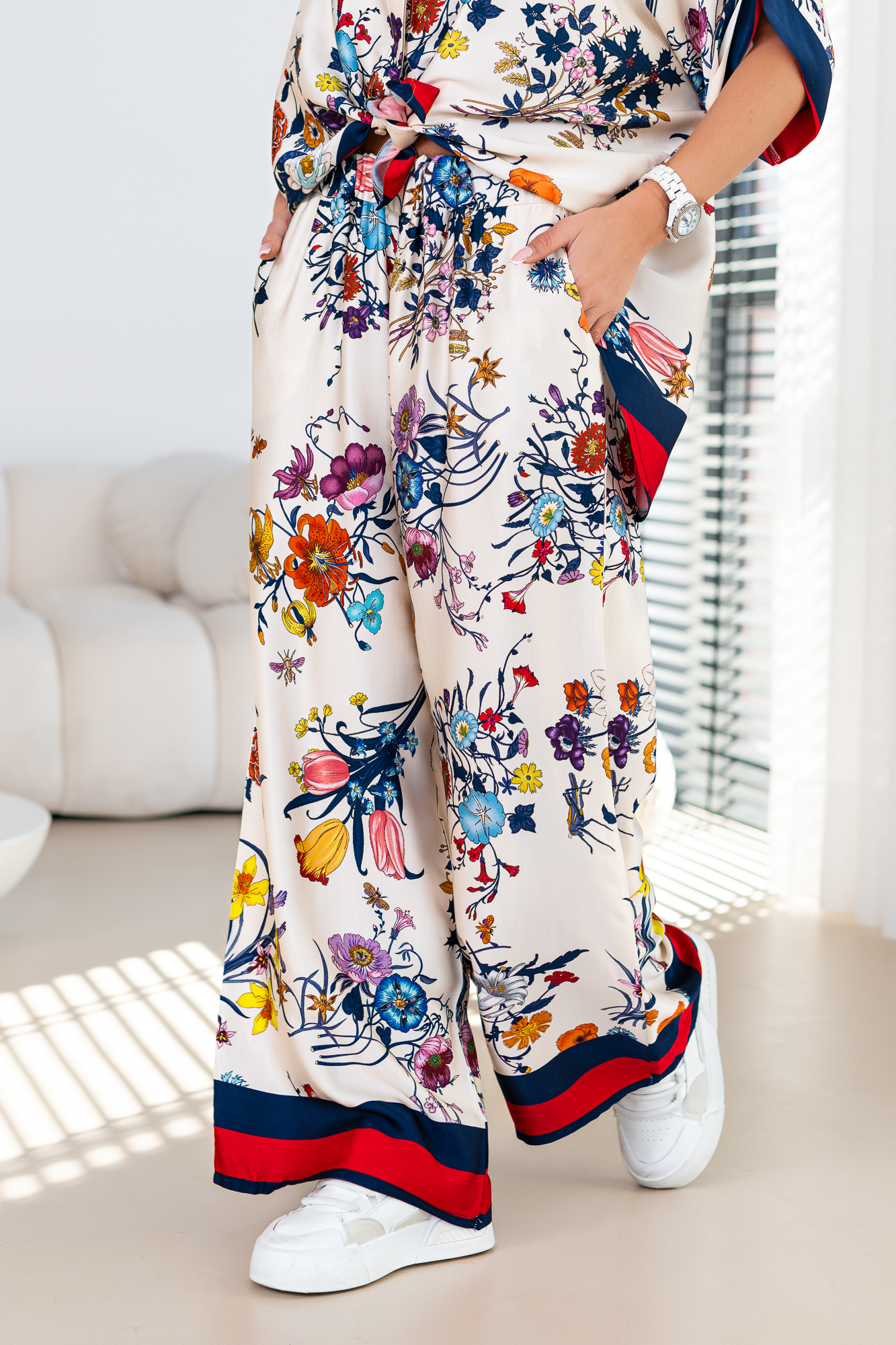 Nasze spodnie Chimerii w żadnym wypadku nie są zwyczajne. Producenci tych spodni piszą o nich tak  „Przestudiowaliśmy DNA najbardziej uniwersalnej klasyki, a następnie nadaliśmy jej super aktualny charakter – i tak powstały te sięgające do kostki spodnie z szeroką nogawką”. Mega miły materiał, przewiewny i cudownie układający się na sylwetce tzw. obłoczki ze względu na swą delikatność/lekkość.