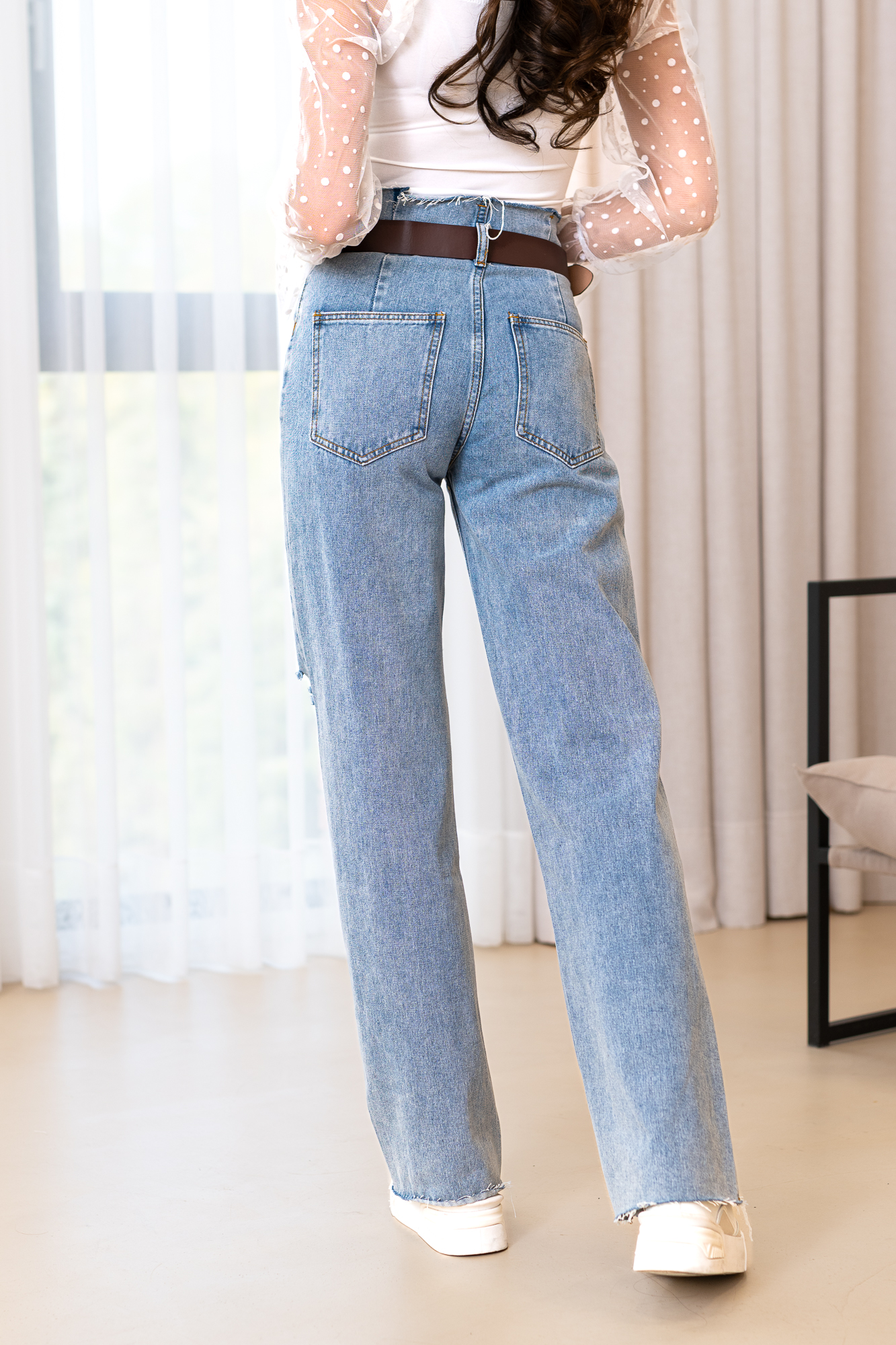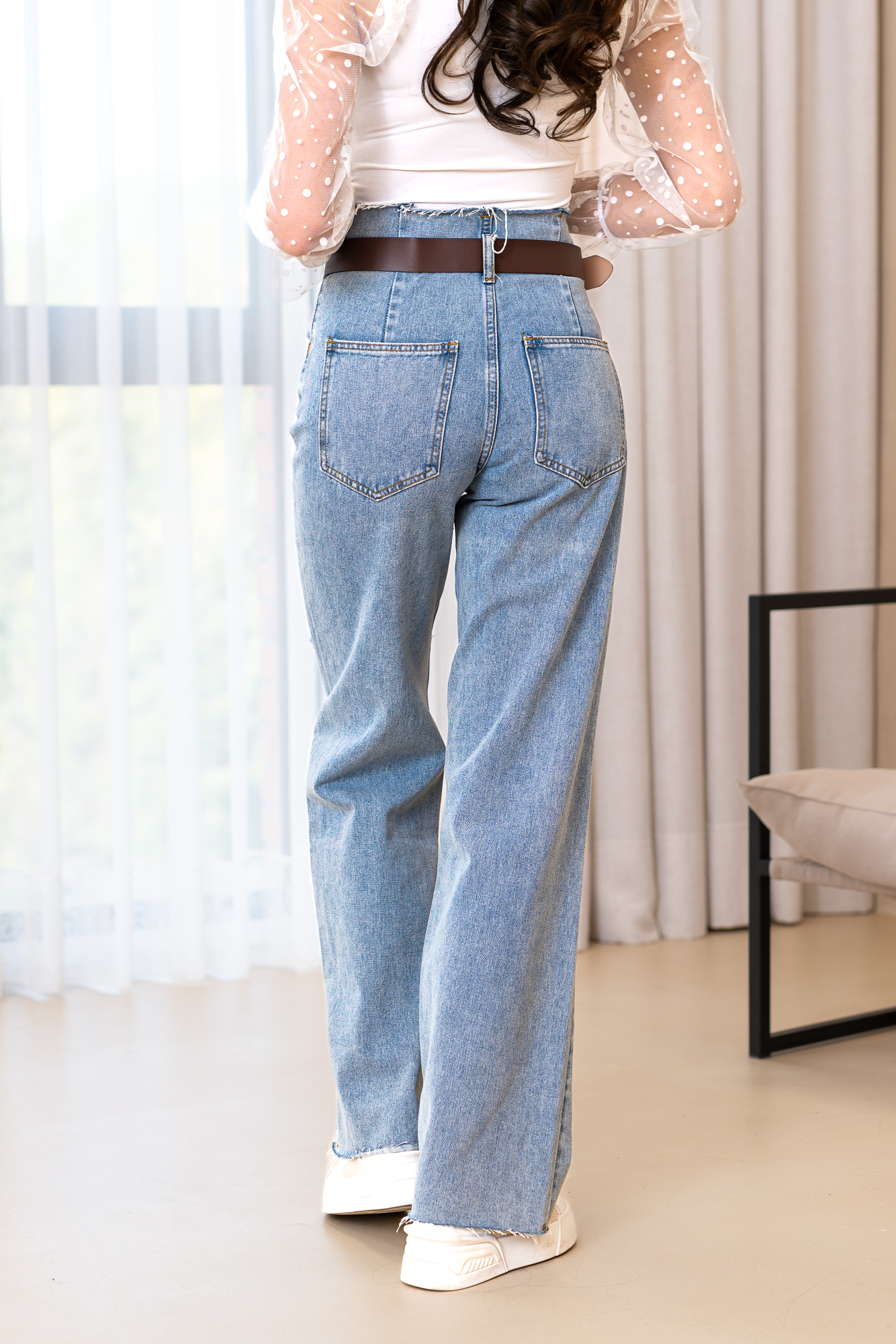 Poznaj nasze najnowsze, wyjątkowe dżinsy, które idealnie komponują się z najnowszymi trendami mody miejskiej. Wykonane z najwyższej jakości materiału, te spodnie oferują nie tylko trwałość, ale także komfort noszenia. Na codzienne wyjścia, oraz na specjalne okazje, ich klasyczny niebieski kolor z delikatnym spraniem nadaje każdej stylizacji elegancji. Prosty krój nogawek zapewnia swobodę ruchów i nowoczesny wygląd, który wspaniale prezentuje się na każdej sylwetce. Dostępne w rozmiarze XS, S, M, L, są idealnym wyborem dla osób ceniących sobie styl i wygodę. Te dżinsy to must-have w szafie każdej kobiety, która chce wyglądać stylowo i czuć się pewnie każdego dnia. Spodnie sprzedawane w komplecie z paskiem,