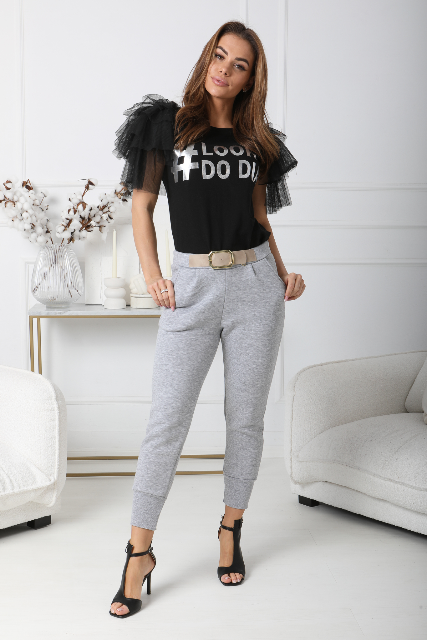 Spodnie bawełniane z BLM mają świetne kroje. Zaprojektowane są tak, byś wyglądała w nich naprawdę atrakcyjnie. Fason tych spodni uwydatnia pośladki i optycznie wyszczupla uda. Do tego są wygodne. Spodnie z wyższymi ściągaczami przy nogawkach, dwiema kieszeniami po bokach, jednej kieszonce na pupie i z ozdobnym paskiem. Jest to modele idealny do sportowych jak i eleganckich stylizacji. Włożysz je na spacer a i na wyjścia ze znajomymi. Spodnie wykonane z bawełny – ocieplane. JAKOŚĆ PREMIUM!