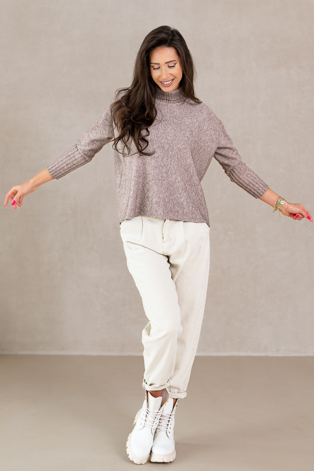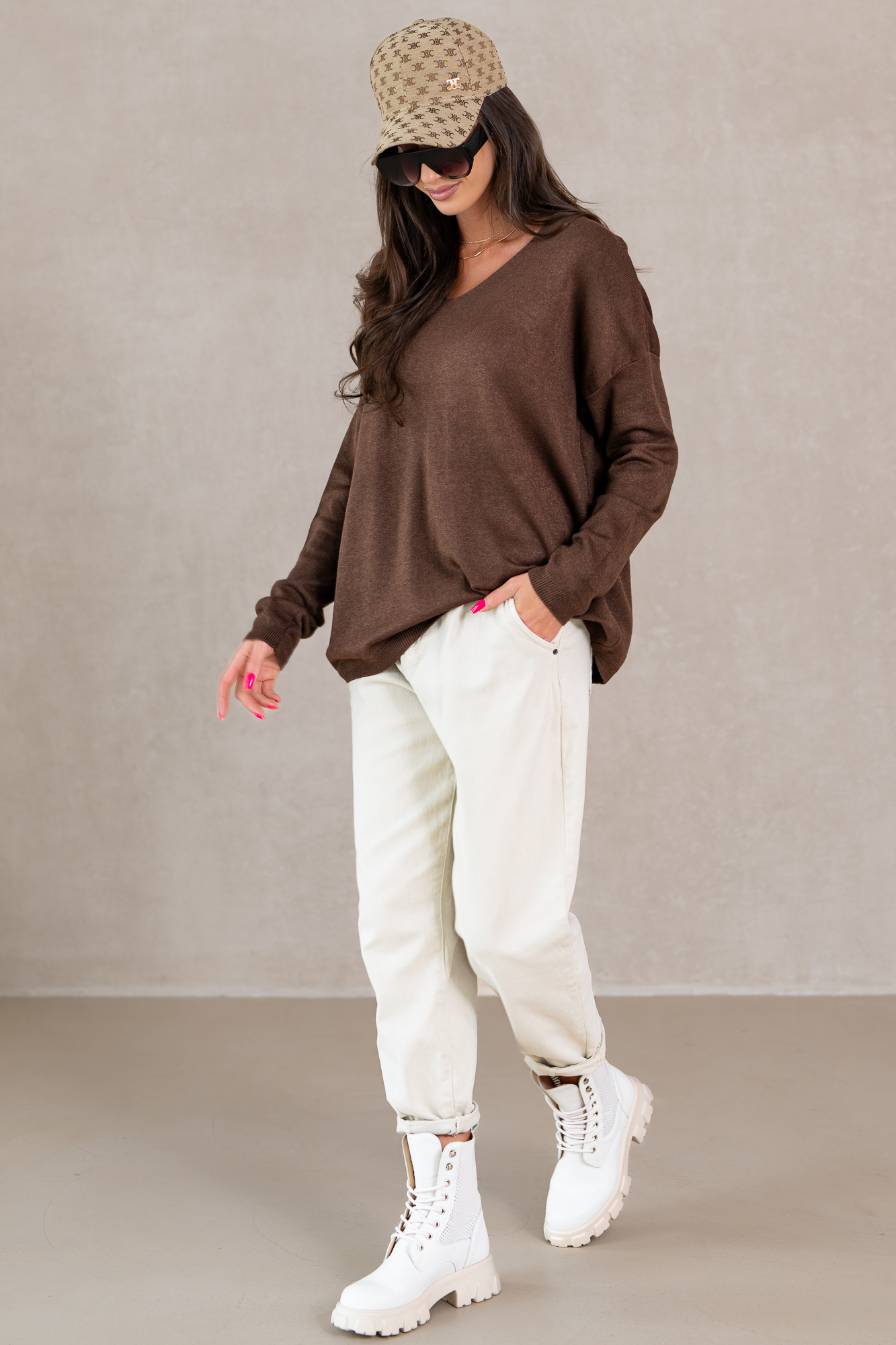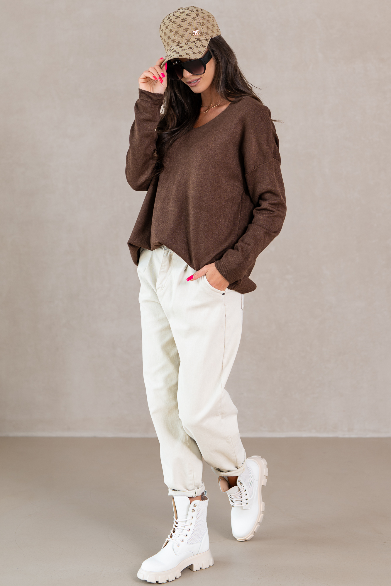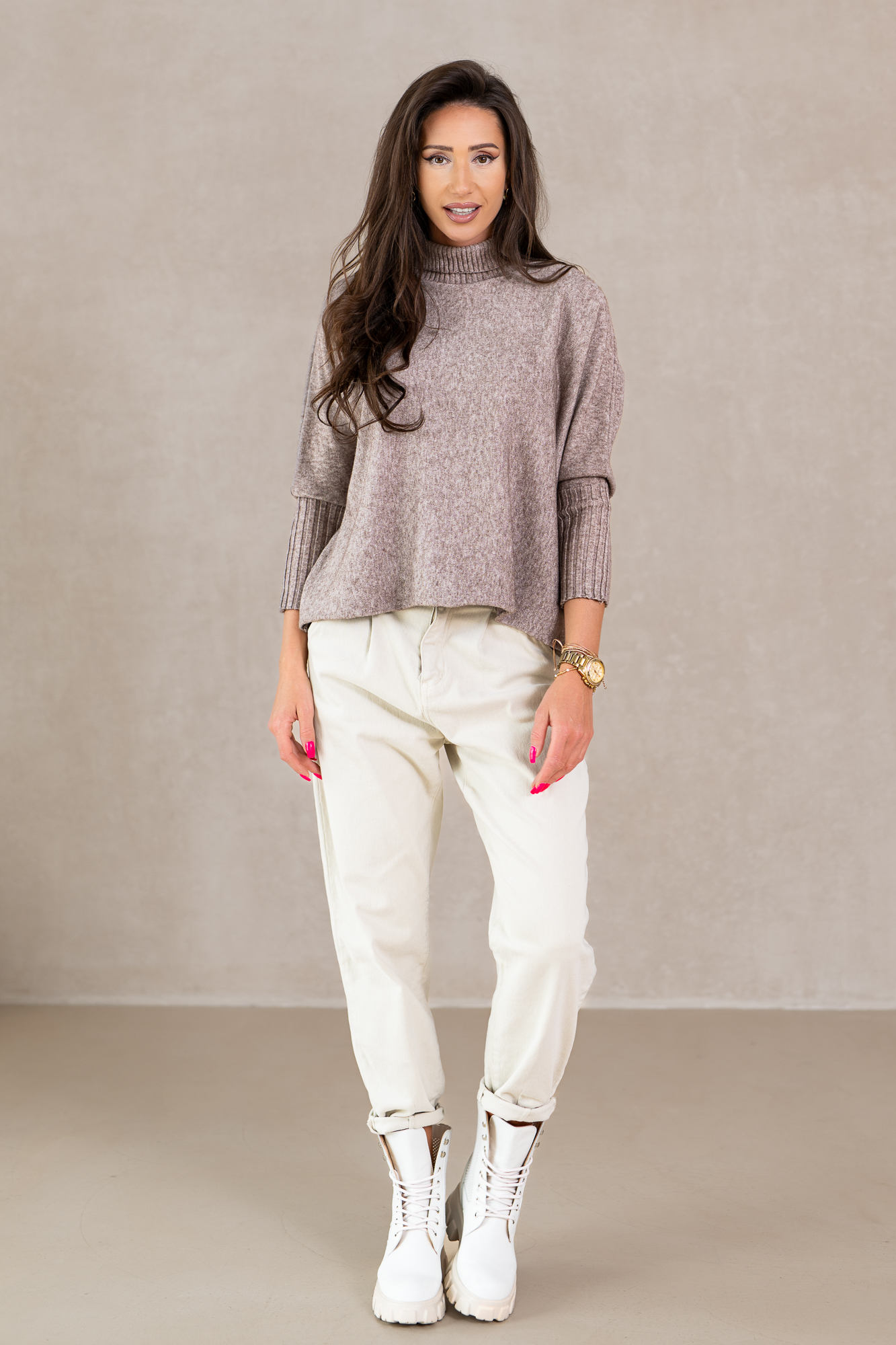 Wyjątkowe spodnie, które stanowią idealne połączenie stylu i komfortu. Te pięknie zaprojektowane spodnie w subtelnie stonowanym odcieniu ciepłego brązu to must-have w każdej garderobie. Uszyte z wysokiej jakości materiału, zapewniającej doskonałe dopasowanie i swobodę ruchu, przyciągają uwagę swoim ponadczasowym krojem. Pozwalają na stworzenie niezliczonej liczby stylizacji – zarówno tych na co dzień, jak i na bardziej formalne okazje. Te spodnie nie tylko wspaniale wyglądają, ale także sprawiają, że czujesz się pewnie i stylowo.
