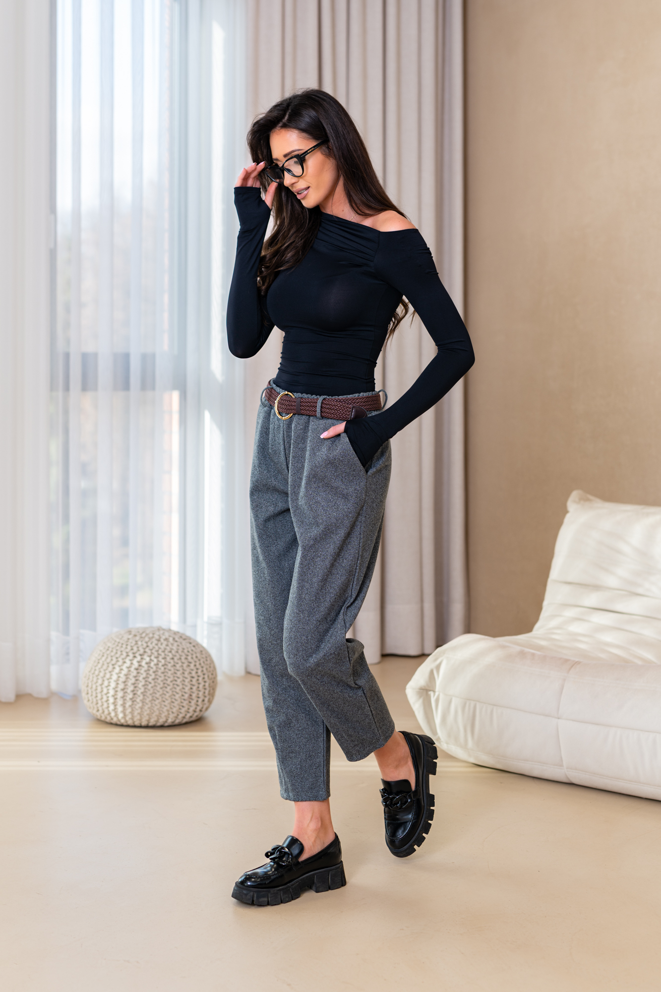 Nogawki luźne, lekko zwężane ku dołowi