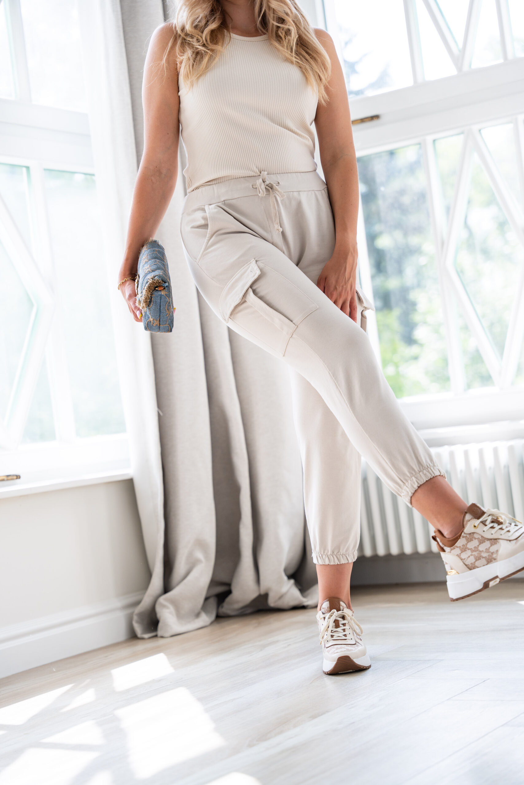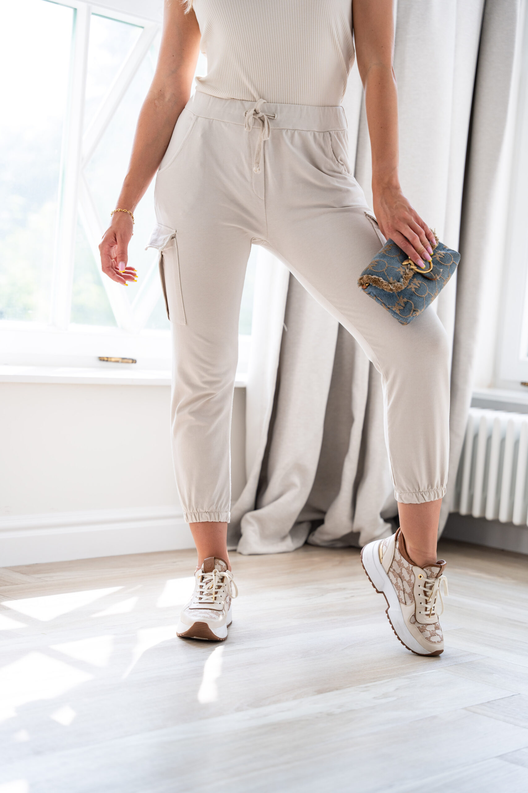 Spodnie wykonane z miękkiej, przyjemnej w dotyku bawełny z domieszką elastanu. W pasie jest ściągacz oraz sznurek pozwalający na regulację, kieszenie po bokach. Niepowtarzalne i bardzo wygodne. Nadają się na każde wyjście! Jakość PREMIUM marki Wanilla. Modelka na zdjęciu ma rozmiar „S”- 174cm wzrostu.