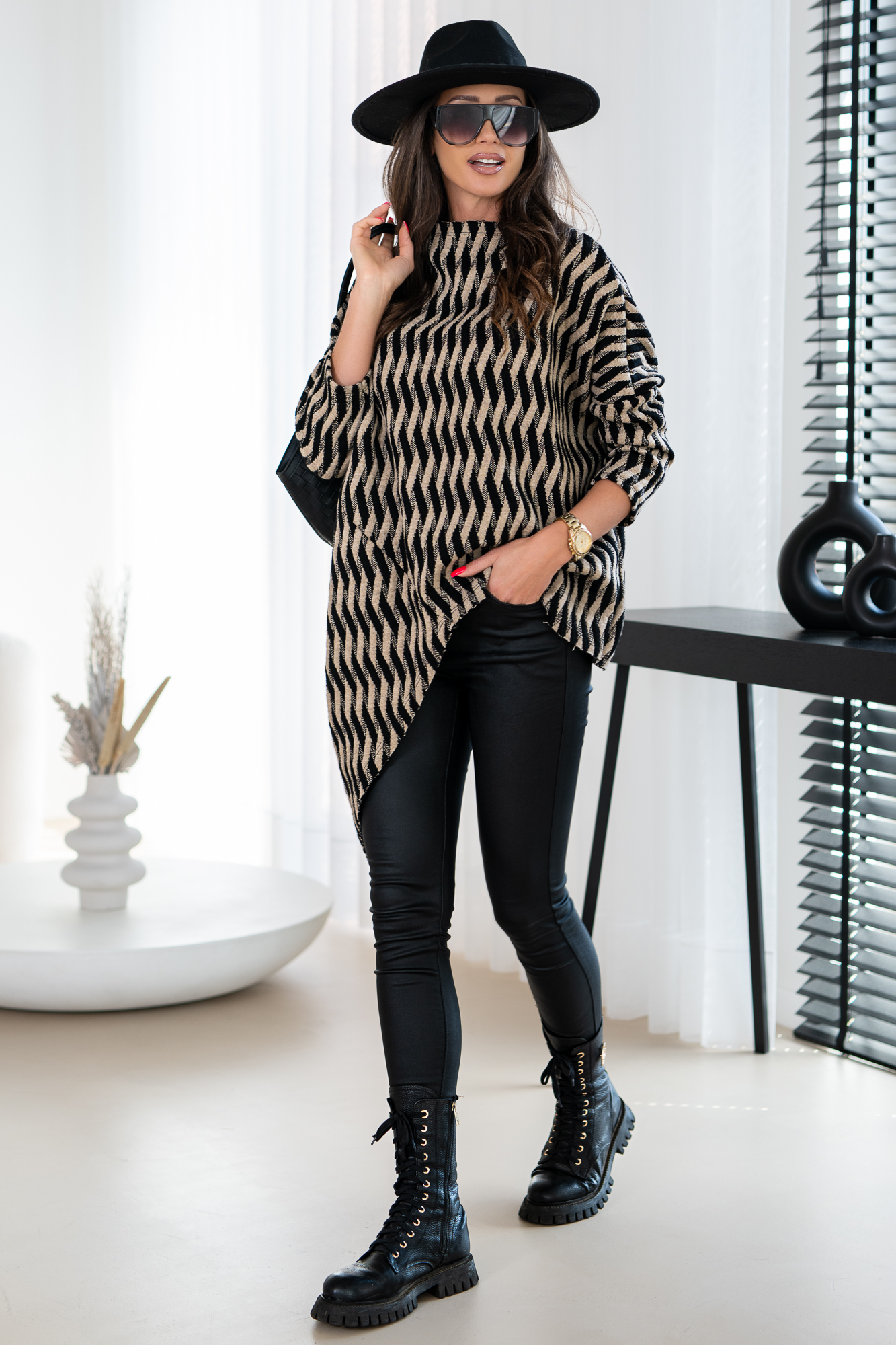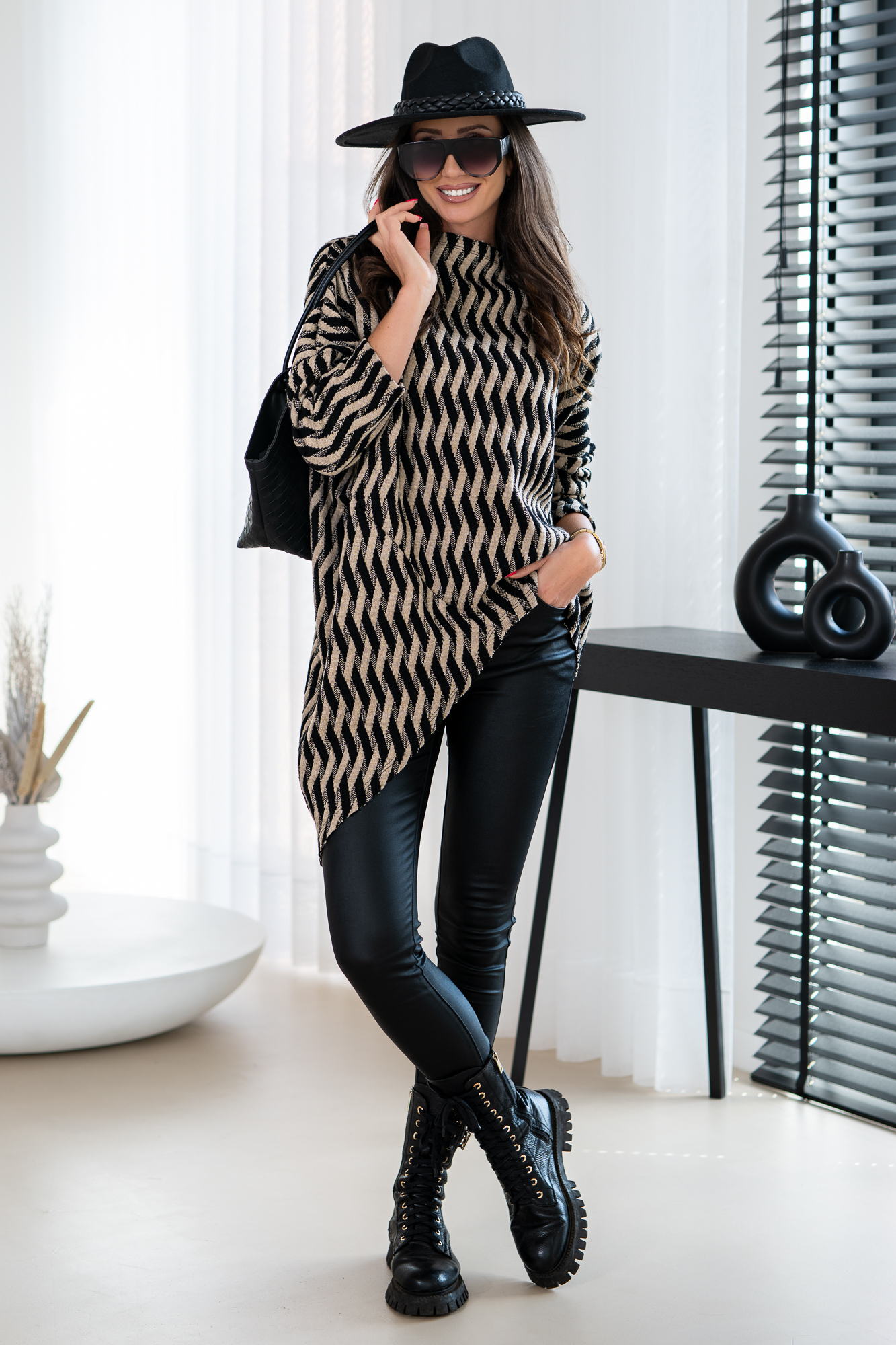 Spodnie są wykonane z imitacji skóry, która jest niezwykle wygodna i elegancka. Przylegający fason, który pasuje zarówno do formalnych, jak i nieco bardziej swobodnych okazji. Idealne na spotkania biznesowe, wieczorne kolacje czy specjalne wydarzenia. Dzięki starannej konstrukcji spodnie doskonale dopasowują się do sylwetki, zapewniając wygodę przez cały dzień. Spodnie  są  elastyczne , zapinane na suwak i guzik,   wysoki stan.