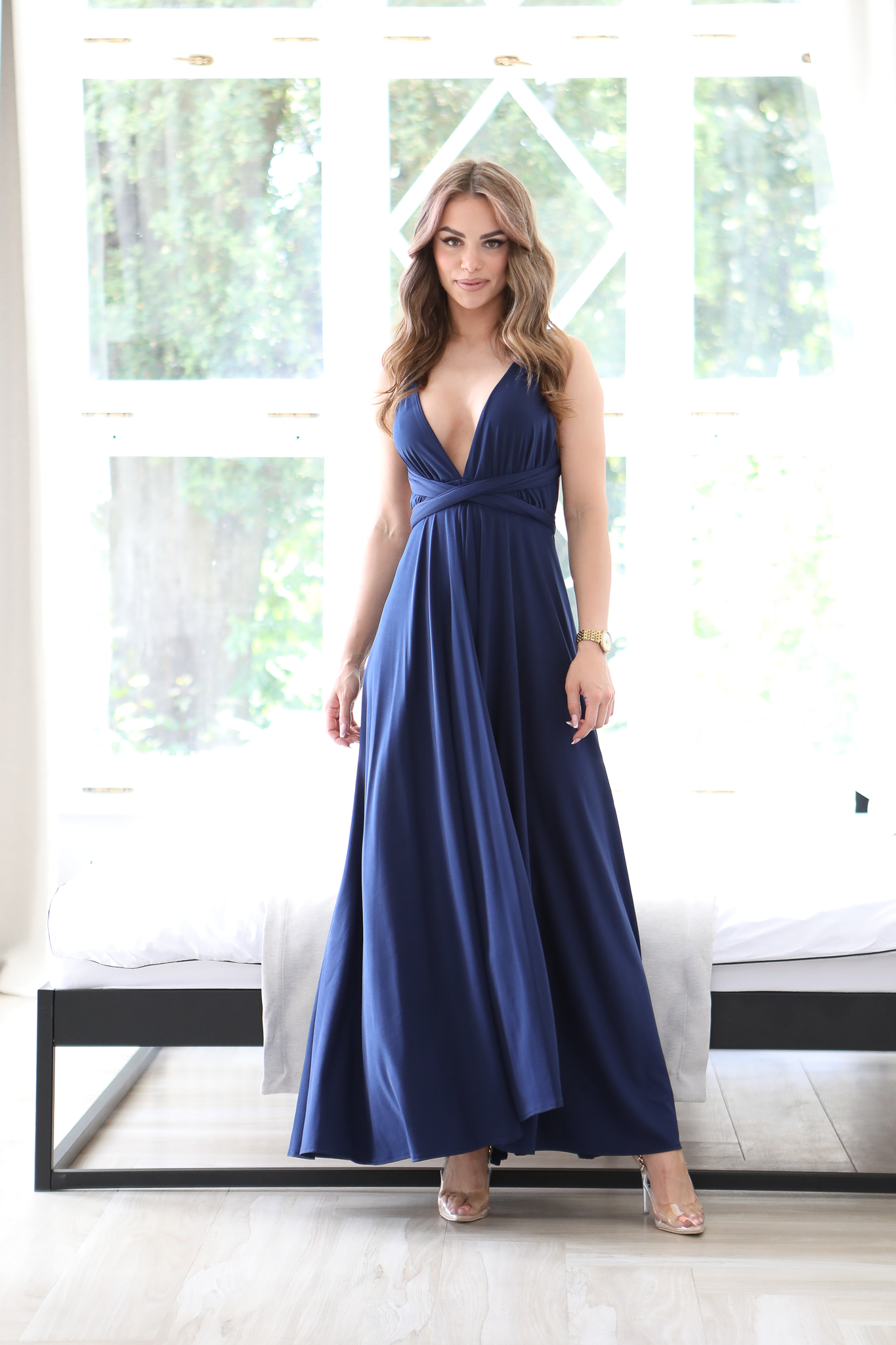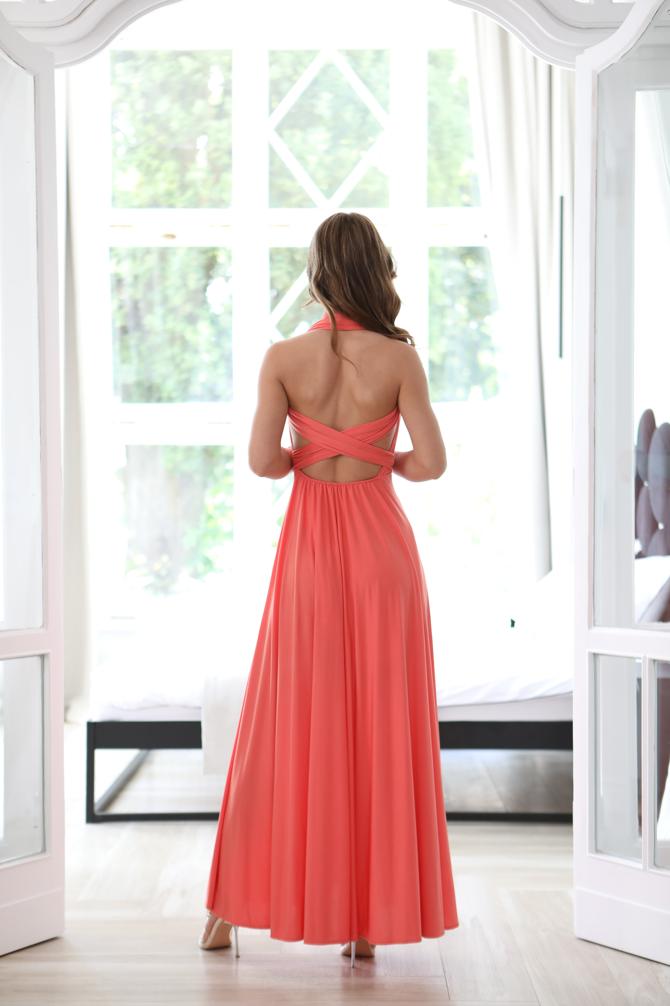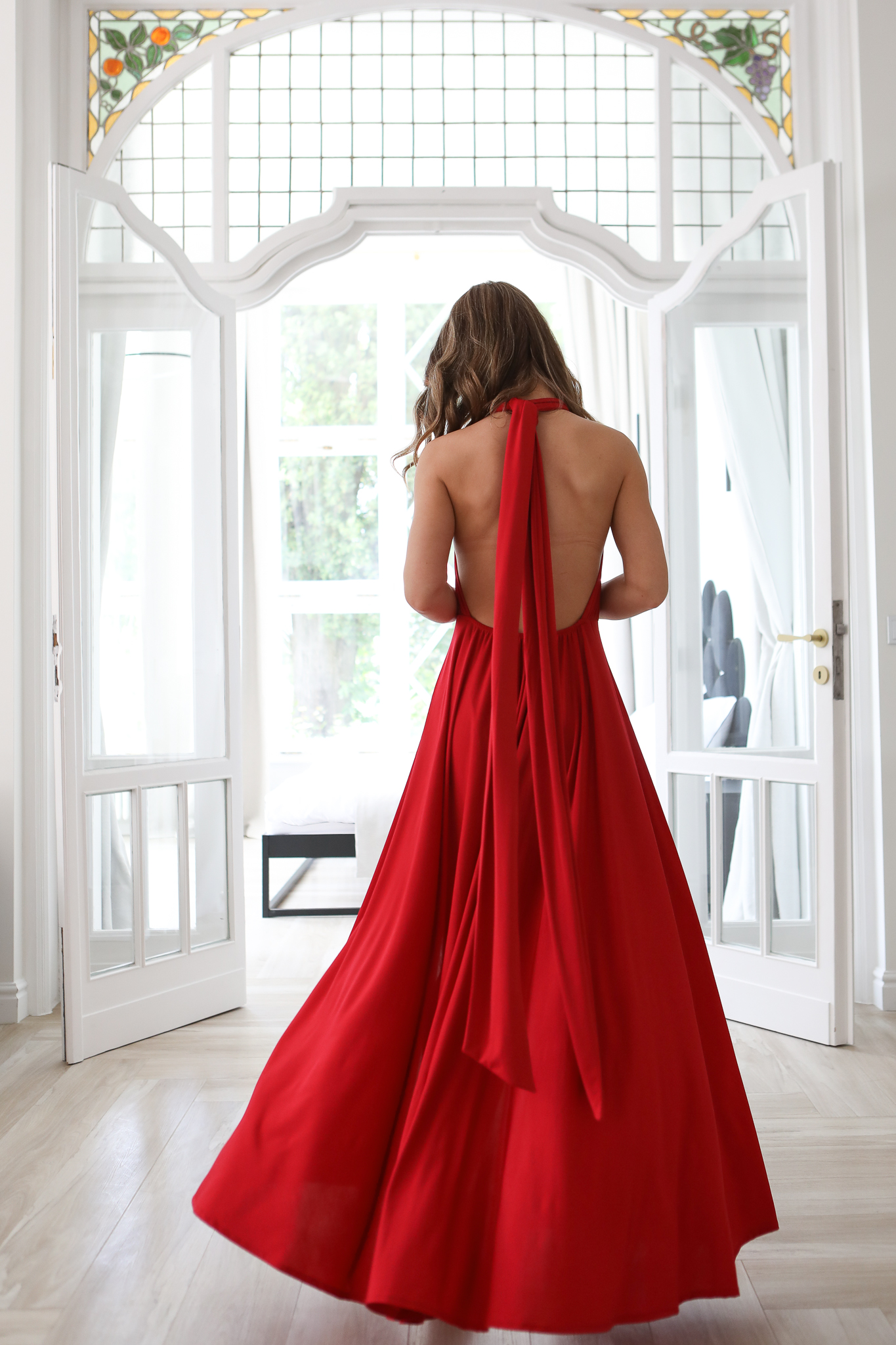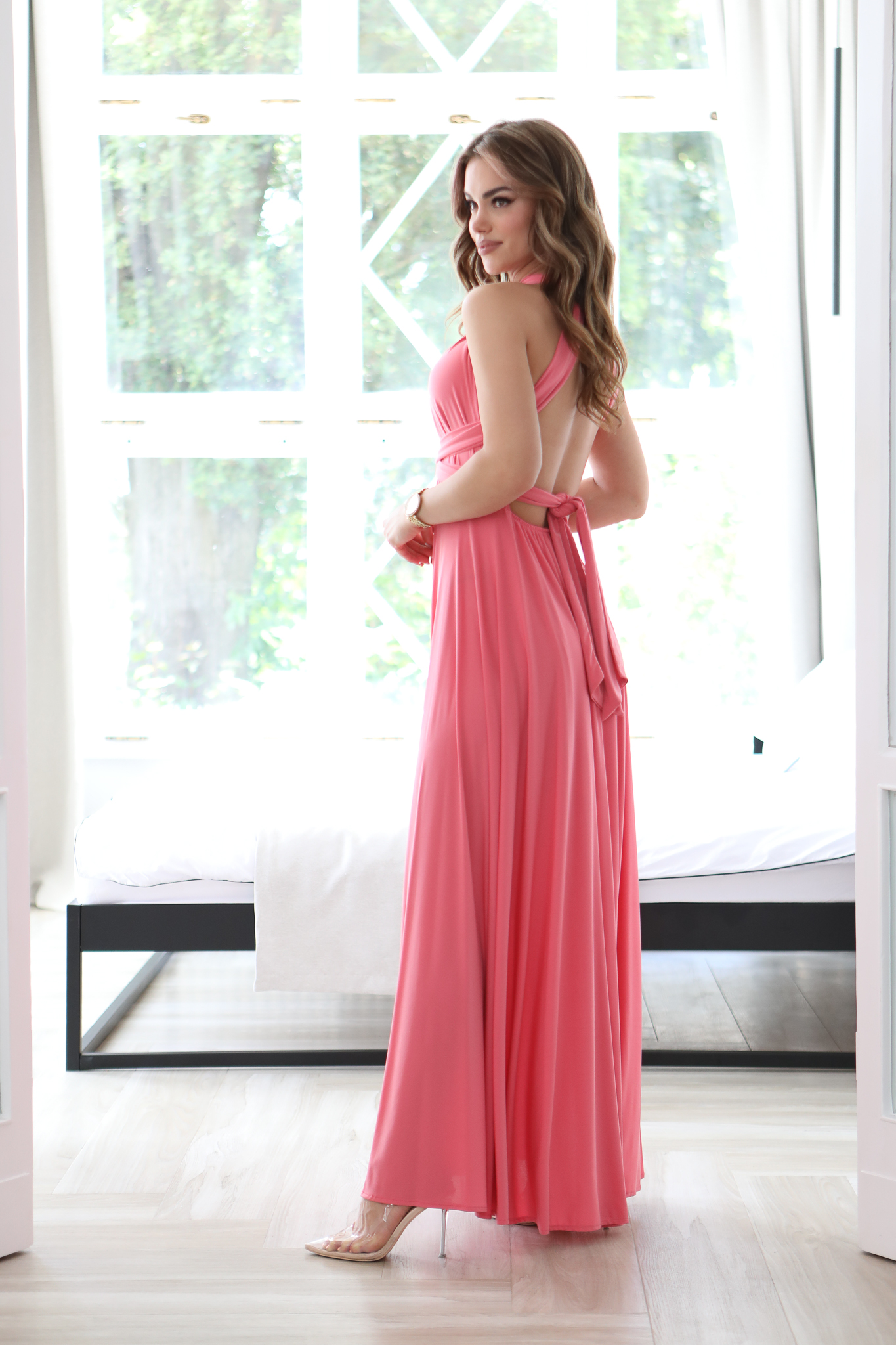Ta Sukienka to bardzo – kobiecy model, który pięknie prezentuje się na sylwetce. Góra z szerokimi ramiączkami, które mogą być dowolnie zawiązana – wszystko zależy od fantazji osoby która będzie nosić tą sukienkę. W pasie gumka dzięki której sukienka dopasowuje się do sylwetki. Szeroki dół sukienki i głębokie rozcięcia to ponadczasowy hit, który wspaniale wygląda ze szpilkami. Sukienkę można założysz na niemal każdą okazję. Produkt polskiej produkcji.