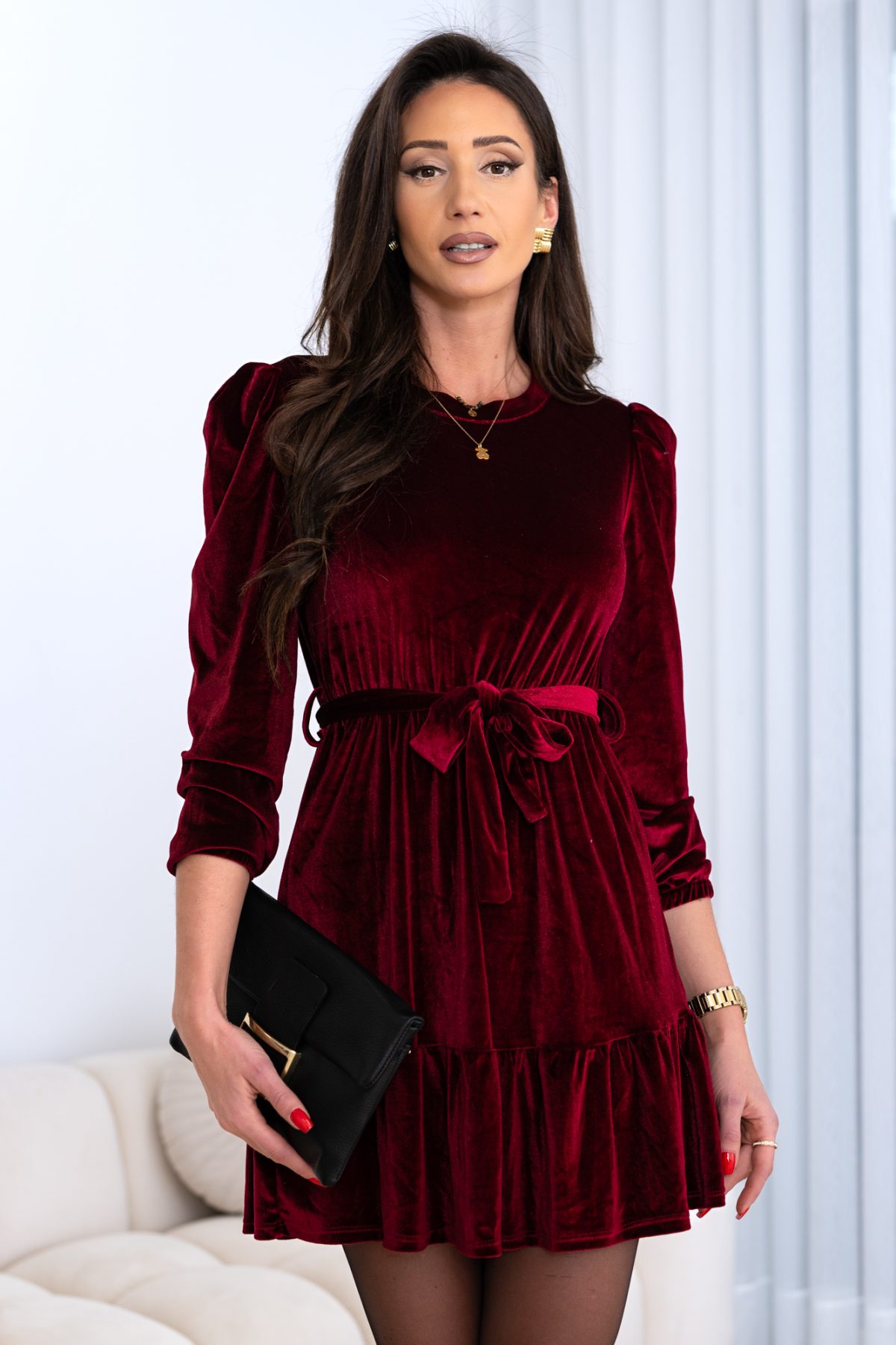 Sukienka kobieca, finezyjna a z pazurem. IDELANA NA NADCHODZĄCY CZAS SPOTKAŃ I WYJŚĆ – ale też na wyjście do pracy czy spotkanie ze znajomymi!!! Ten model sukienki powoduje że czujemy się kobiece a jednak niczym nie skrępowane. Modelka na zdjęciu nosi rozmiar S/178cm wzrostu
