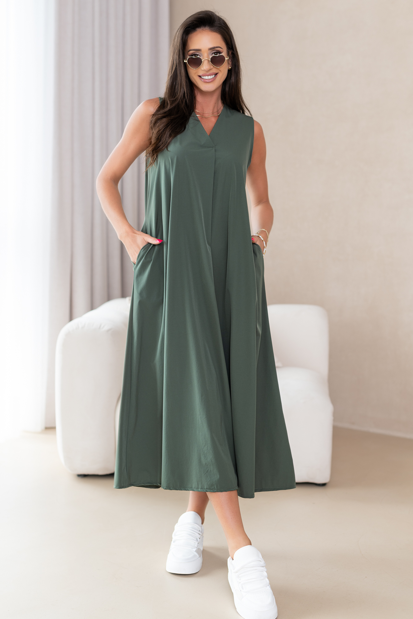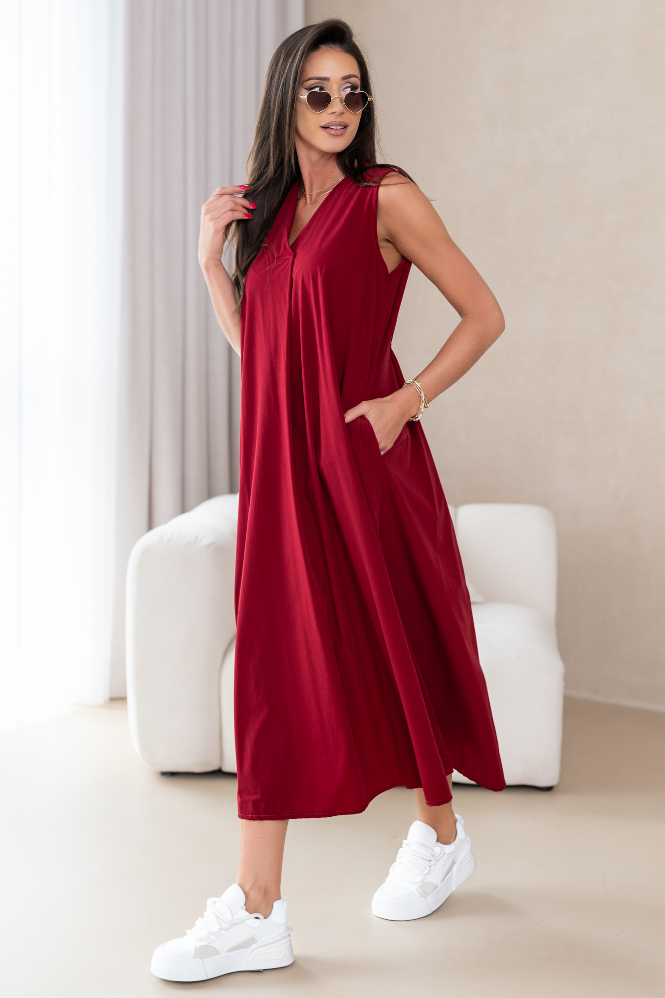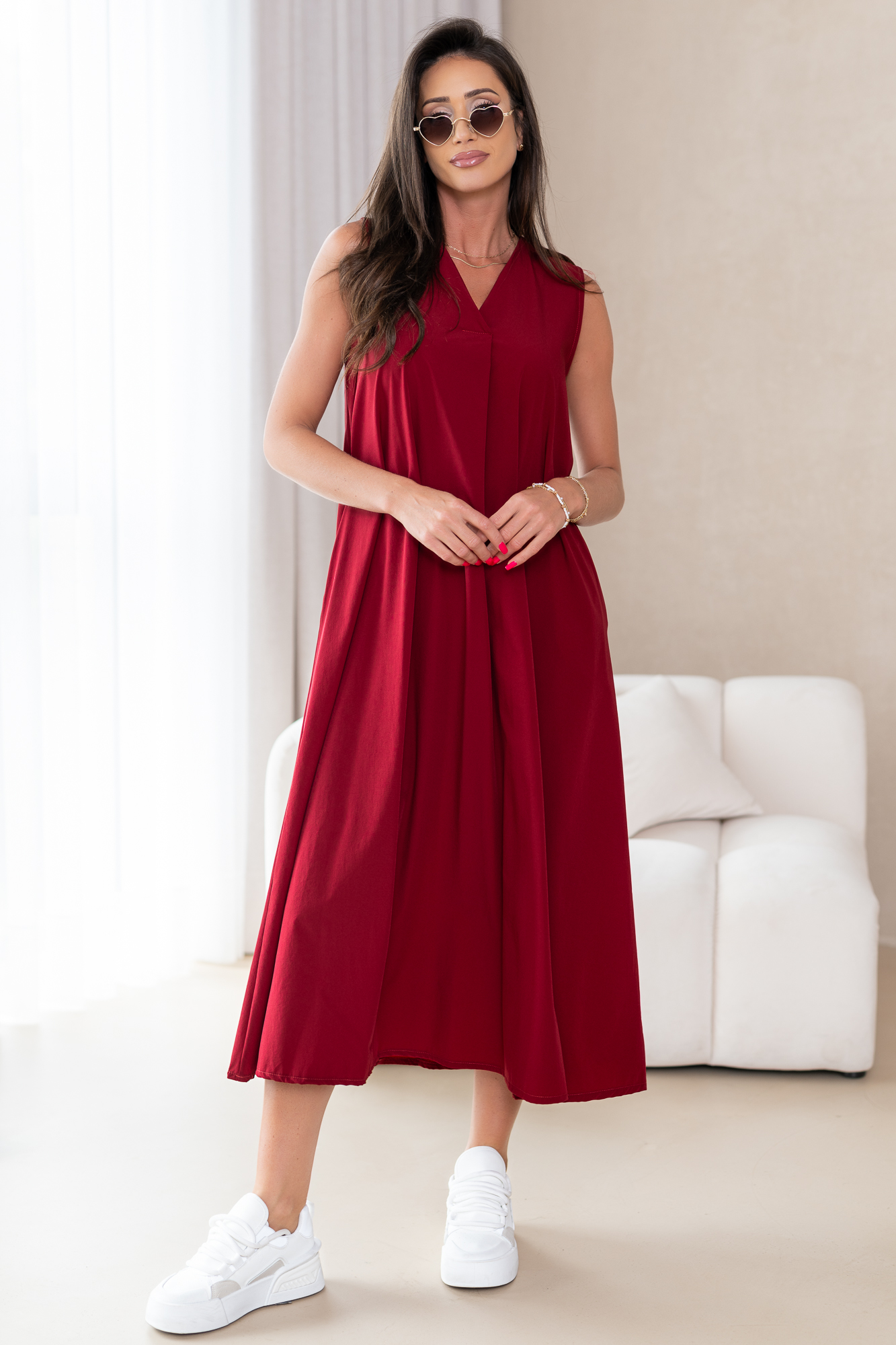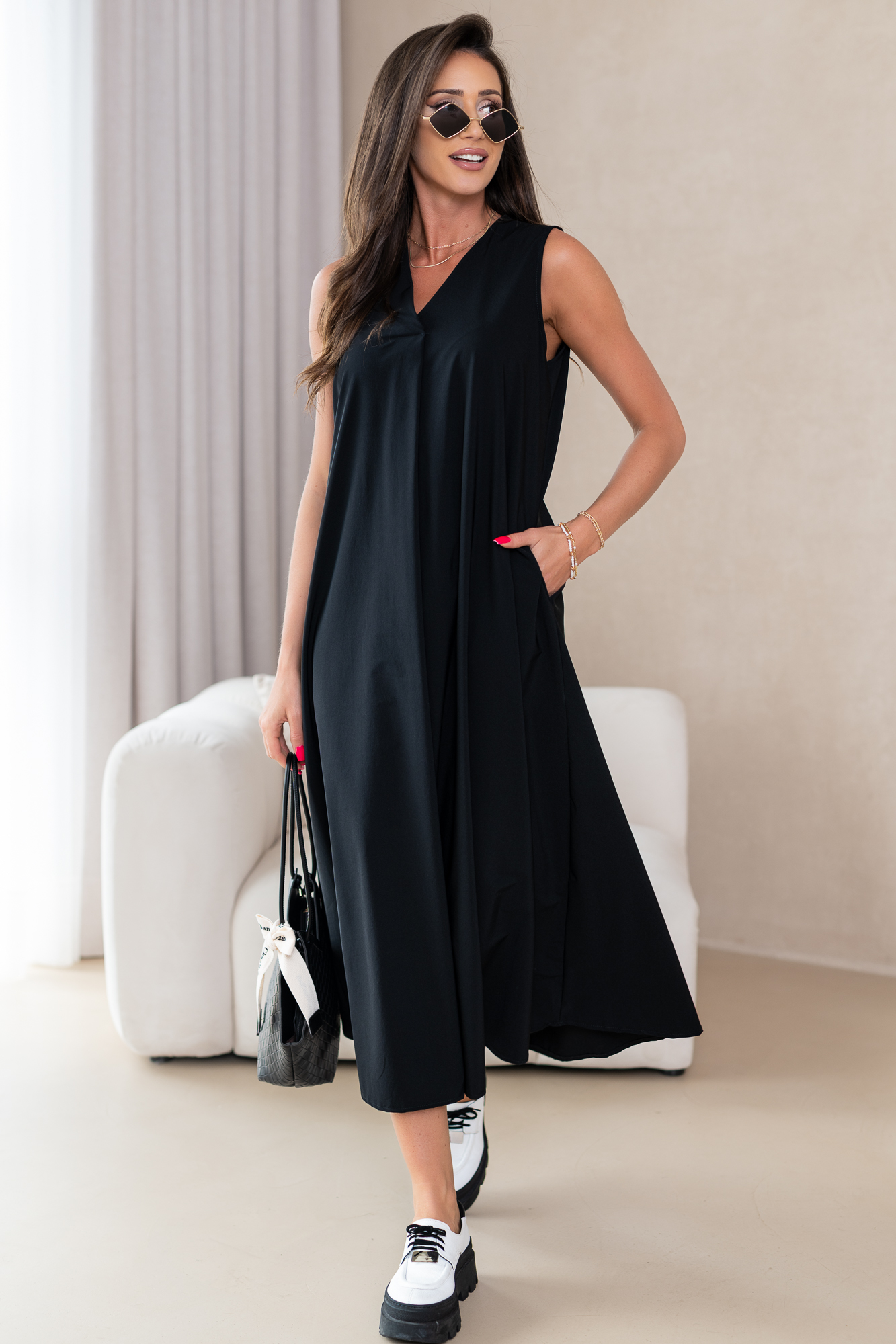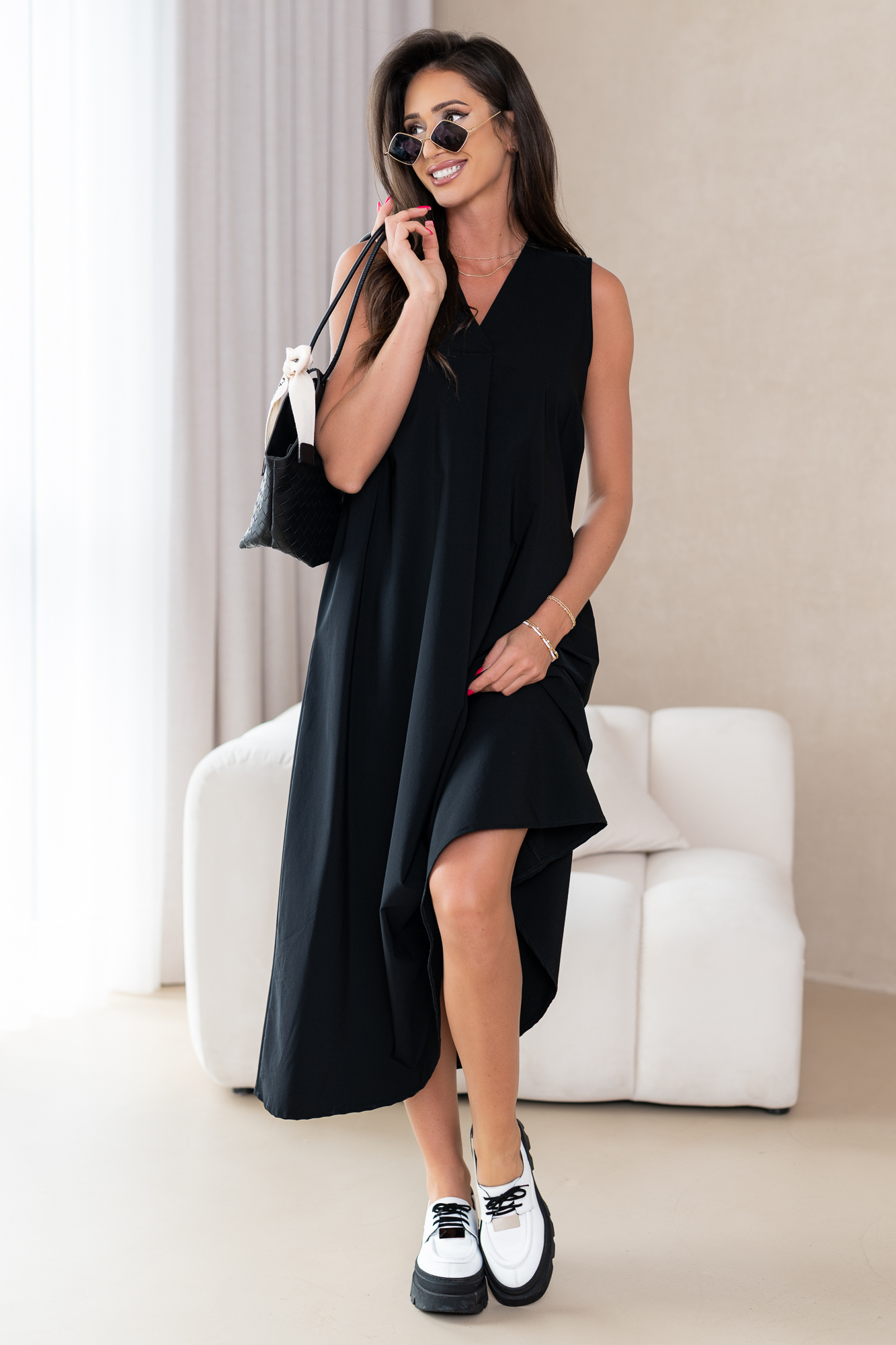 Klasyczna, casualowa sukienka typu basic wykonana z przyjemnej, niezwykle komfortowej i przewiewnej tkaniny.