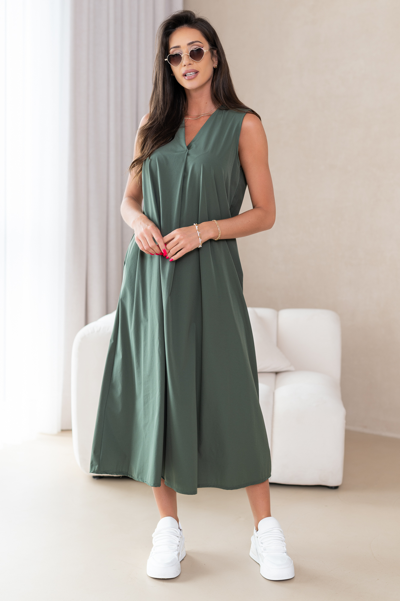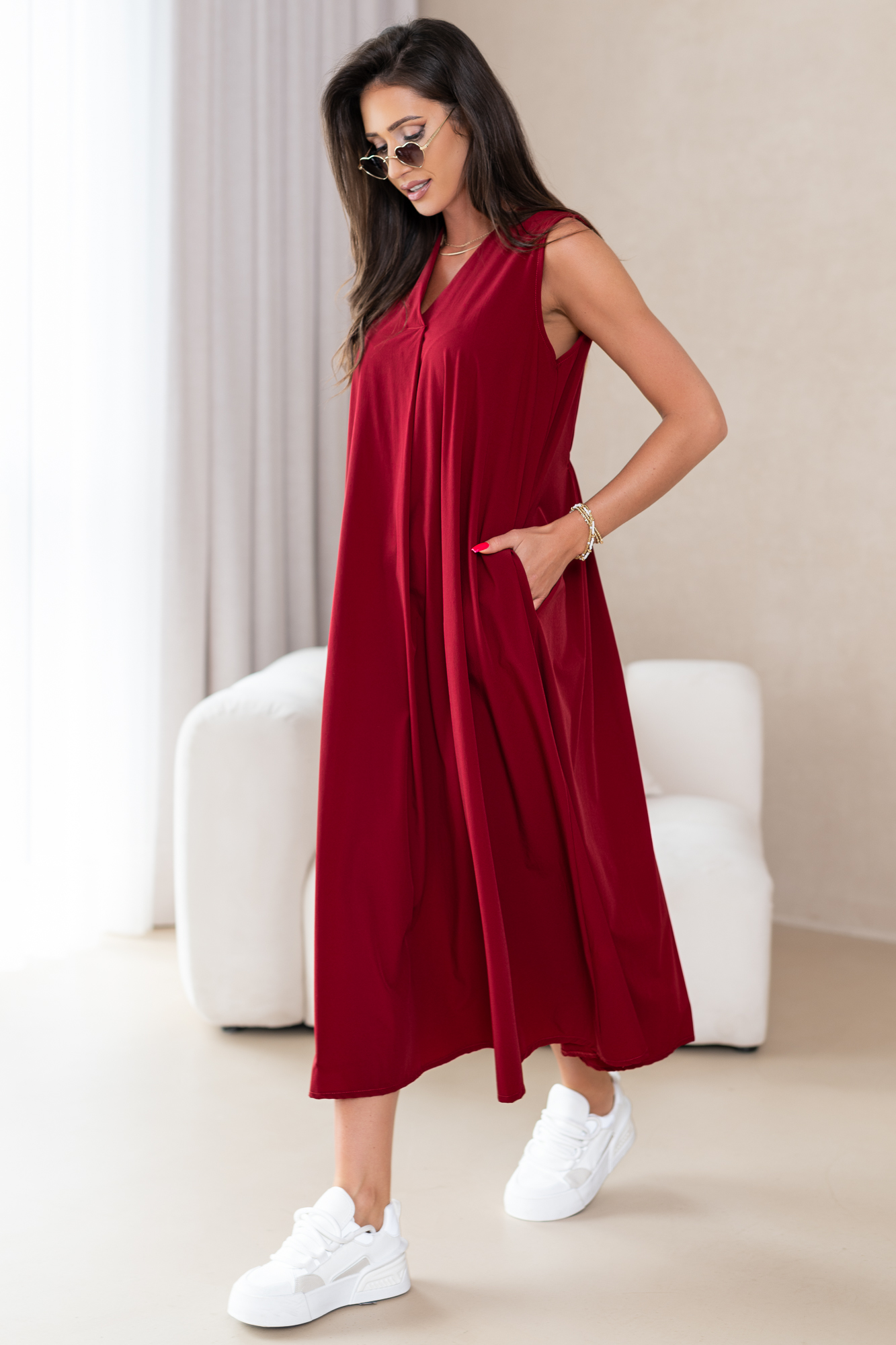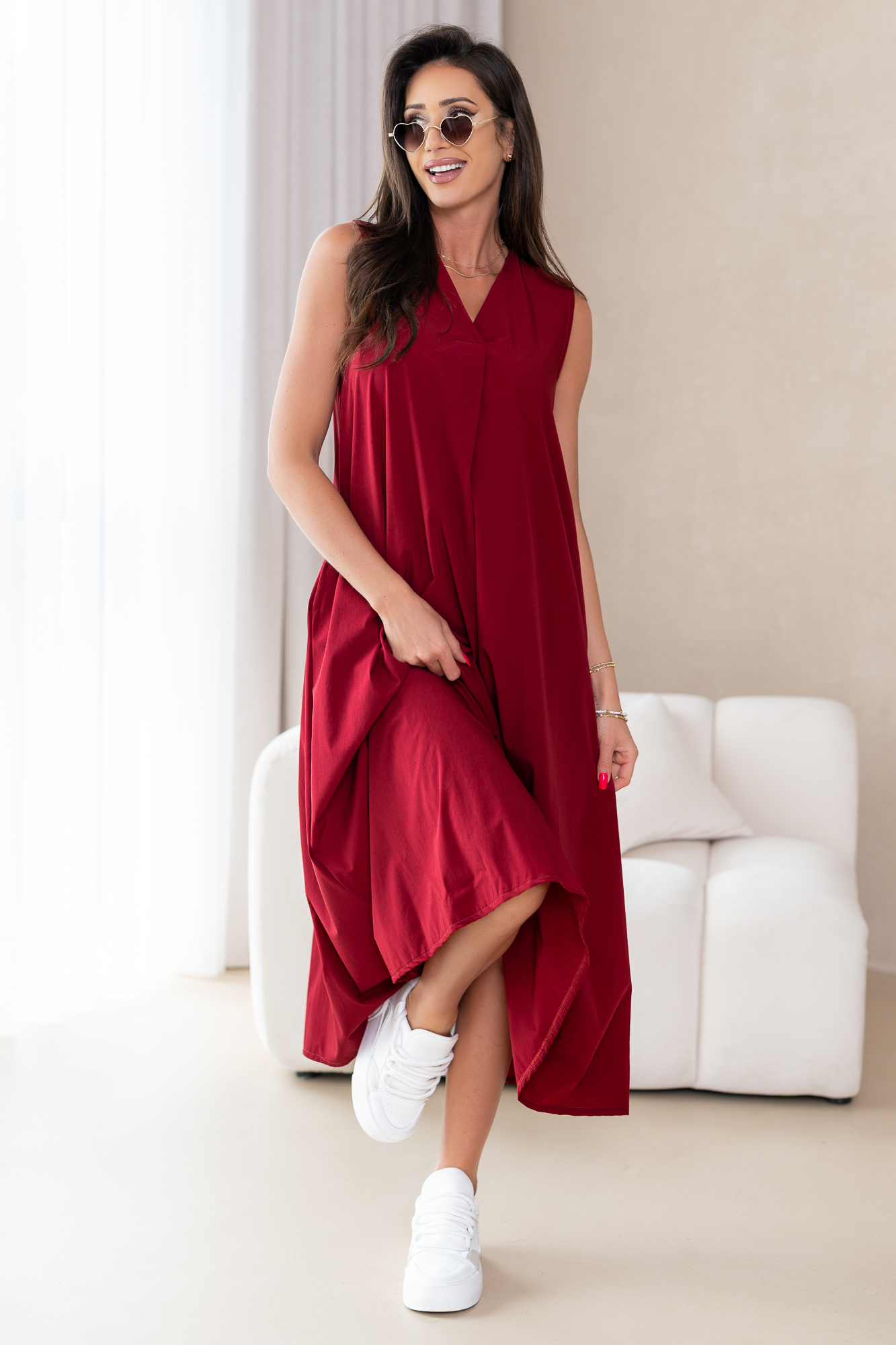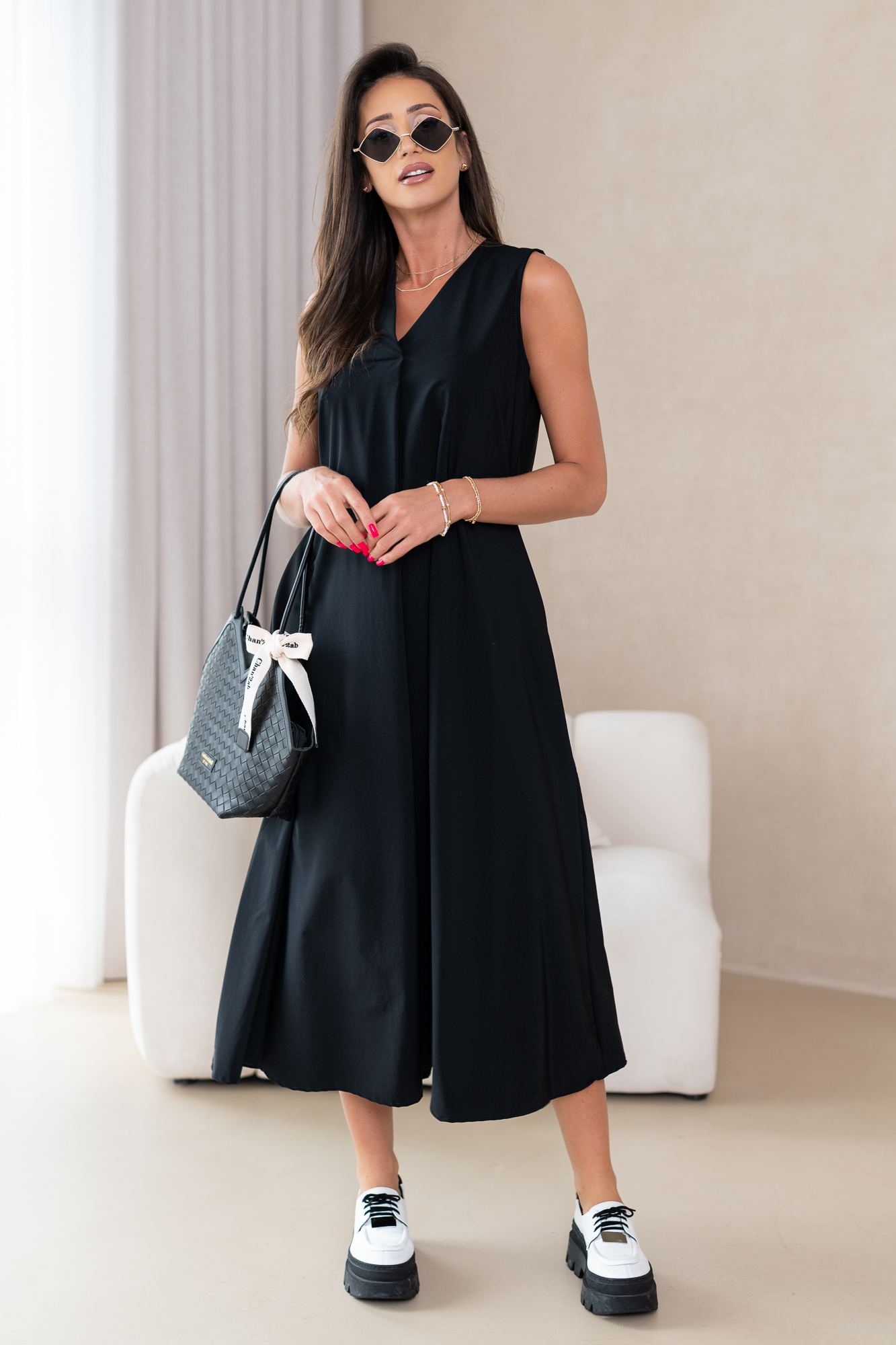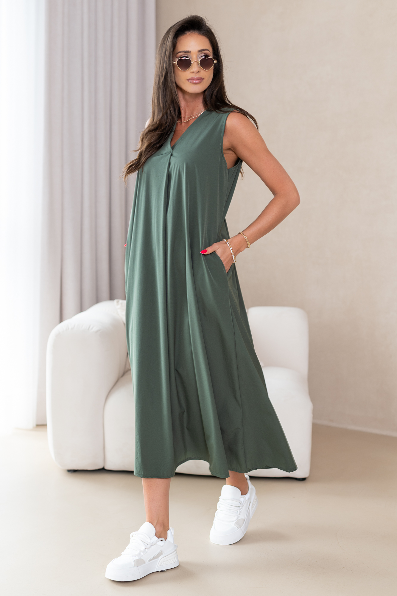 Klasyczna, casualowa sukienka typu basic wykonana z przyjemnej, niezwykle komfortowej i przewiewnej tkaniny.