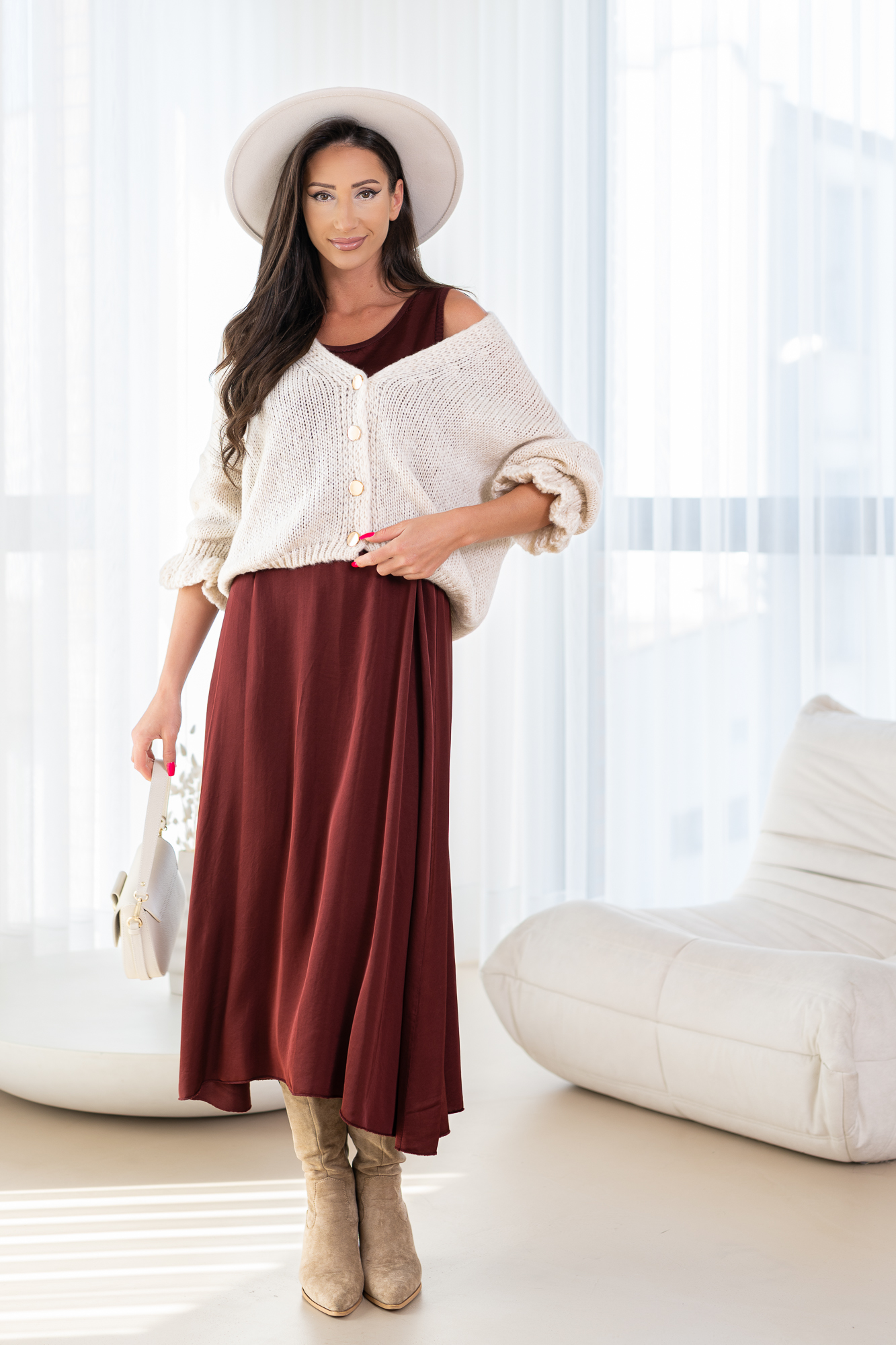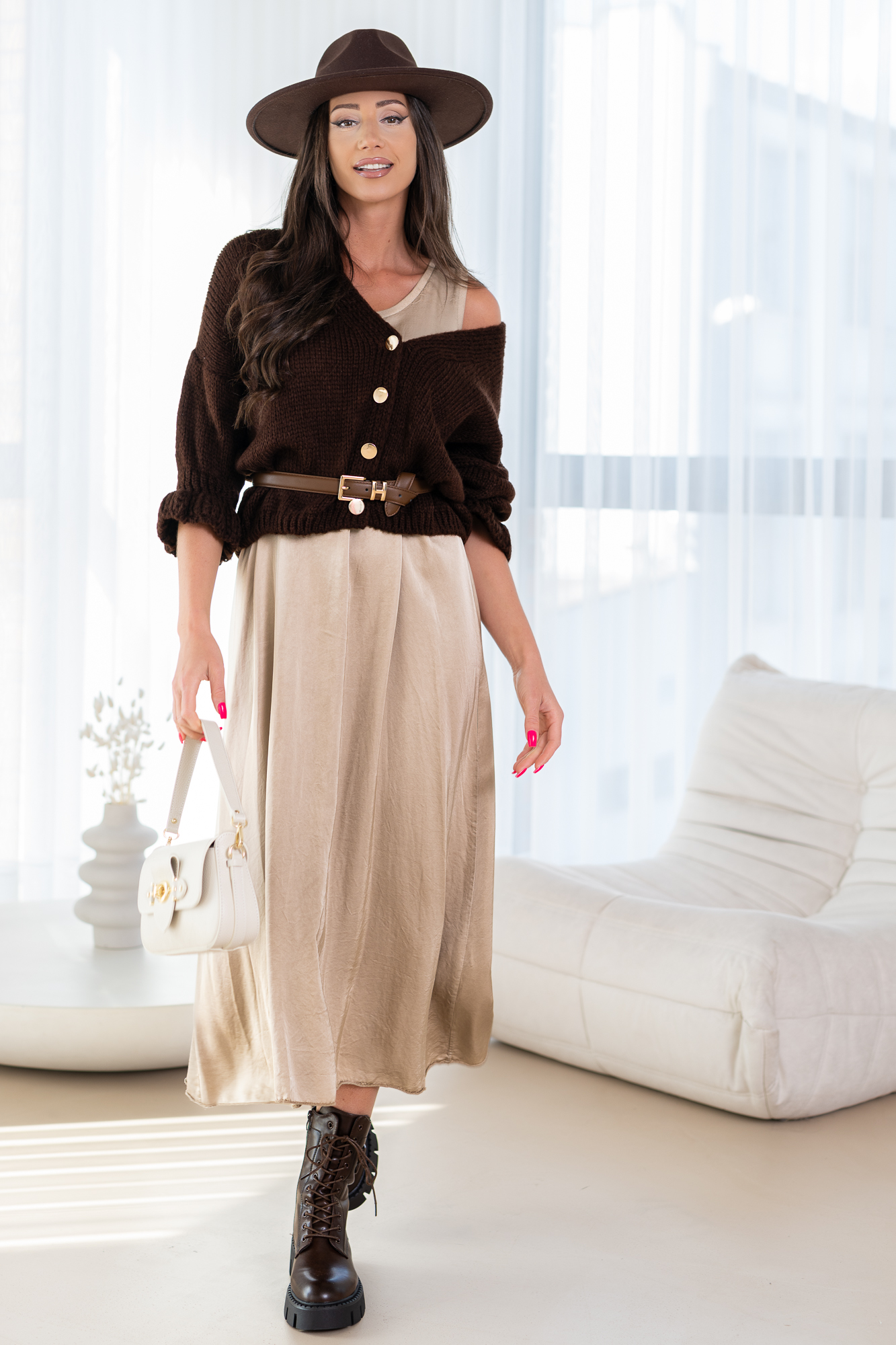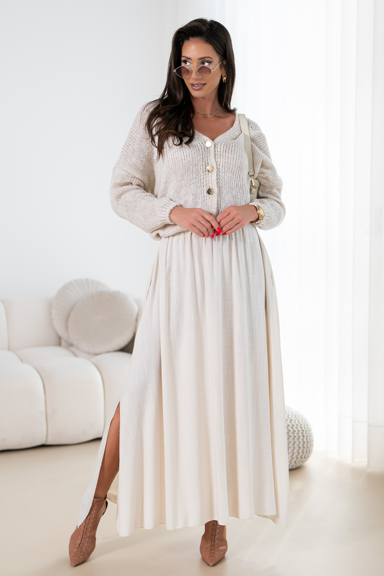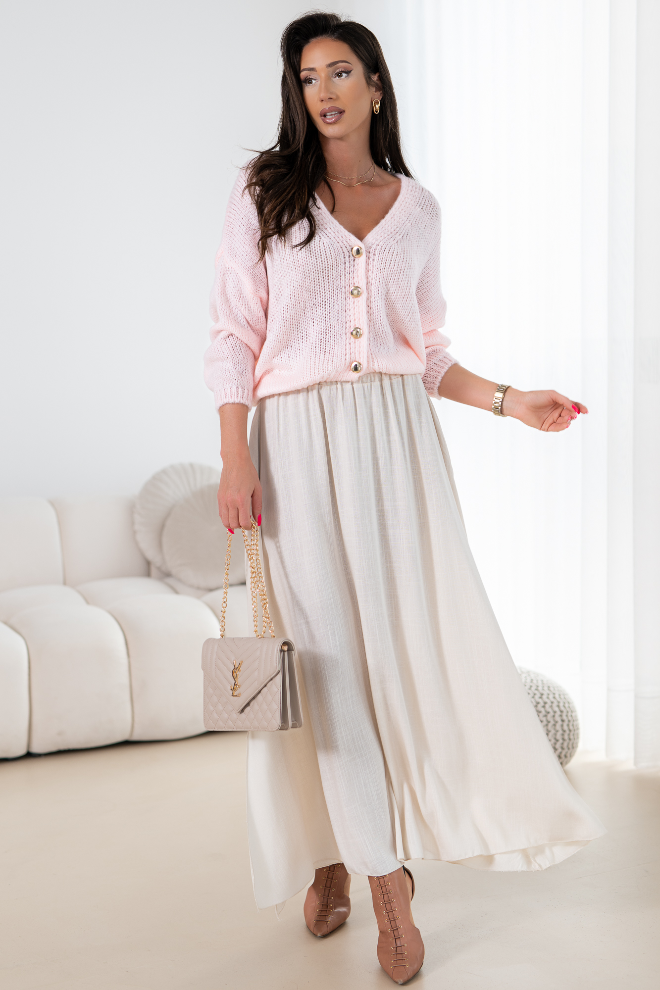 Sweter doskonale będzie prezentował się zarówno w eleganckich, jak i codziennych stylizacjach. Wygodny o luźnym fasonie – must have w szafie każdej kobiety. Krój OVERSIZE, który świetnie układa się na każdej sylwetce-) Sweter doskonale będzie prezentował się w pracy, na spacerze czy zestawiony ze spódnicą czy spodniami. Wygląda świetnie zarówno z jeansami jak i z tiulowymi spódnicami. Jego materiał jest miękki, dobrze dopasowuje się do sylwetki i nie krępuje ruchów Delikatne guziki dodają mu uroku i finezji.