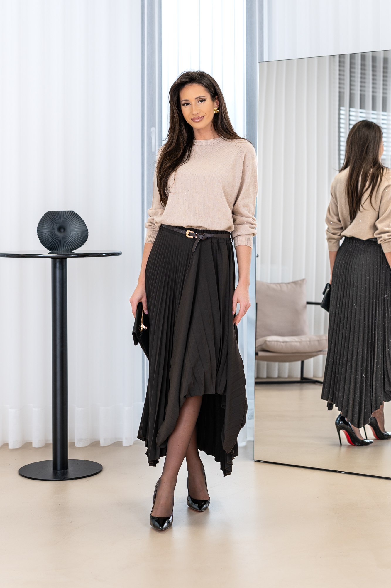 Uroczy sweter z delikatnym zdobieniem. Sweterek jest MEGA miły w dotyku oraz noszeniu. Wysoka jakości materiału i wykonania. Ten sweterek, to must have każdej kobiecej szafy! KRÓJ OVERSIZE – Modela na zdjęciu nosi rozmiar “S” i ma 178cm wzrostu. Sweterek idealnie pasuje na osoby ceniące sobie indywidualność i subtelny detal!